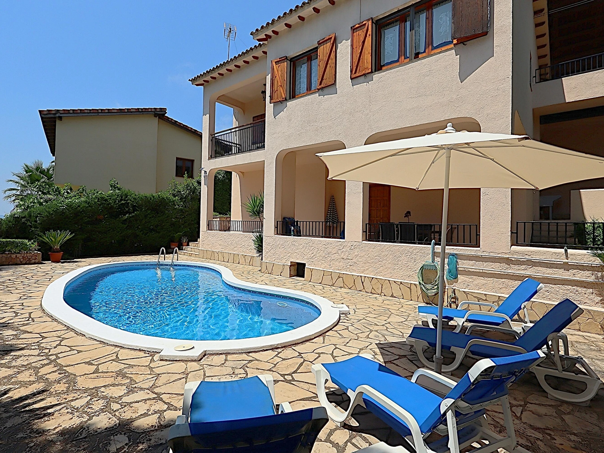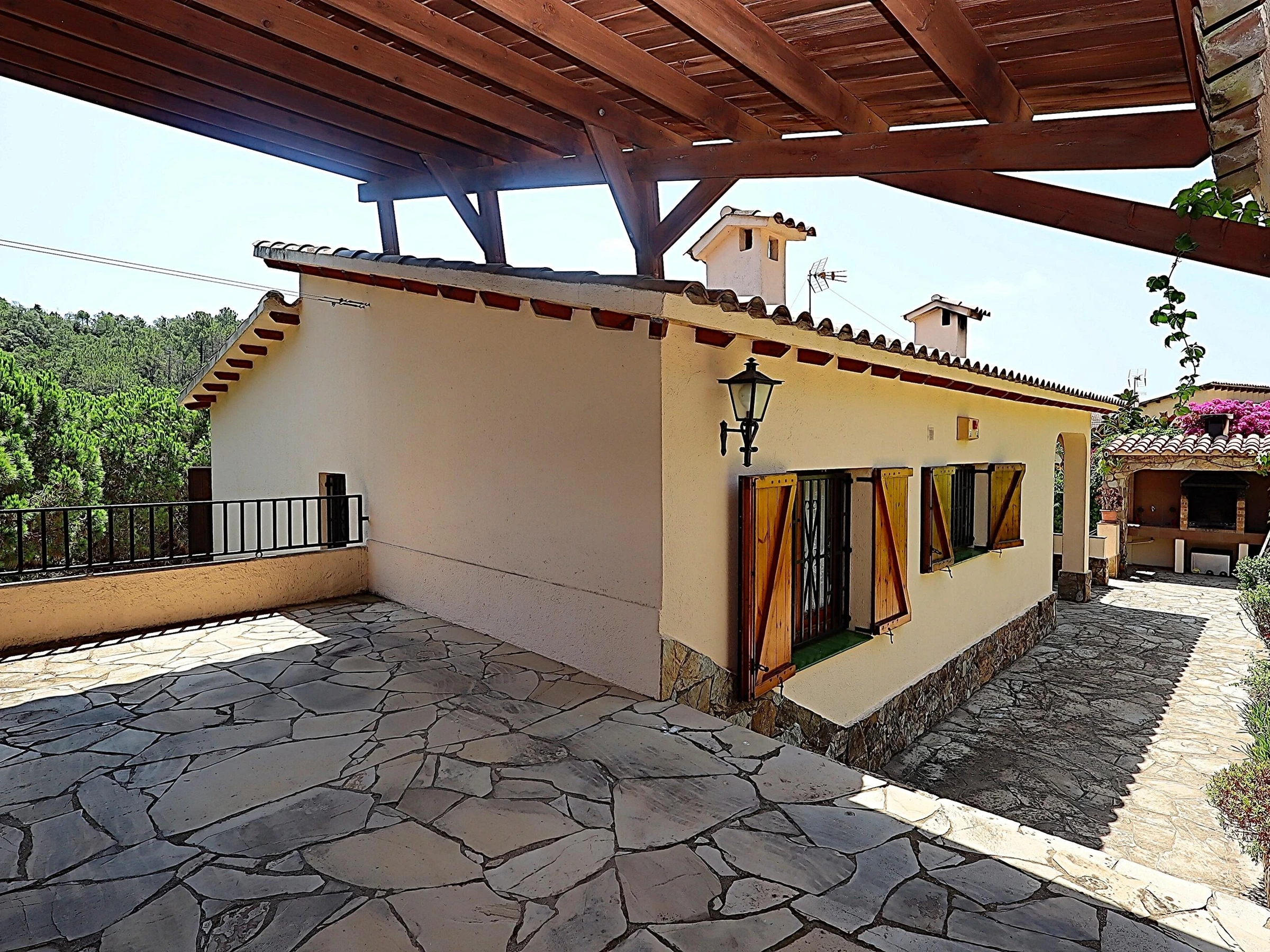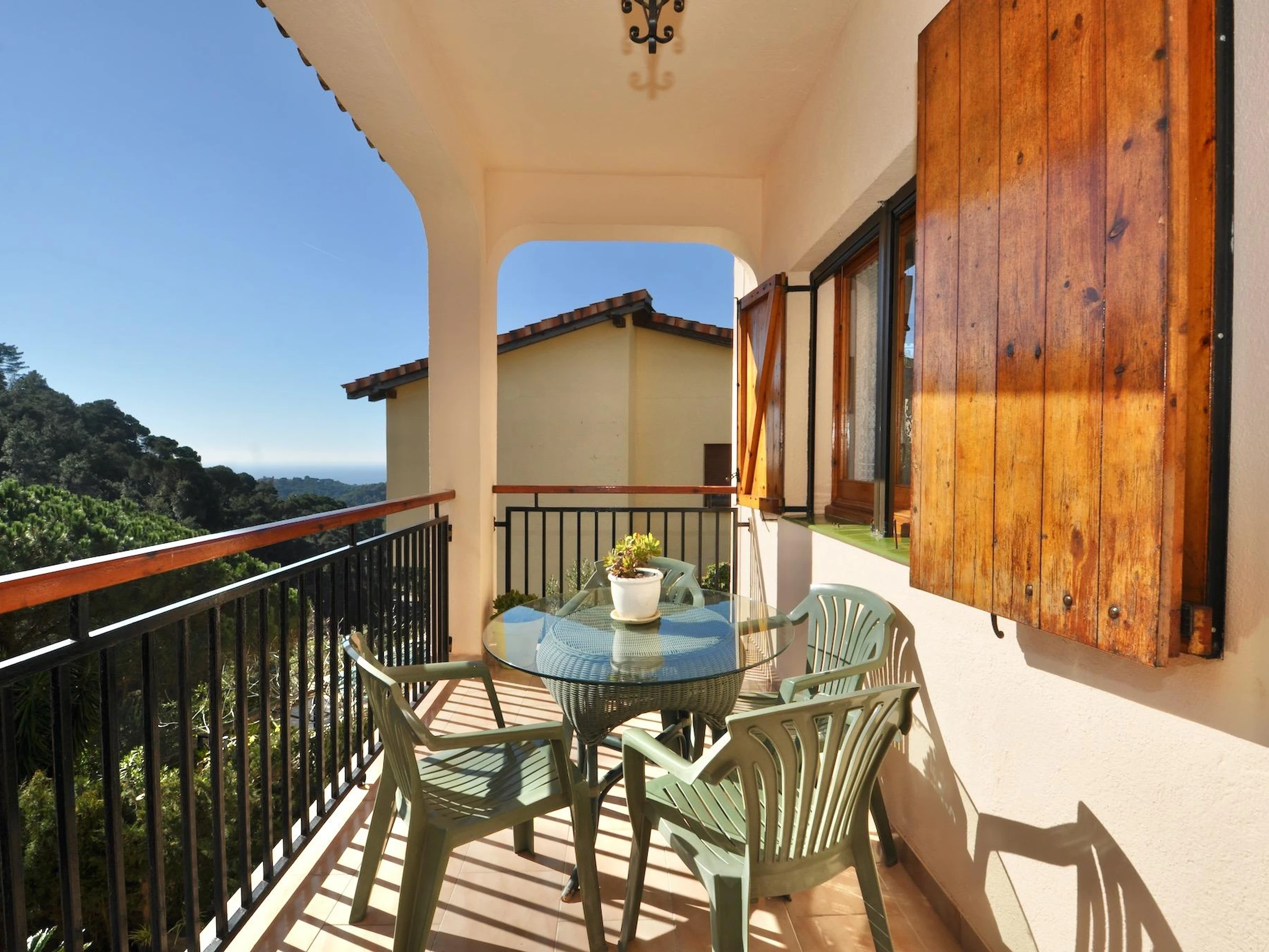 Die Villa Victoria ist ein wunderschönes Chalet mit privatem Pool und viel Privatsphäre im rustikalen Stil in der ruhigen Urbanisation der Riviera mit fantastischem Blick auf das Meer und die Berge. Die Villa Victoria besteht aus 2 Etagen mit einer Außentreppe. Die erste Etage der Villa Victoria besteht aus 3 Schlafzimmern, 1 Badezimmer, Wohnzimmer und Esszimmer und einer voll ausgestatteten unabhängigen Küche. Das Wohnzimmer hat Zugang zu einer Terrasse. Die untere Etage der Villa Victoria besteht aus einem Badezimmer mit Dusche, einem Wohnzimmer mit Ruhebereich mit direktem Zugang zur Terrasse, Garten, Grill und Pool. Das Erdgeschoss verfügt über eine amerikanische Küche, die mit Geräten ausgestattet ist, sodass Sie mit Familie und Freunden direkt vor dem Pool genießen können. Das Haus hat eine sehr gute Privatsphäre und eine unglaubliche Aussicht. Sie sind auch nur wenige Autominuten vom lebhaften Lloret de Mar entfernt, das Jung und Alt alles zu bieten hat, oder Sie fahren ins beschauliche Tossa de Mar mit seiner alten Burg. Entfernung zum Meer: 2,7 km Entfernung zu Restaurants: 4 km Flughafen Girona - 30 km (Ziel Ryan Air) Flughafen Barcelona - 90 km (1 Stunde und 10 Minuten auf der Autobahn) Bahnhof Blanes - 8 km.