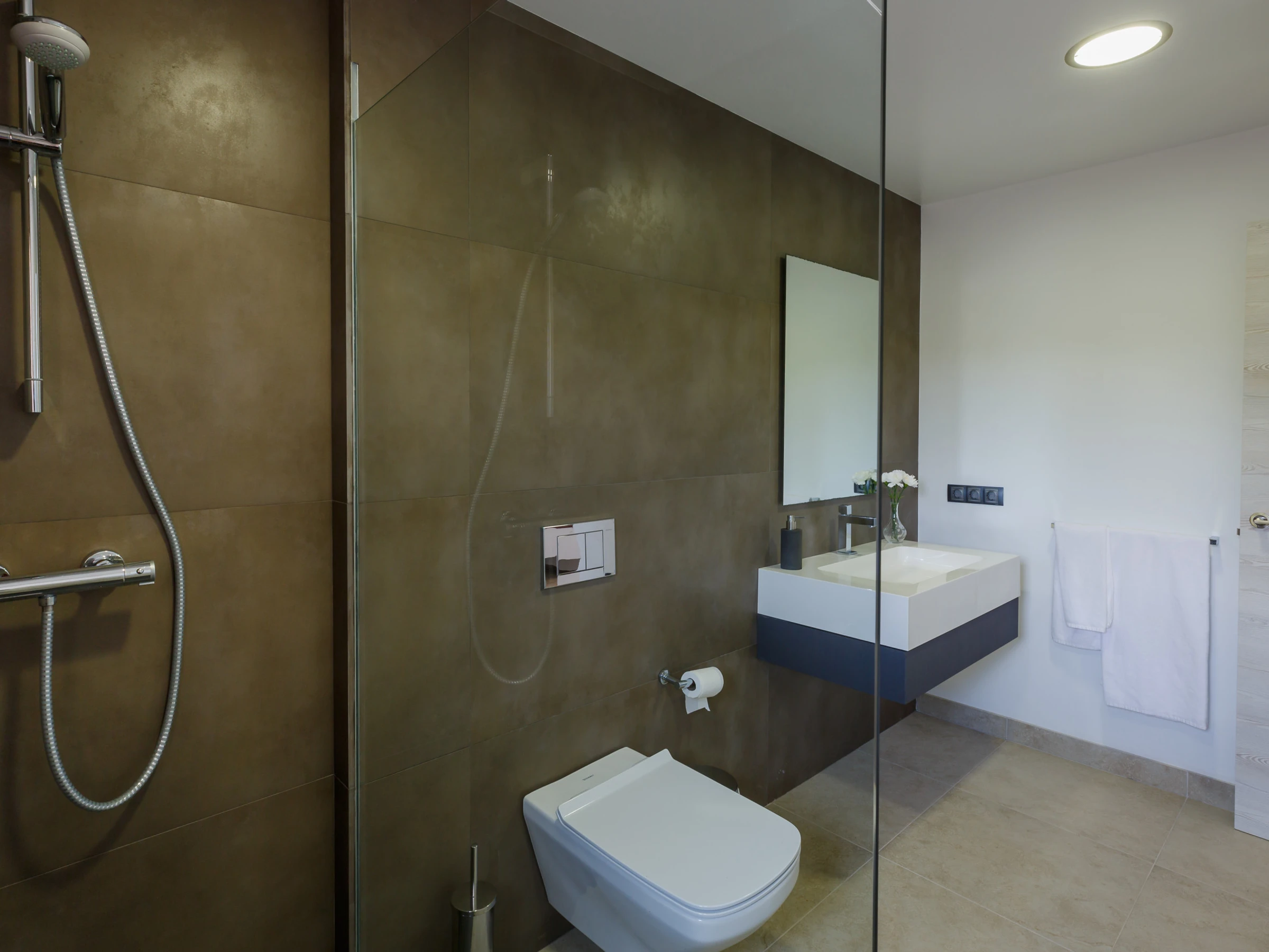 Im Erdgeschoss gibt es einen großen Eingang, ein elegantes Wohnzimmer mit integriertem Esszimmer und eine Designerküche mit Kücheninsel und einer weiteren Essecke. Die Grundausstattung umfasst Satelliten-TV, kostenloses WLAN und Fußbodenheizung. Der Schlafbereich ist in 4 individuell gestaltete, geräumige Zimmer unterteilt. Das Hauptschlafzimmer mit Doppelbett verfügt über ein eigenes Badezimmer mit Whirlpool-Badewanne und Dusche, einer Toilettentafel und Ankleidezimmer. Die anderen 3 Doppelzimmer, 1 mit Ehebett und 2 mit 2 Einzelbetten. Alle mit herrlichen Ausblicken auf die Naturlandschaft. Es gibt auch 2 weitere große Badezimmer, 1 mit Dusche und ein anderes mit Badewanne und Dusche. Hinter der Treppe im oberen Bereich befindet sich eine gemütliche Ecke mit Sofa und Sitzsack. Hier ist es wunderbar, sich zu entspannen oder ein Buch zu lesen.