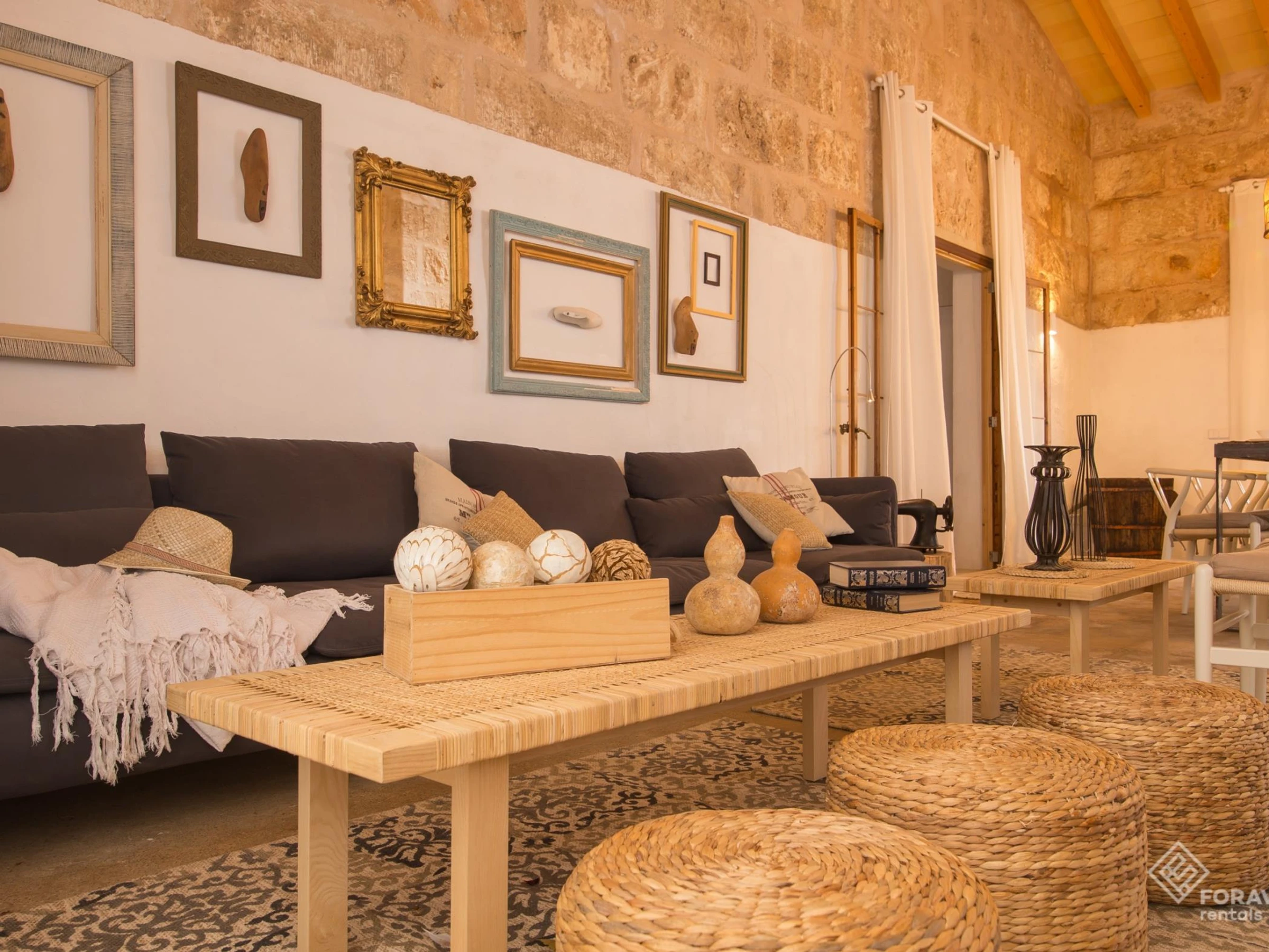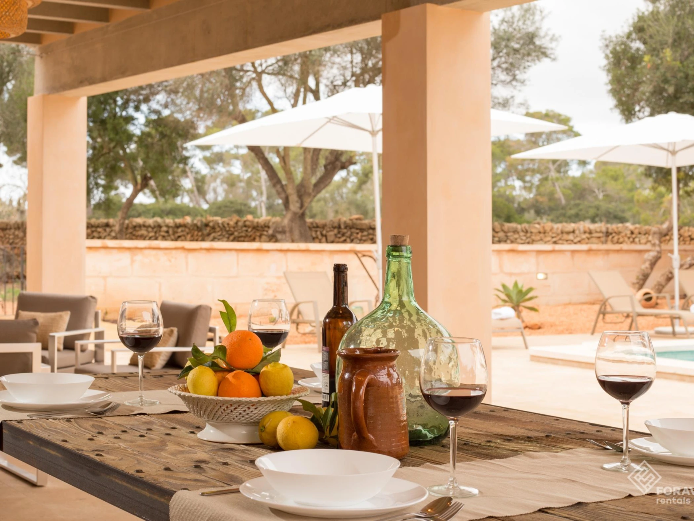 Die nächste Stadt ist Llucmajor, wo Sie Supermärkte, Restaurants und verschiedene Geschäfte finden. Darüber hinaus findet jeden Mittwoch, Freitag und Sonntag der Wochenmarkt im Zentrum statt, eine gute Gelegenheit, frisches Obst und Gemüse oder Kunsthandwerk zu kaufen. Es ist außerdem nur 20 Autominuten vom spektakulären unberührten Strand von Es Trenc entfernt, ein Muss für Naturliebhaber. Es liegt auch in der Nähe der Strände von Ses Covetes, Sa Ràpita oder Cala Pi. Zum anderen ist es weniger als eine halbe Stunde von Palma, der Hauptstadt von Mallorca, entfernt.