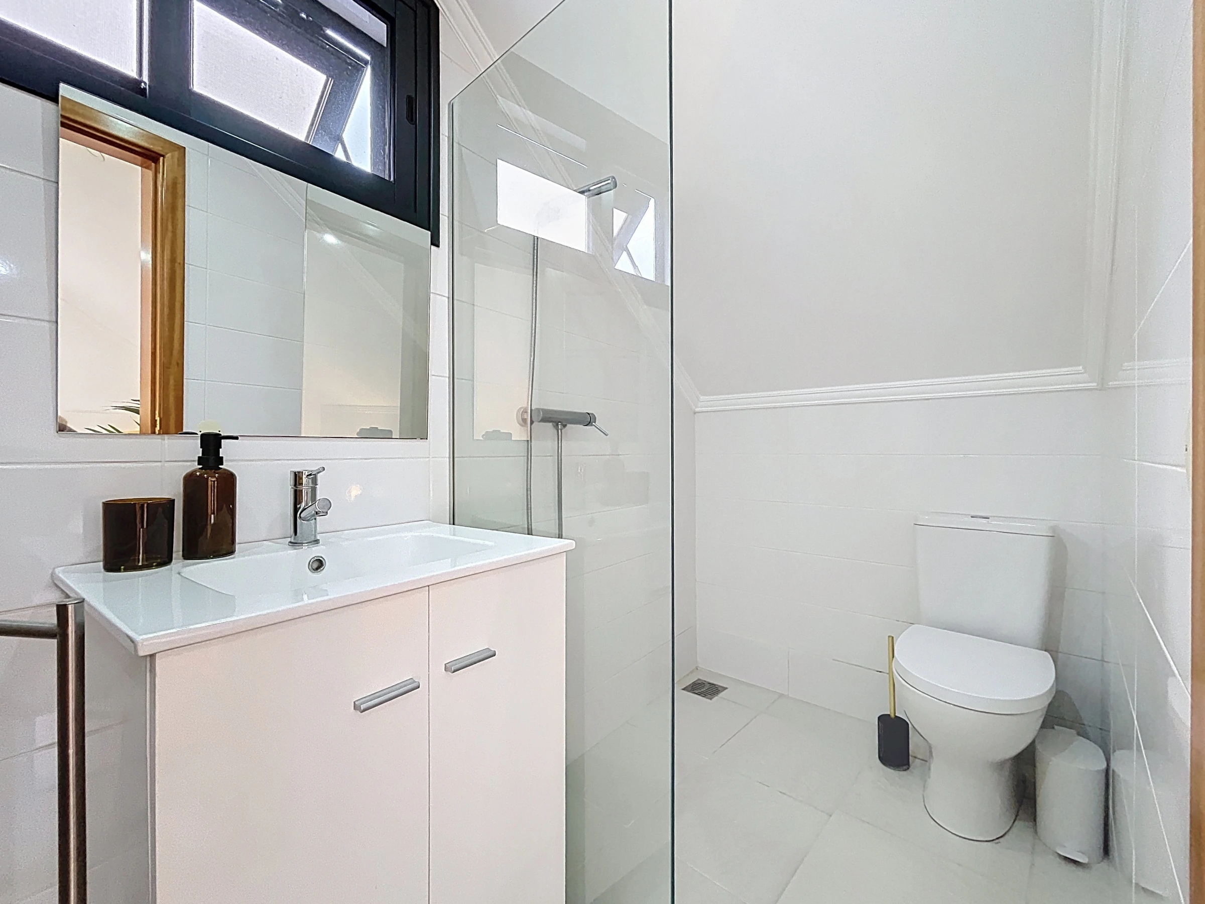 Es gibt zwei Badezimmer, beide mit Duschen ausgestattet, eines in jedem Gebäude. Ein Haartrockner und eine Waschmaschine stehen den Gästen zur Verfügung. Bettwäsche und Handtücher werden für alle Aufenthalte bereitgestellt.
