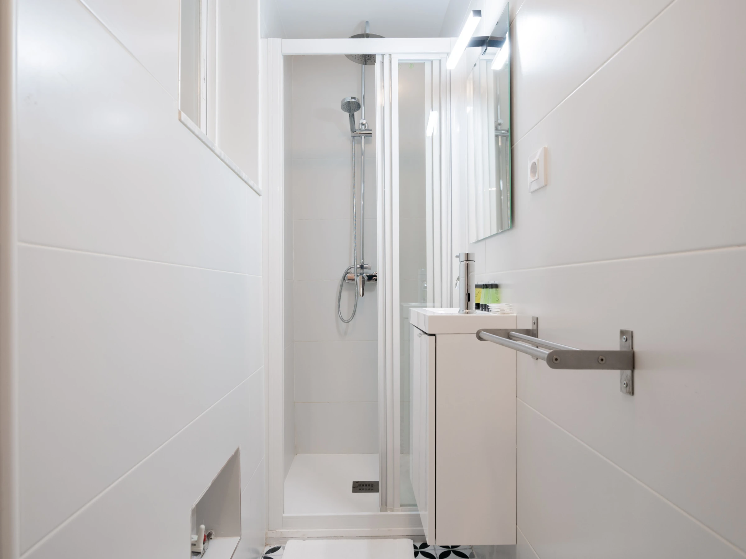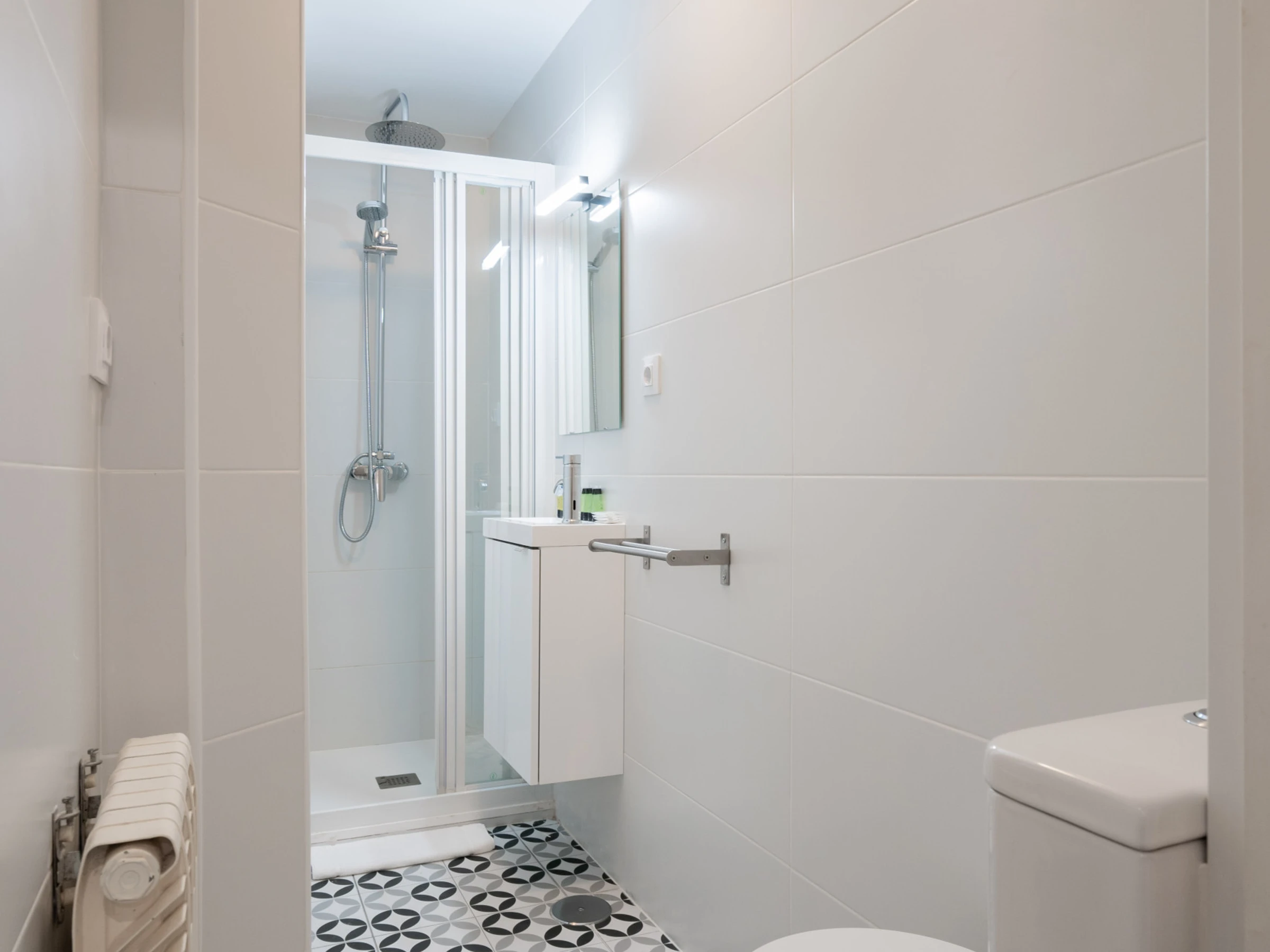 Komplettes Badezimmer: Modern und sauber, ausgestattet mit allen notwendigen Annehmlichkeiten.