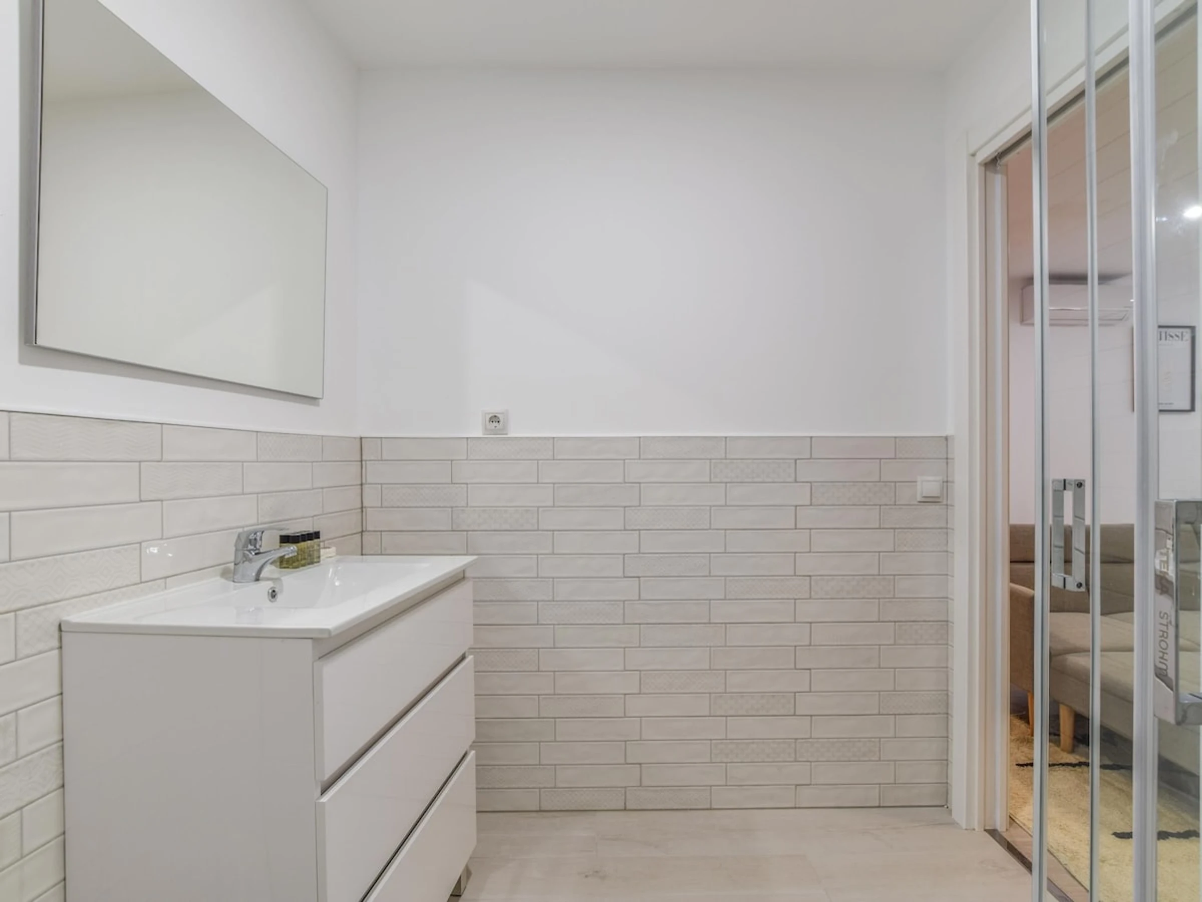 Komplettes Badezimmer: Modern und sauber, ausgestattet mit allen notwendigen Annehmlichkeiten.