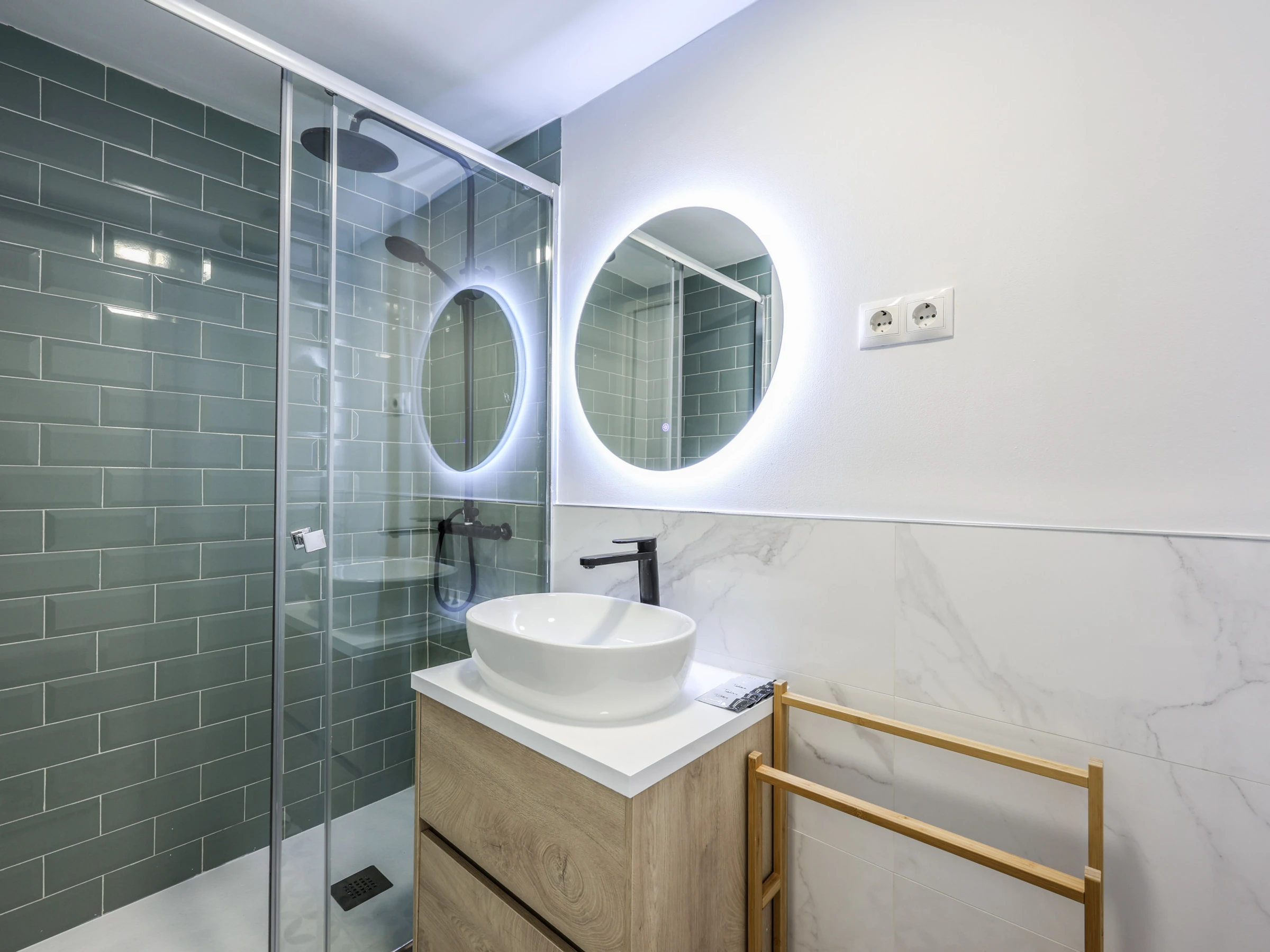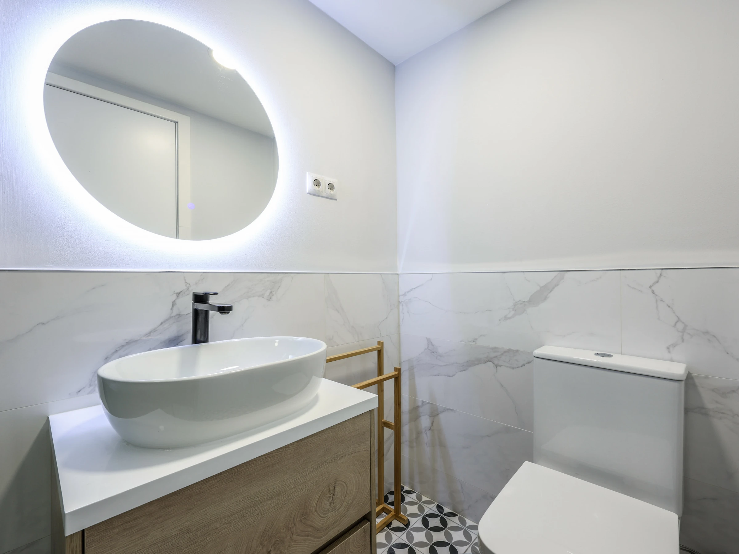 Komplettes Badezimmer: Modern und sauber, ausgestattet mit allen notwendigen Annehmlichkeiten.