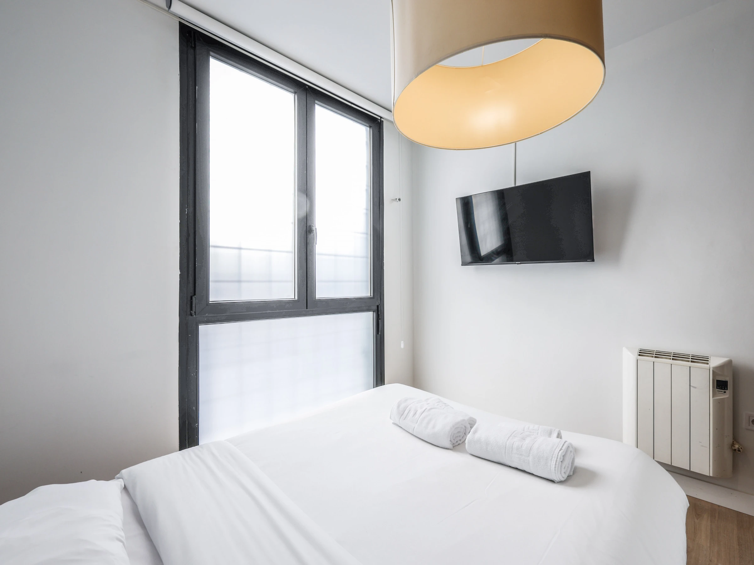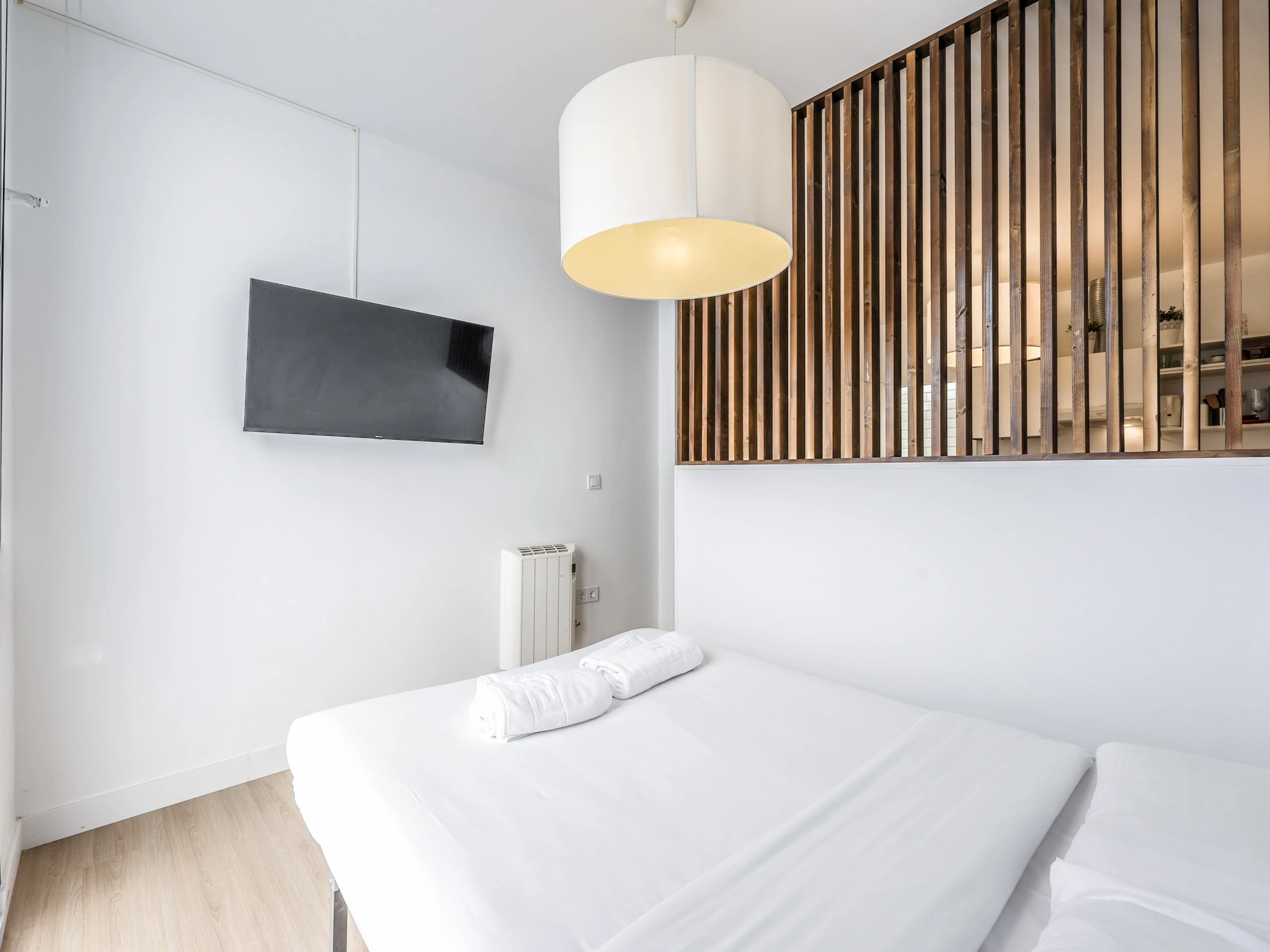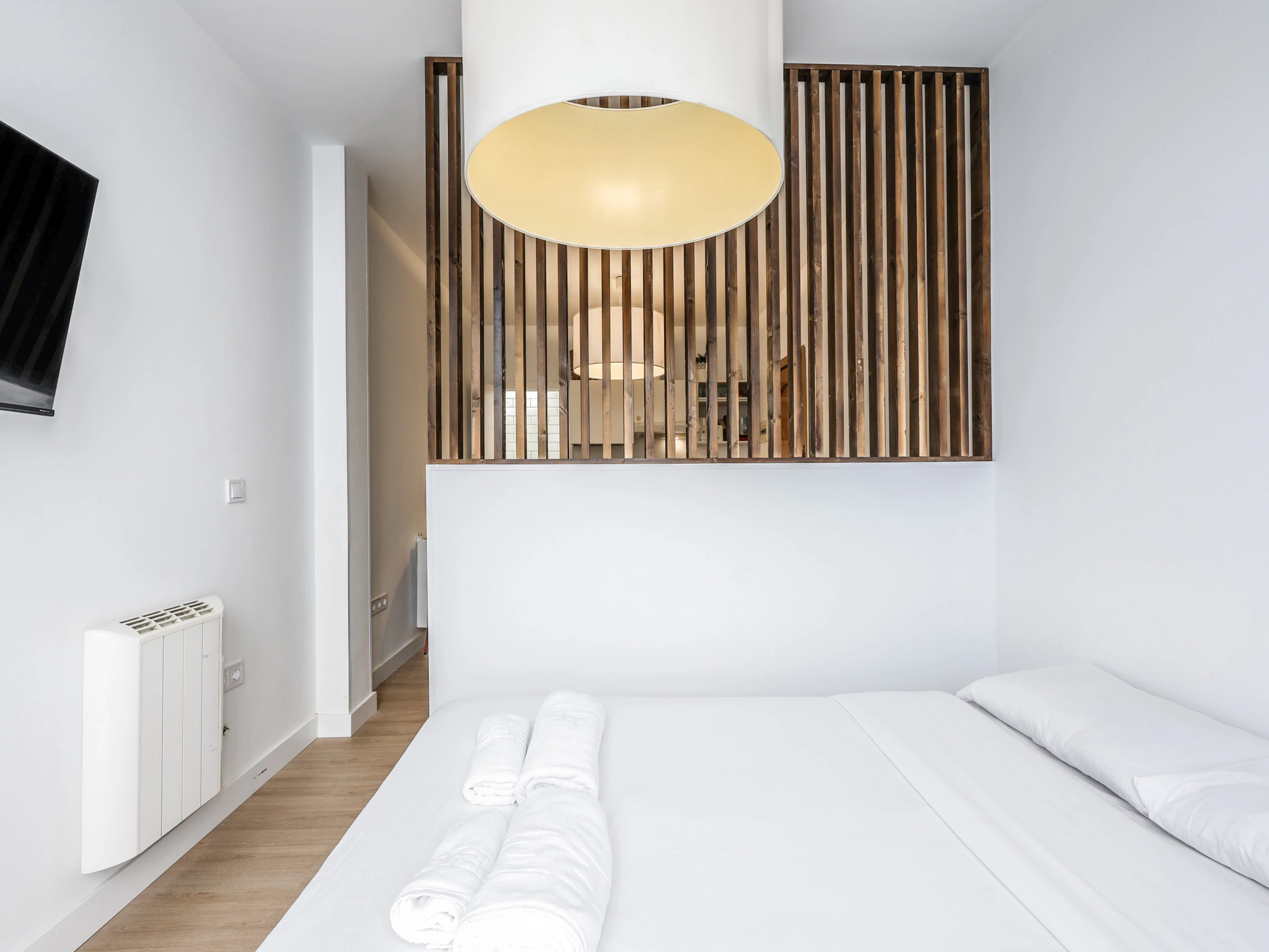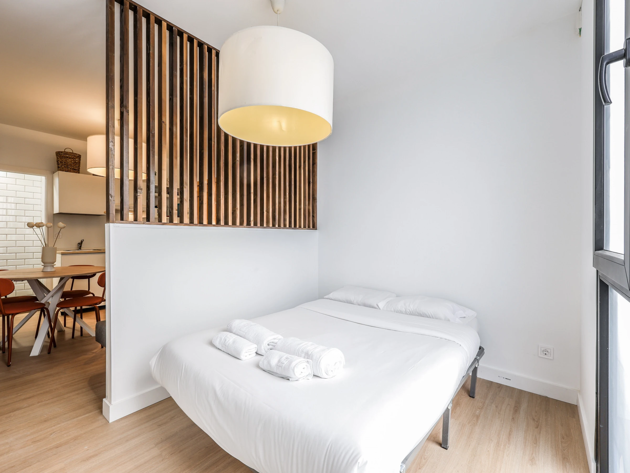Lichtdurchfluteter und gemütlicher Raum: Die Wohnung verfügt über eine offene Grundrissgestaltung, die ein bequemes Doppelbett und viel Stauraum umfasst und somit eine erholsame Nachtruhe gewährleistet.