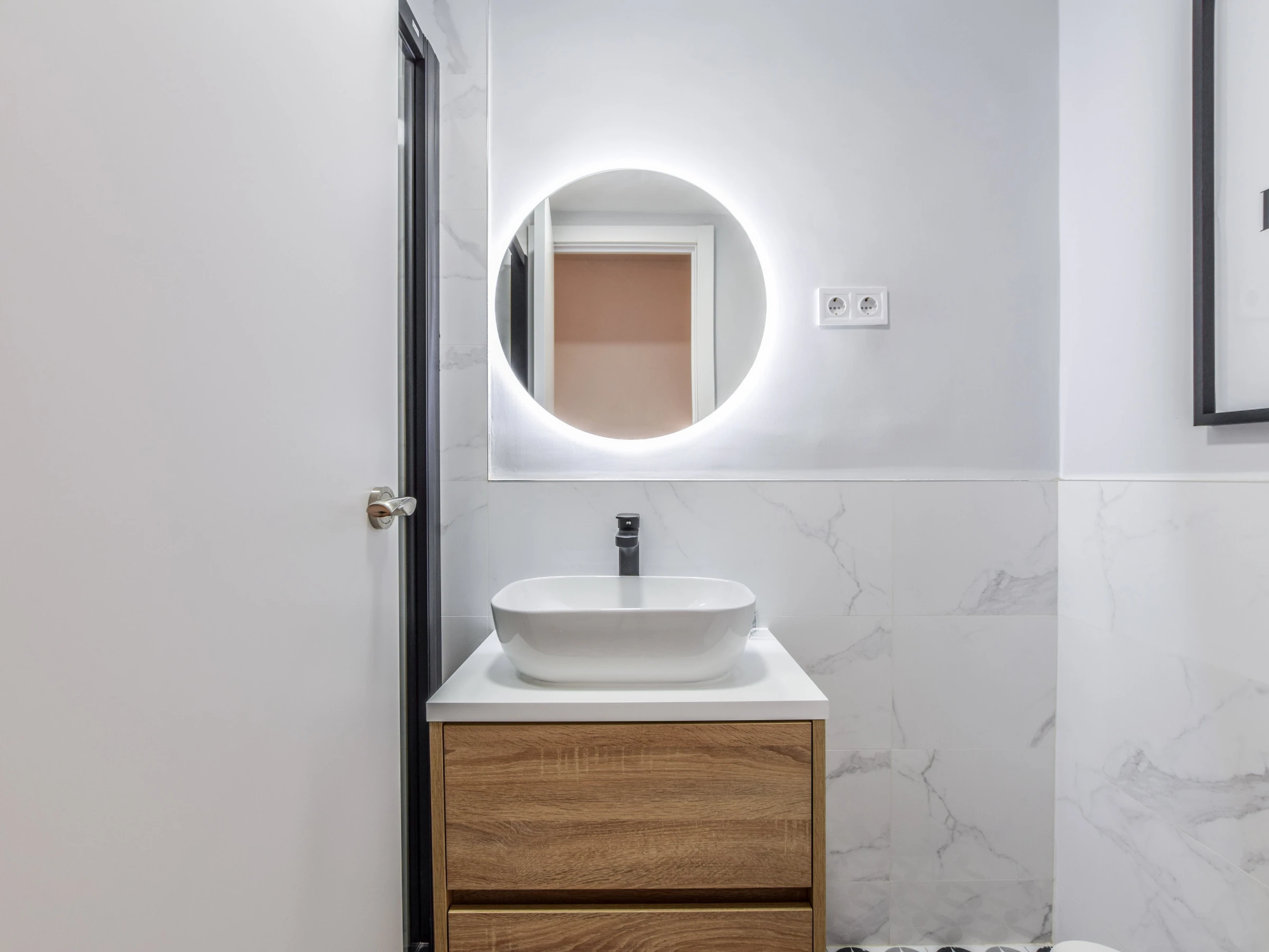 Komplettes Badezimmer: Modern und sauber, ausgestattet mit allen notwendigen Annehmlichkeiten.
