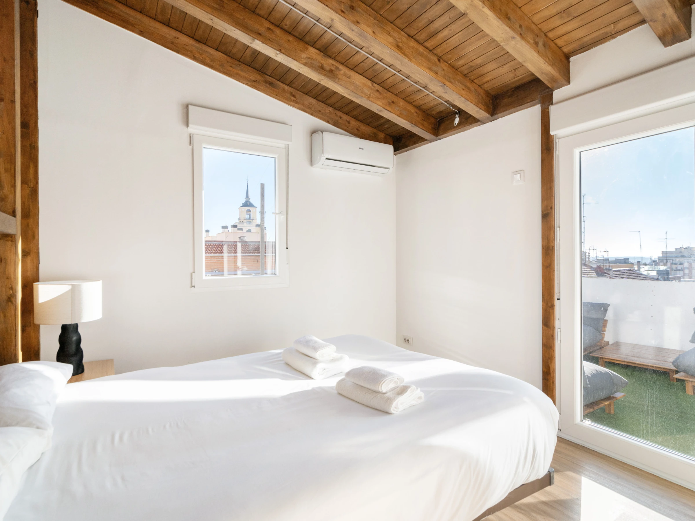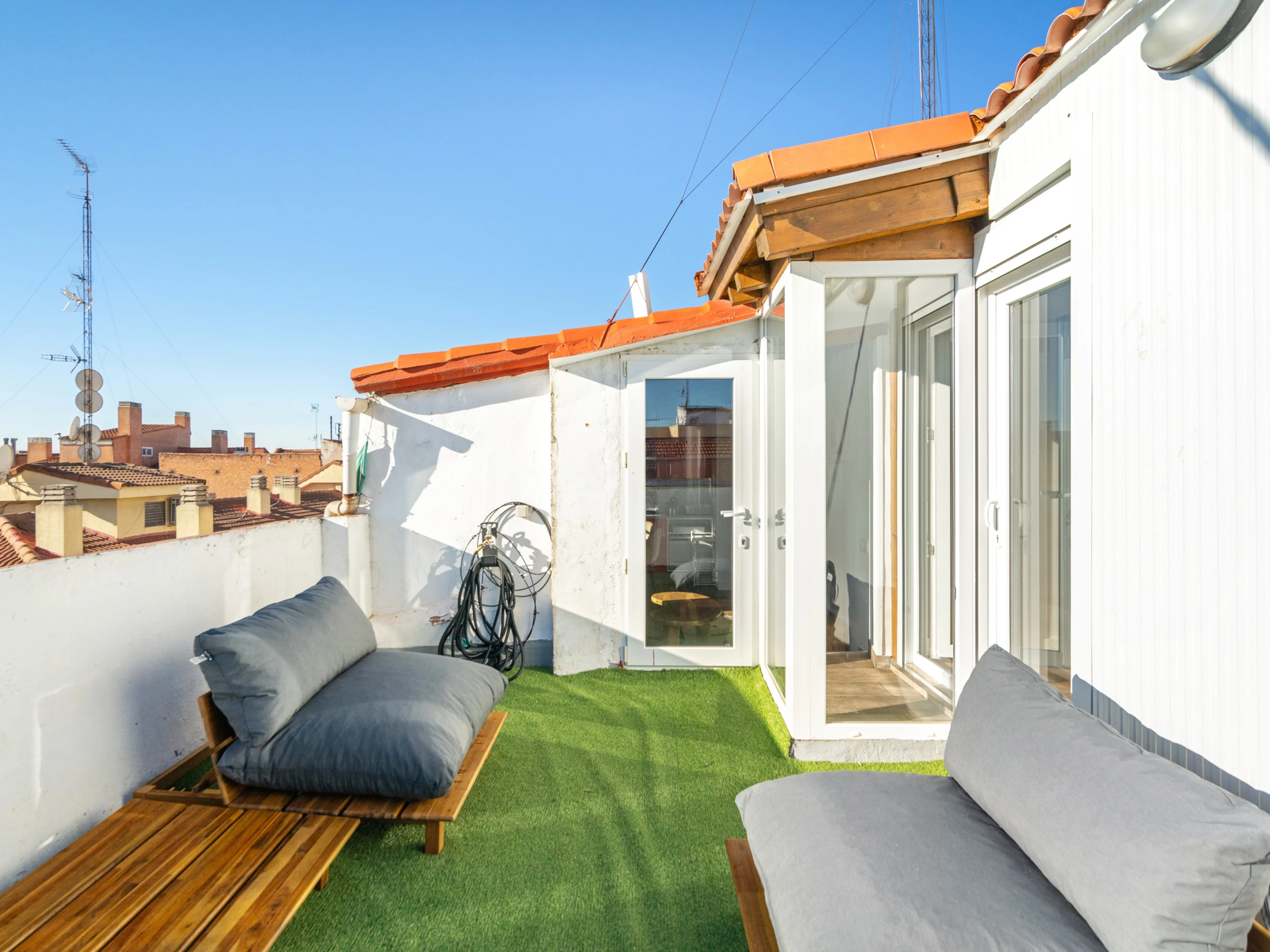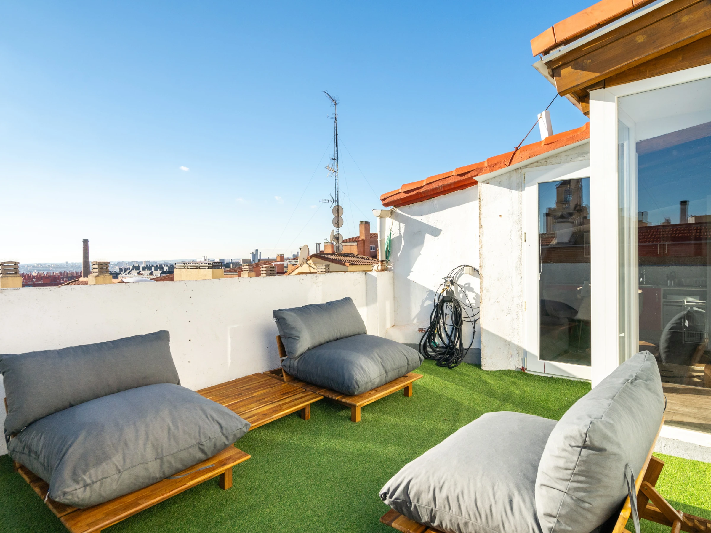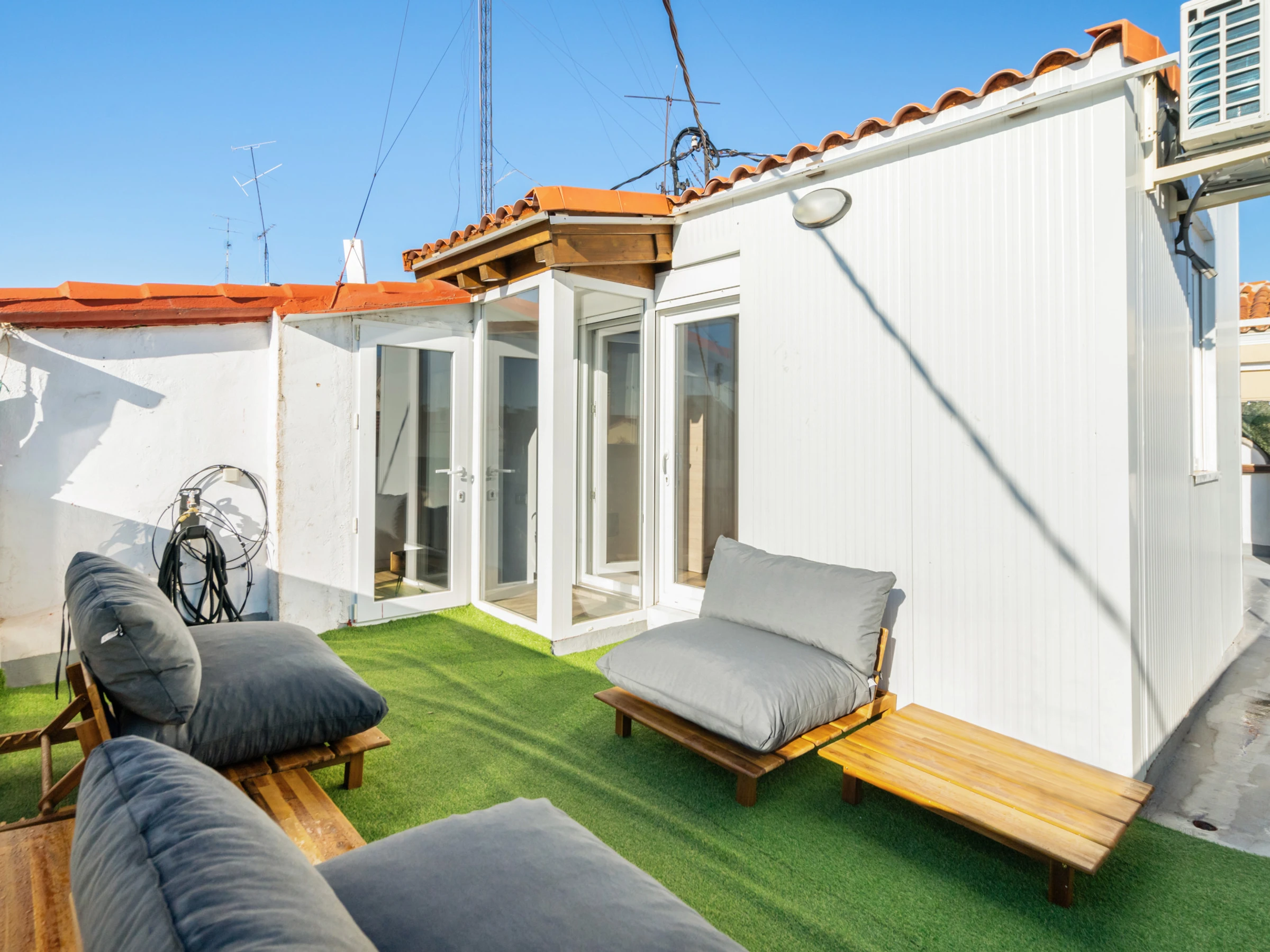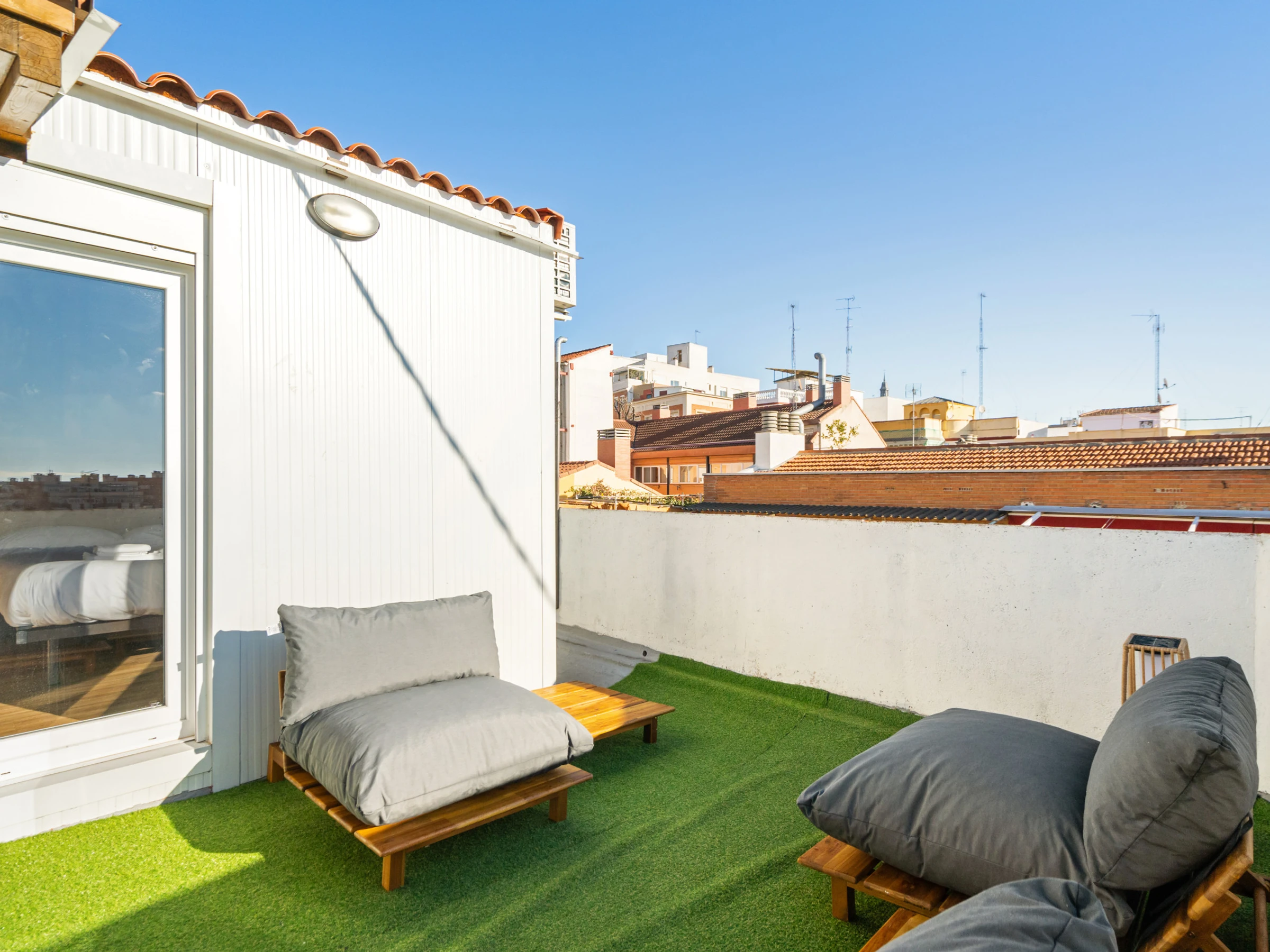 Die Unterkunft verfügt über aufzug, garten, gartenmöbel, 20 m² terrasse, waschmaschine, bügeleisen/-brett, internet (WLAN), haartrockner, balkon, heizung, klimaanlage, 1 Fernseher, sat-tv (Sprachen: Spanisch, Englisch).