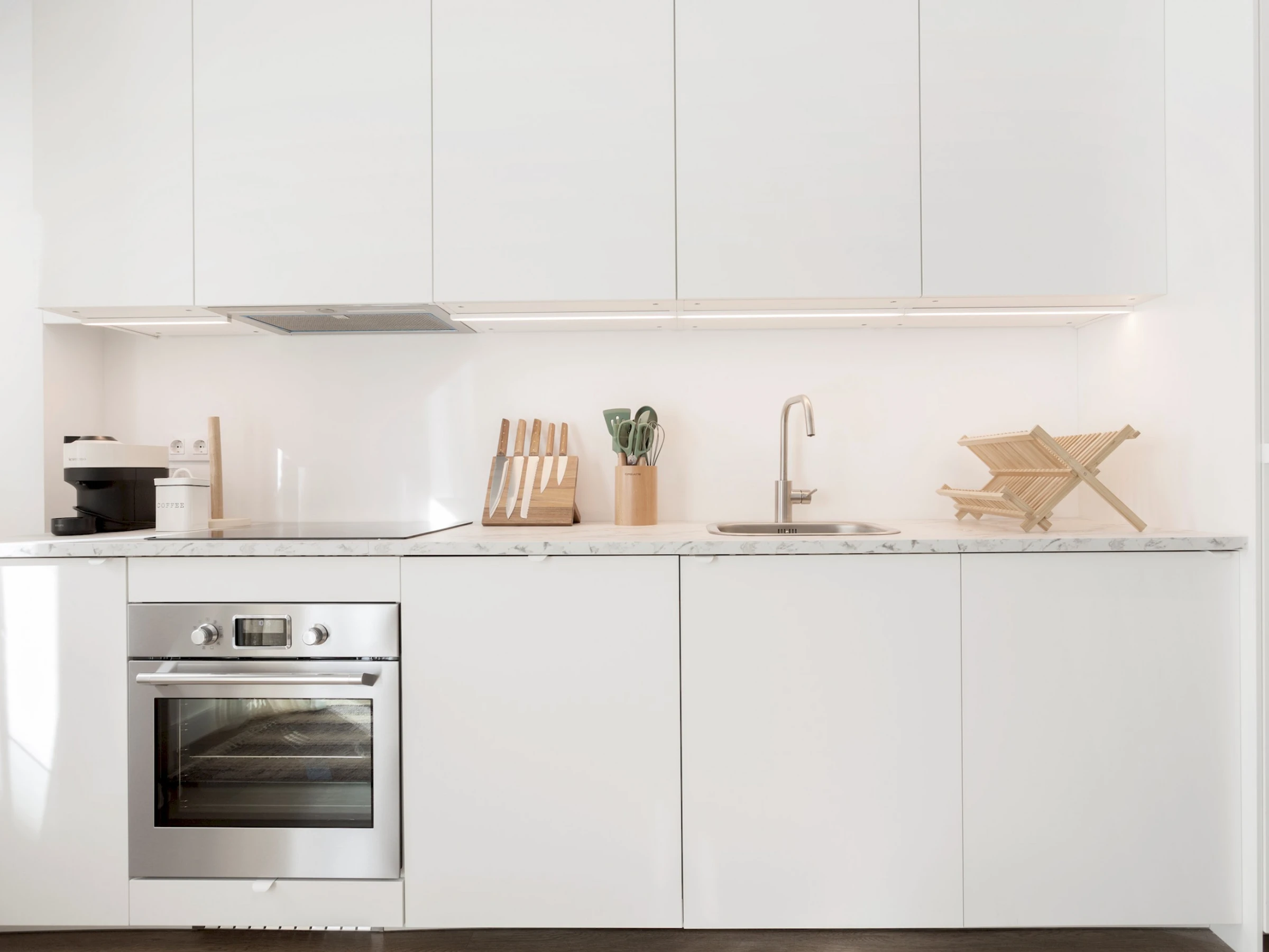 Dieses küche, ist ausgestattet in kühlschrank, mikrowelle, backofen, spülmaschine, geschirr/besteck, kaffeemaschine, toaster und saftpresse.