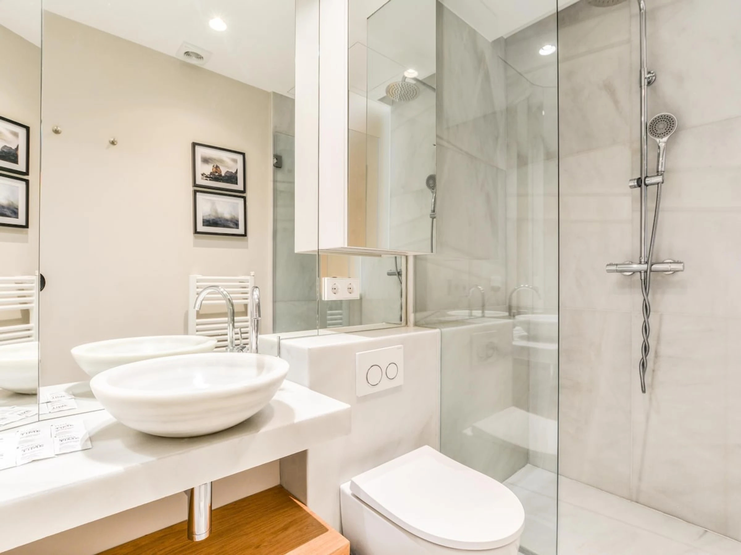 Komplettes Badezimmer: Modern und sauber, ausgestattet mit allen notwendigen Annehmlichkeiten.