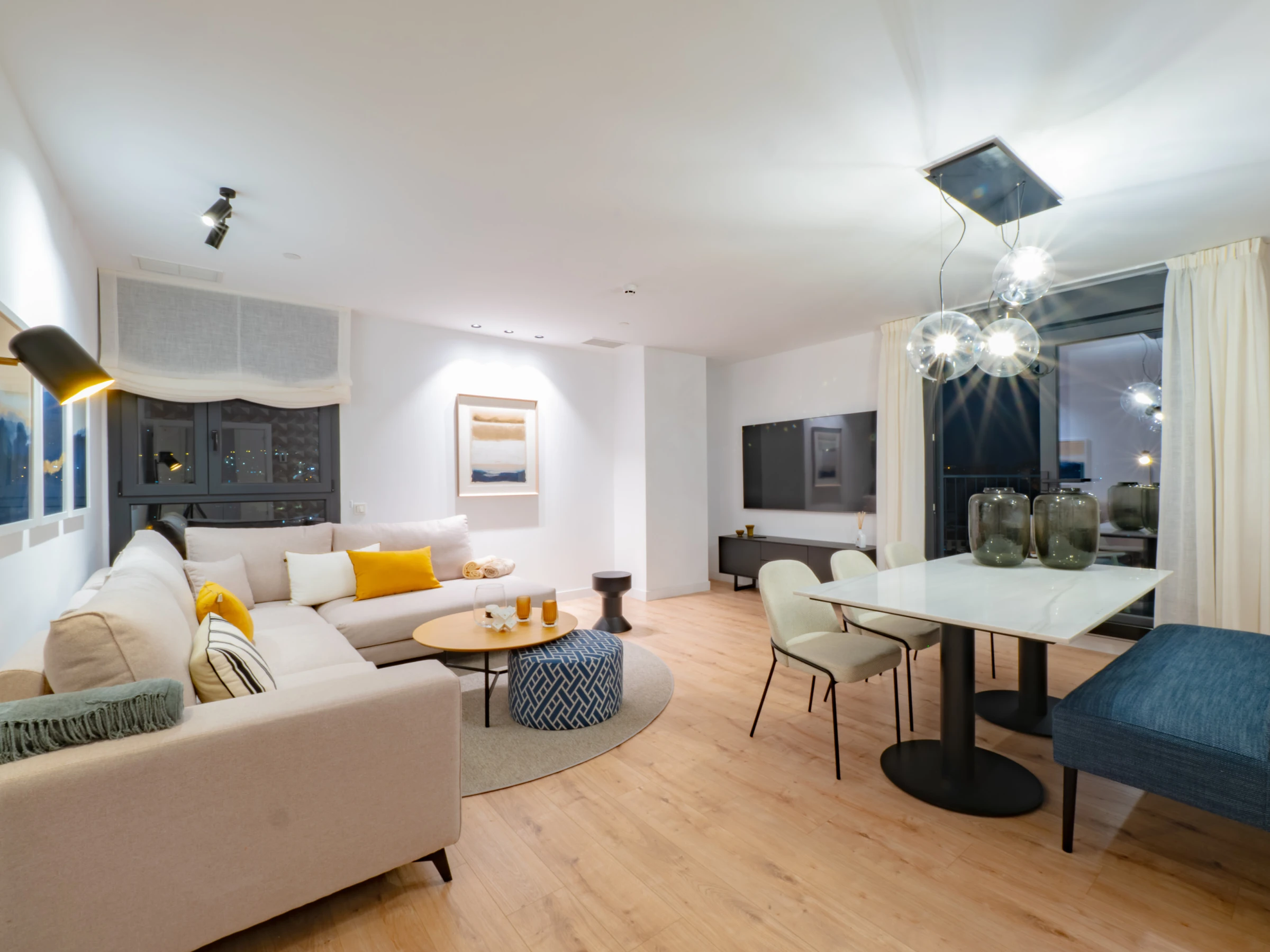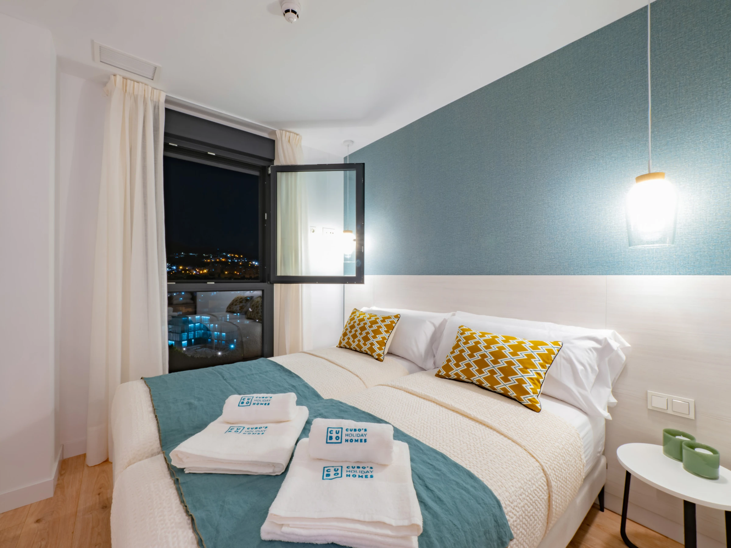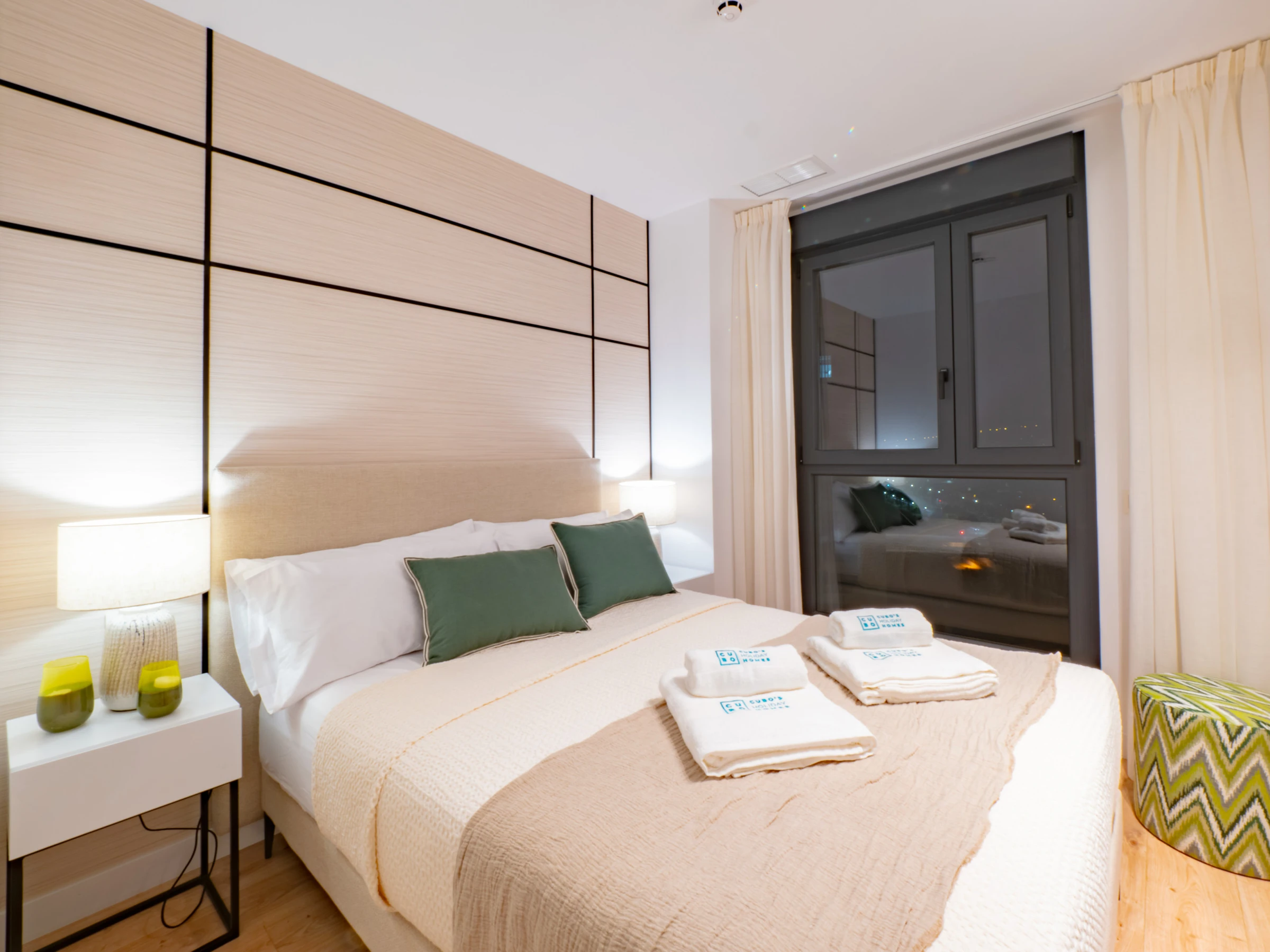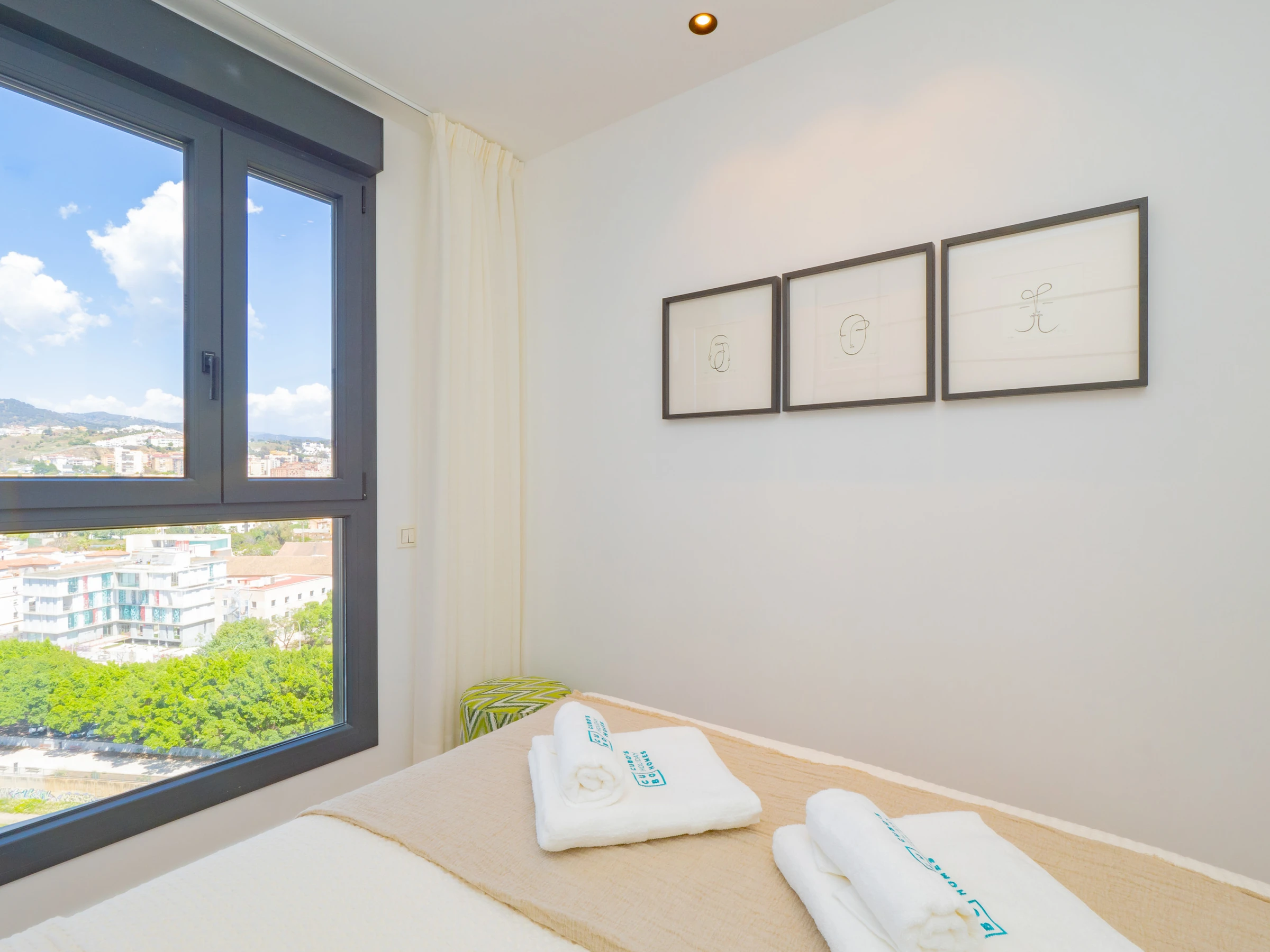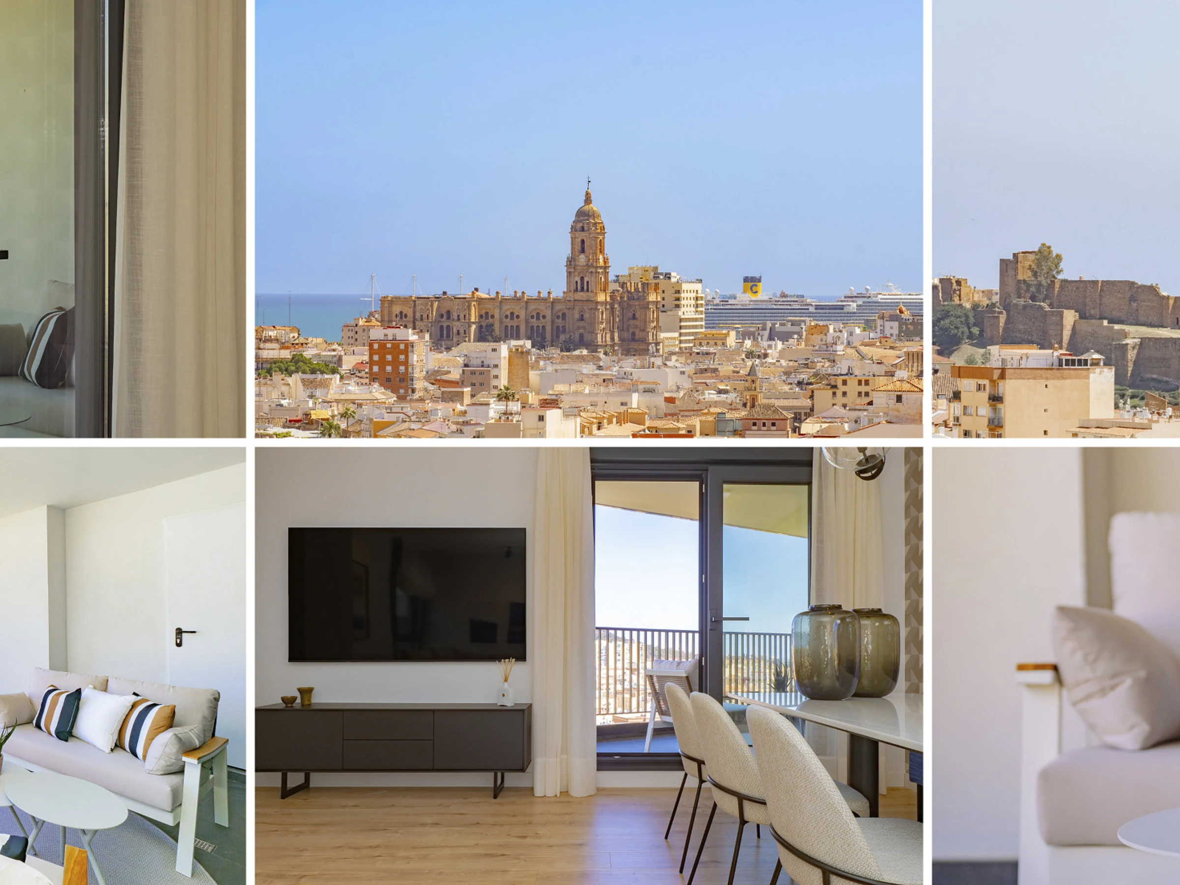 Diese Luxus-Ferienwohnung für 6 Personen befindet sich im emblematischen Viertel Martiricos, nur 15 Gehminuten von der lebhaften Calle Larios entfernt. Er liegt im zwölften Stock der Martiricos-Türme und bietet ein einzigartiges Erlebnis mit Panoramablick auf Málaga und einem eleganten, sorgfältig gestalteten Innenraum. Mit 98 m² verfügt die Unterkunft über drei Schlafzimmer: zwei mit Doppelbetten (eines mit eigenem Badezimmer) und ein drittes mit zwei Einzelbetten, die einen komfortablen und privaten Aufenthalt für alle Gäste gewährleisten.