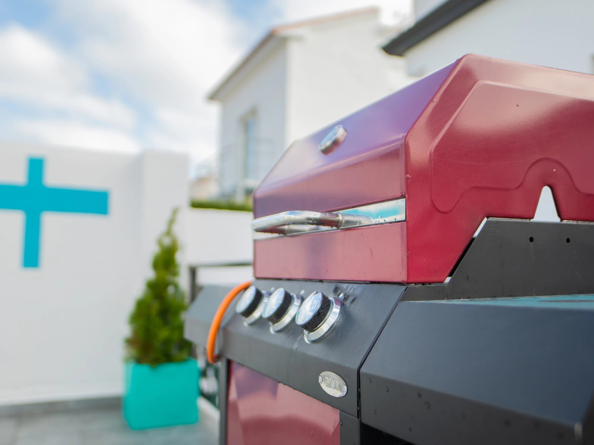 Die Villa, mit eingezäuntem Grundstück und privatem Swimmingpool, der von verschiedenen Außenbereichen aus sichtbar ist, lädt zum Entspannen in hochwertigen Möbeln ein. Der Gasgrill ist ideal für einzigartige Momente mit Familie oder Freunden. 🍖🏡