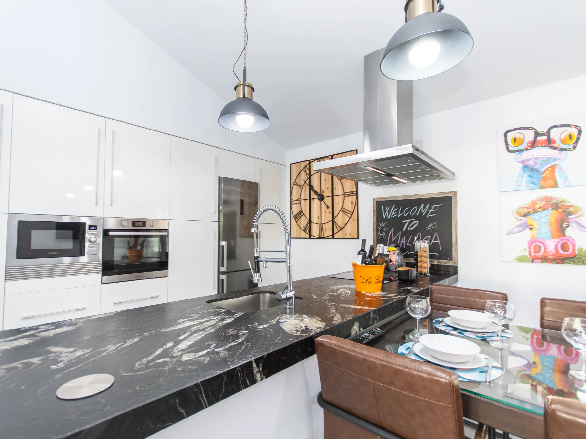 Die Küche ist komplett ausgestattet: Glaskeramikkochfeld, Kühlschrank, Mikrowelle, Backofen, Gefrierschrank, Waschmaschine, Geschirrspüler, Kaffeemaschine, Toaster, Wasserkocher und Entsafter, alles bereit, um deine Mahlzeiten mit vollem Komfort zuzubereiten. 🥘☕🍞