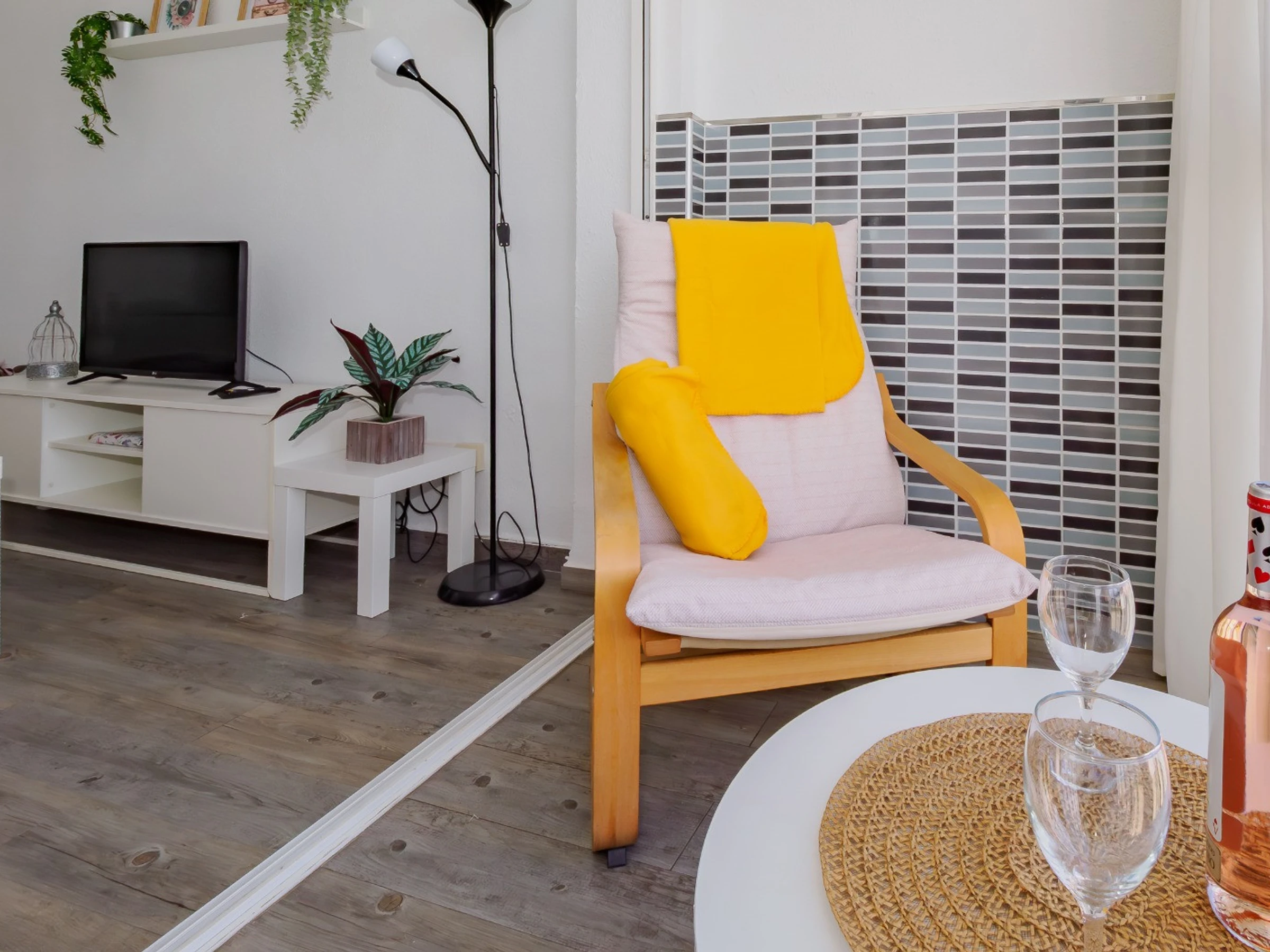 Der Esssalon ist hell und gemütlich, ausgestattet mit Smart-TV, Klimaanlage und drei Ventilatoren, ideal zum Abkühlen während der Sommermonate. Der Internetanschluss per Glasfaser ermöglicht das Arbeiten oder Genießen von Streaming ohne Unterbrechungen.