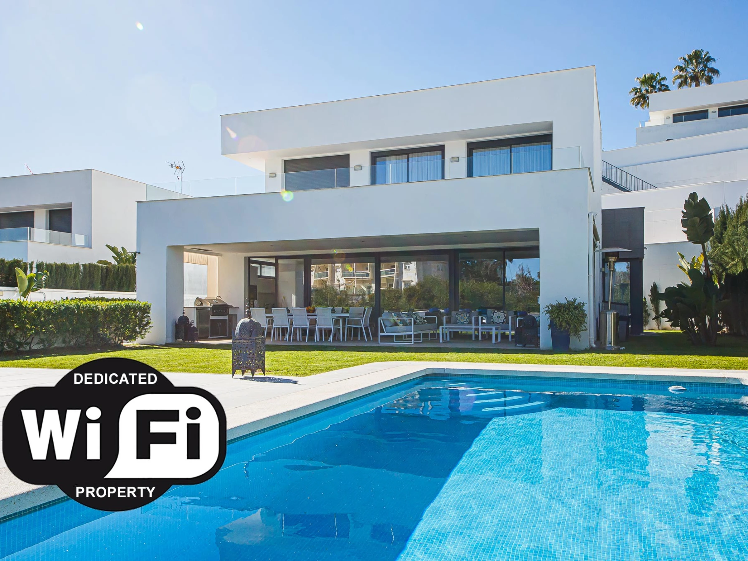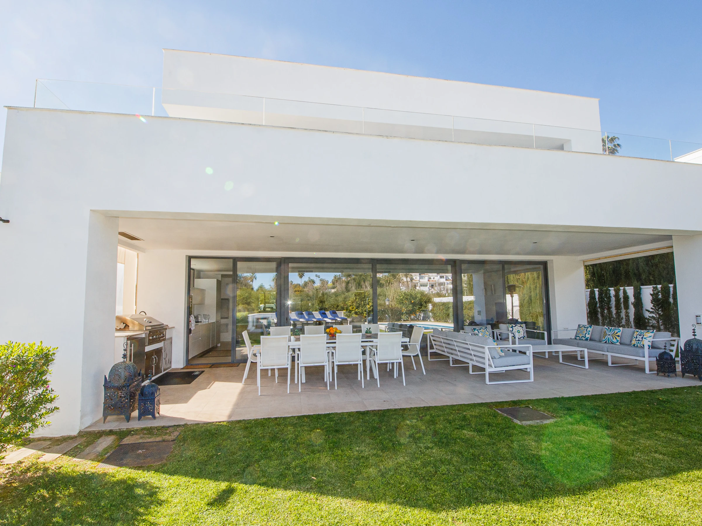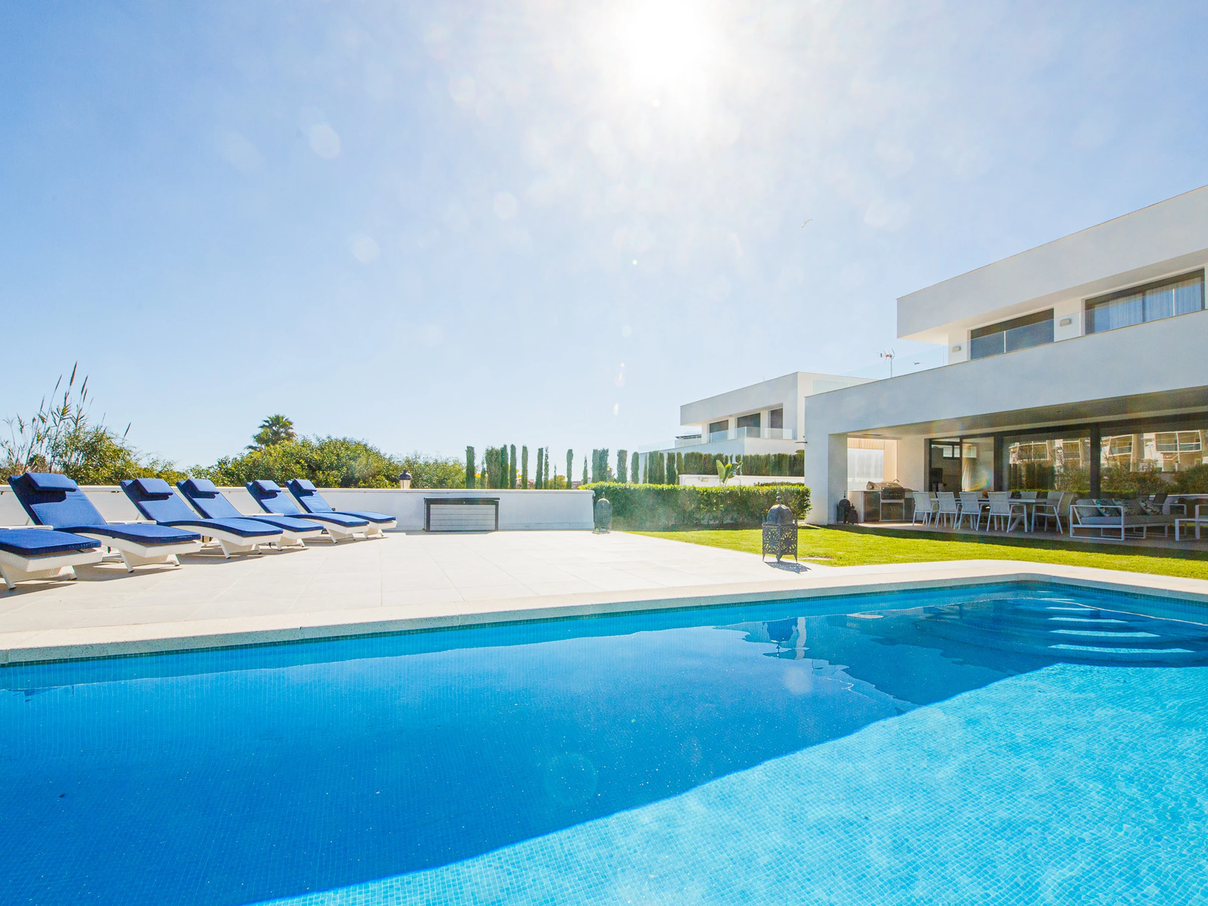 Die Unterkunft verfügt über garten, gartenmöbel, terrasse, waschmaschine, grill, bügeleisen/-brett, internet (WLAN), haartrockner, balkon, zentralheizung, klimaanlage, swimming-pool privater pool, überdachter parkplatz in auf dem grundstück, 1 Fernseher.