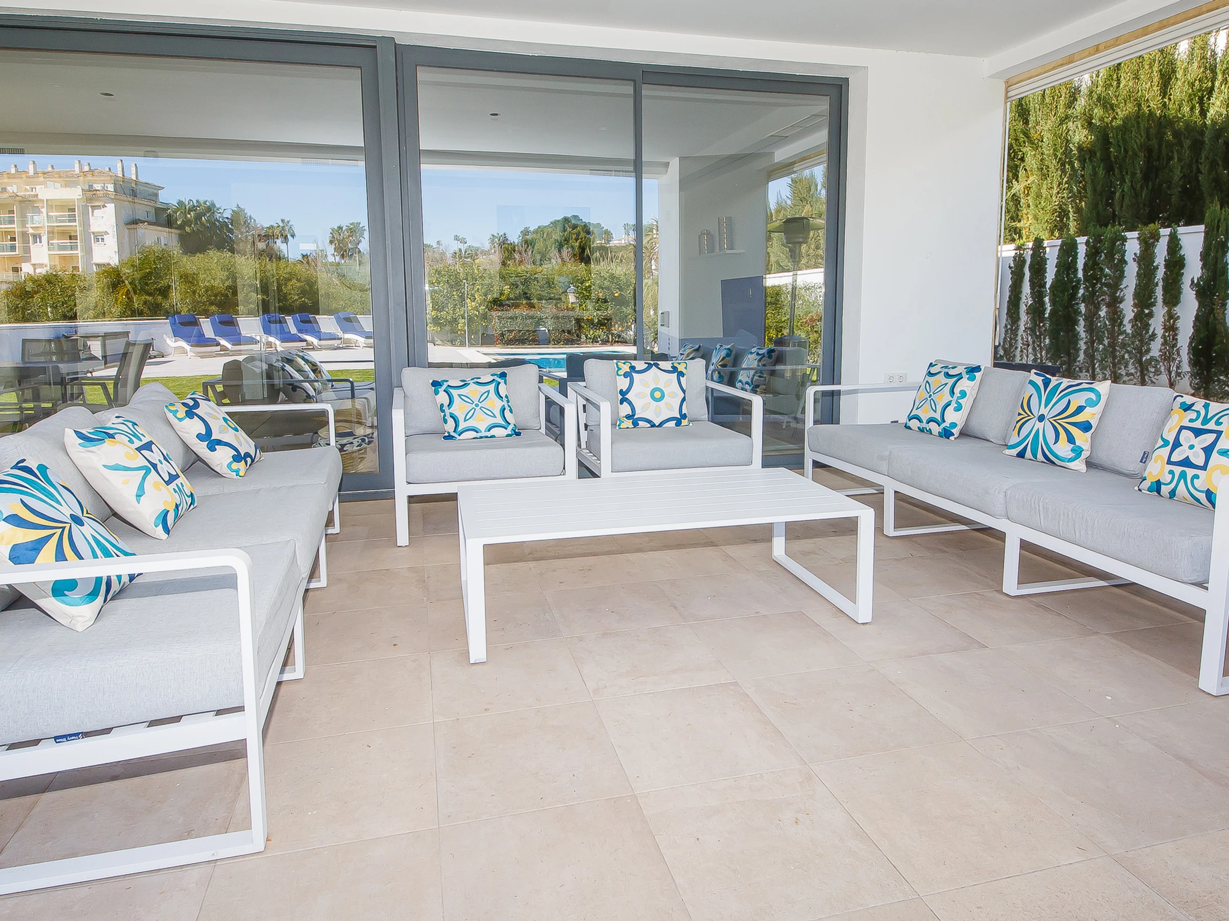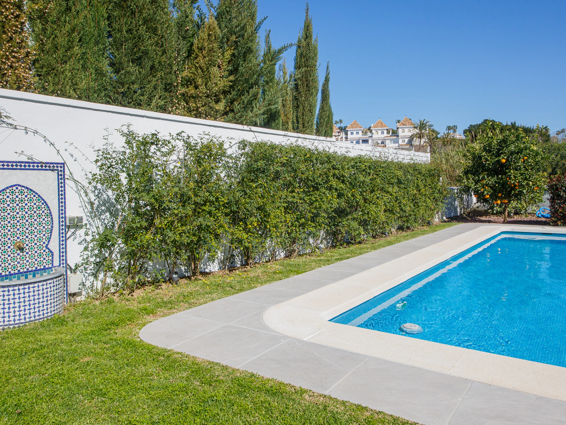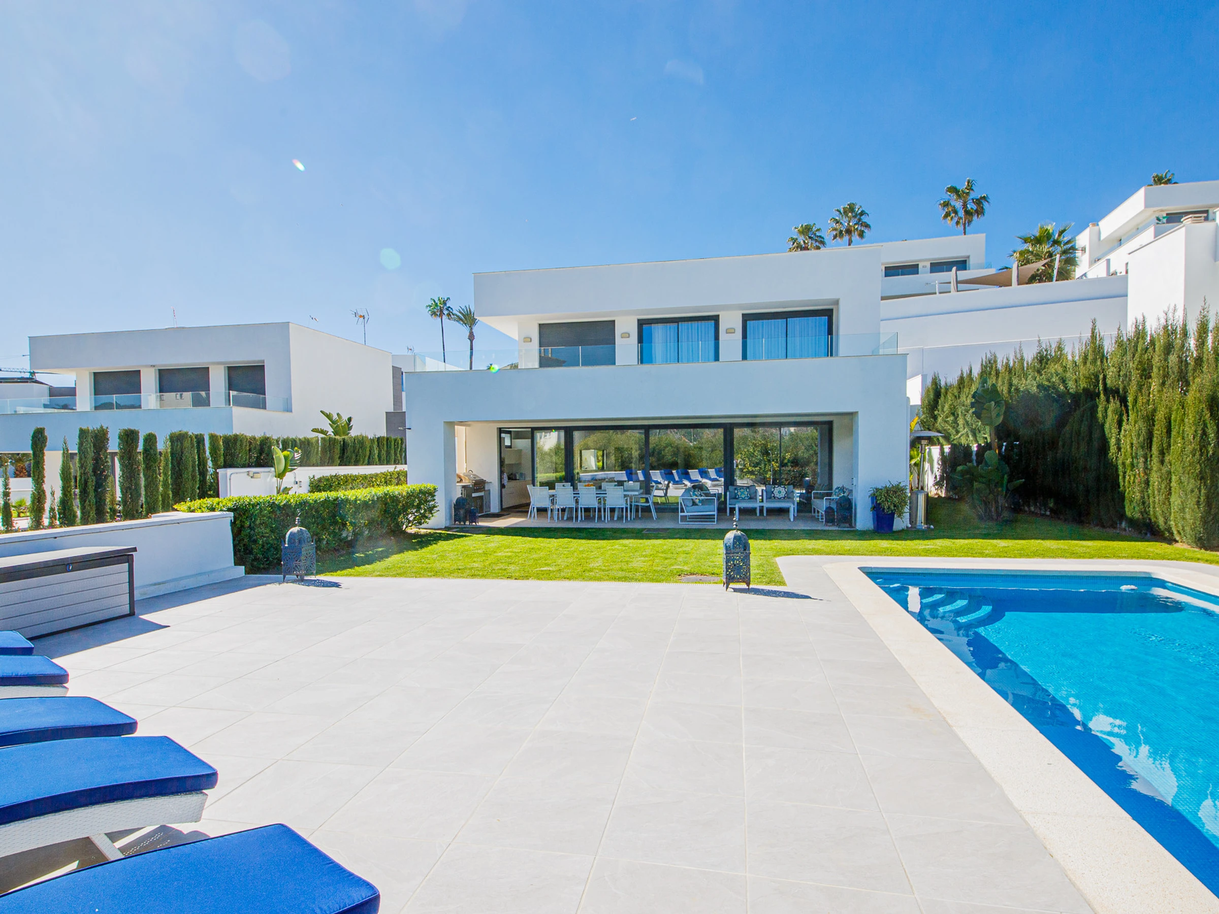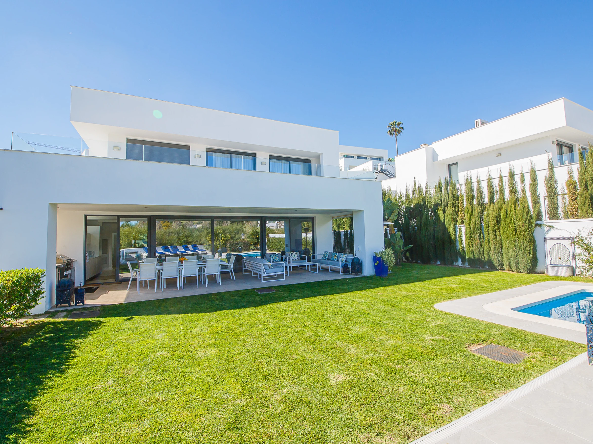 Die Unterkunft verfügt über garten, gartenmöbel, terrasse, waschmaschine, grill, bügeleisen/-brett, internet (WLAN), haartrockner, balkon, zentralheizung, klimaanlage, swimming-pool privater pool, überdachter parkplatz in auf dem grundstück, 1 Fernseher.