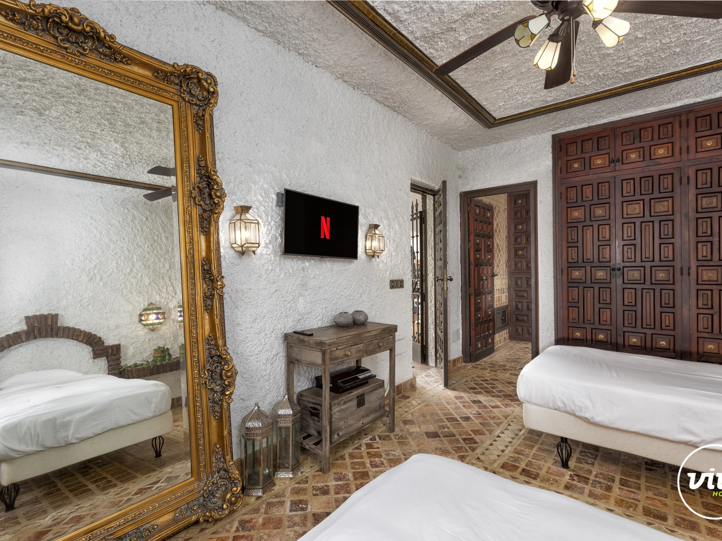 Die Unterkunft verfügt über garten, gartenmöbel, umzäuntes grundstück, [hidden] m² terrasse, waschmaschine, trockner, grill, kamin, bügeleisen/-brett, safe, internet (WLAN), haartrockner, balkon, alarm, sauna, elektroheizung, klimaanlage, swimming-pool privater pool, parkplatz im freien in auf dem grundstück, 1 ventilator, 3 Fernsehgeräte.