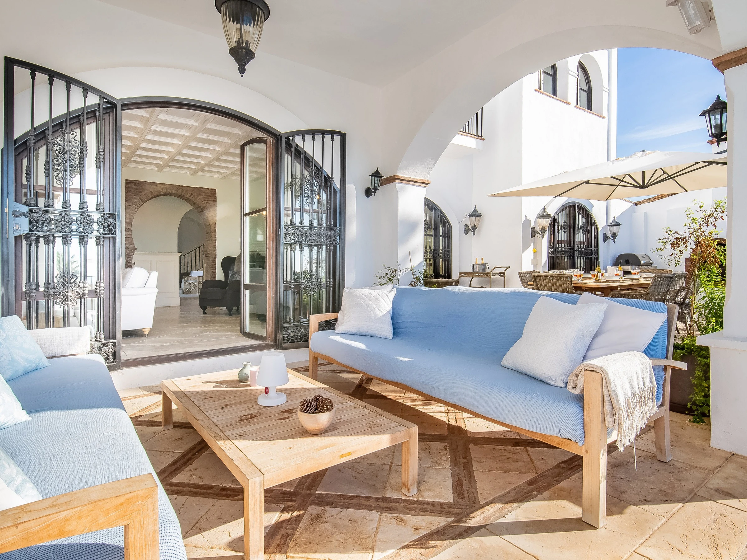 Eine wunderbare andalusische Villa mit fantastischen Außenanlagen wie einem beheizten Privatpool und Whirlpool in kurzer Entfernung zum feinen Strand. Die Villa ist für 12 Personen.