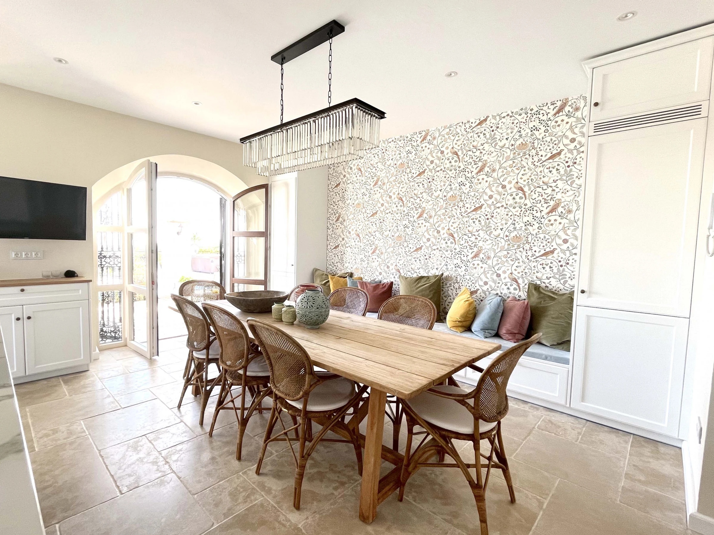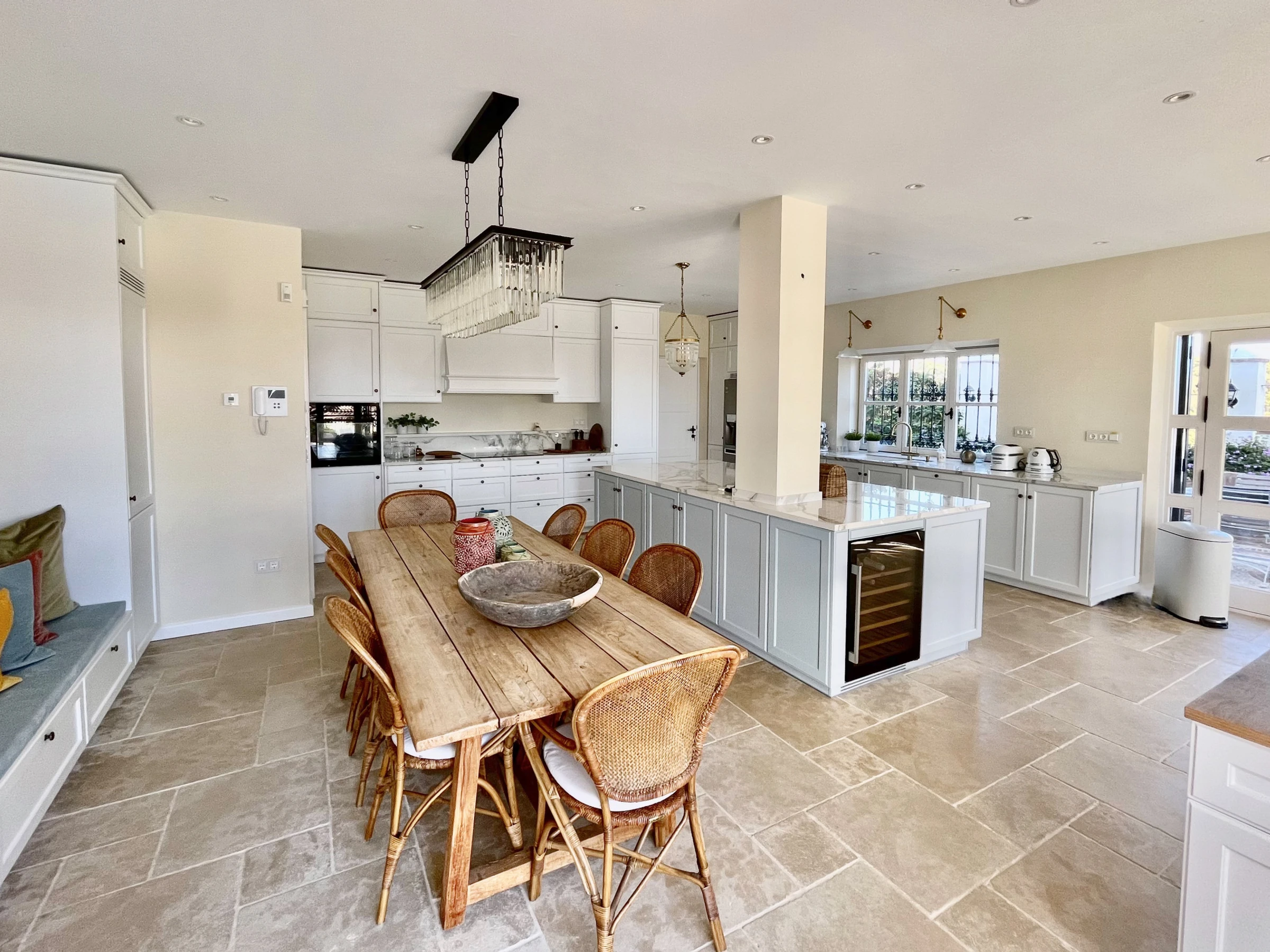 Die riesige und mehr als gut ausgestattete Küche mit Esstisch hat eine gemütliche Atmosphäre. Die Kochinsel ermöglicht es Ihnen, sich mit dem Koch beim Abendessen zu unterhalten.