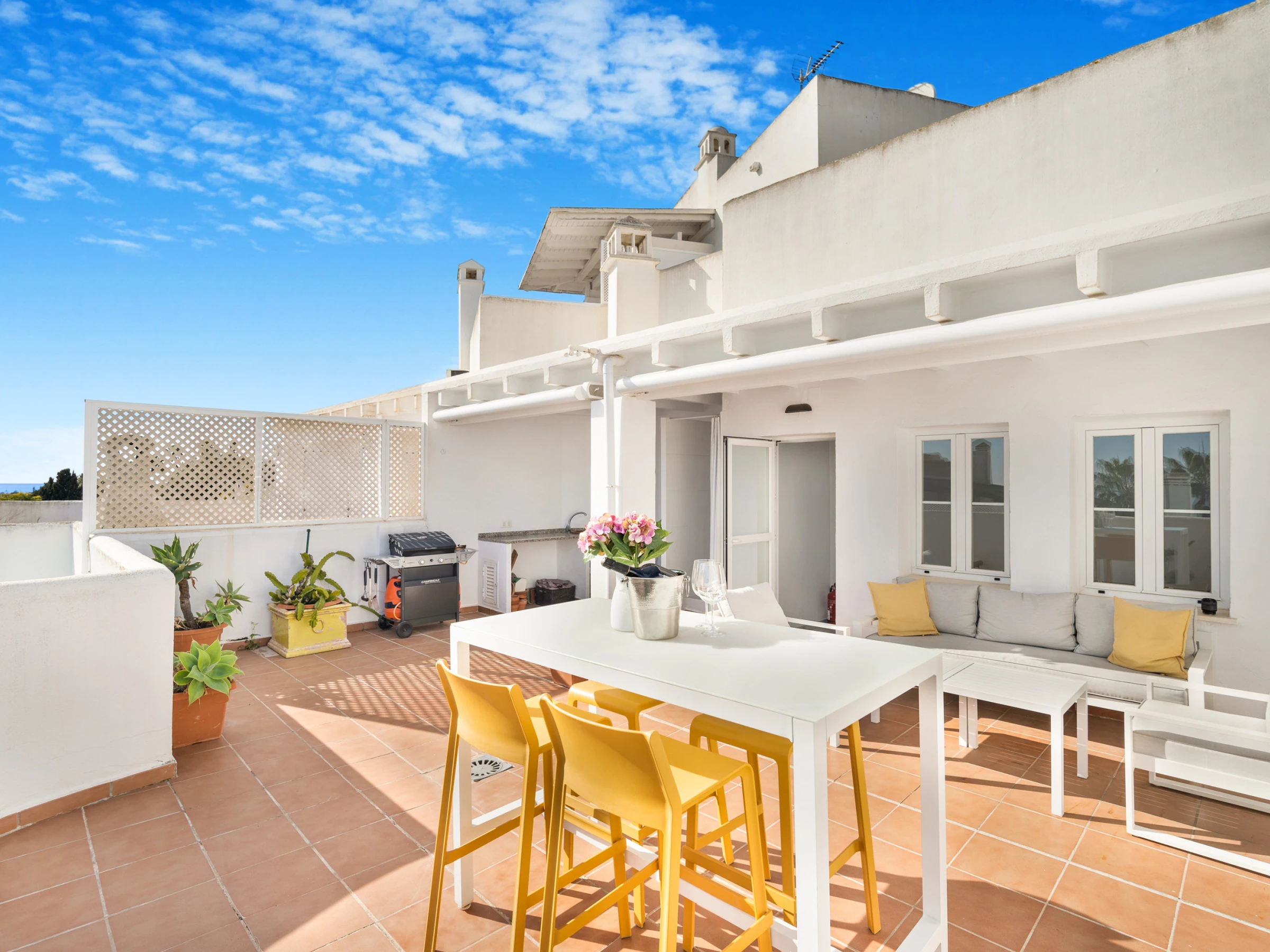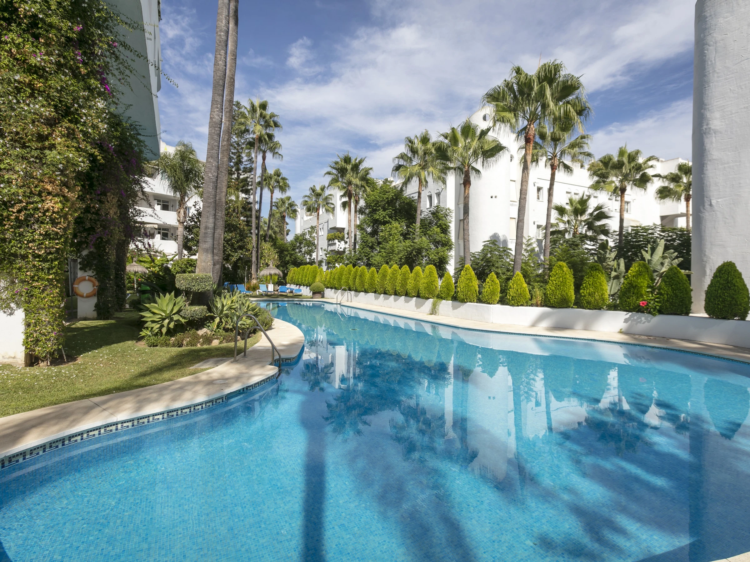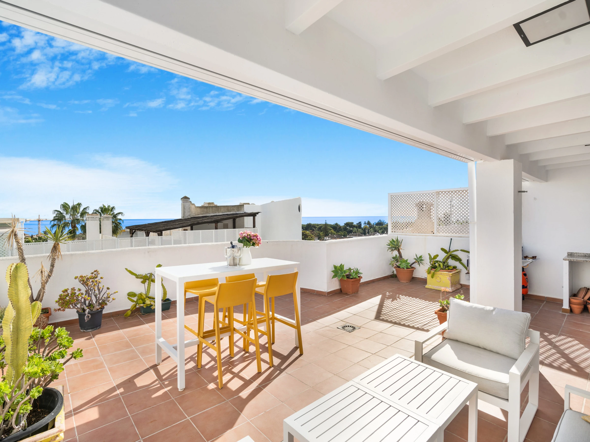 Eine neu renovierte Wohnung in der Golden Mile, eingebettet in eine wunderschöne Resort-Gemeinschaft. Die Immobilie wurde durchgehend auf höchstem Niveau eingerichtet; mit einer eleganten modernen Küche und einem offenen Wohnbereich. Das Highlight ist jedoch die riesige Dachterrasse mit Meerblick bis Gibraltar und Nordafrika an klaren Tagen. Dieser private Außenbereich verfügt über einen verschiebbaren Esstisch/Bartisch und eine Sammlung luxuriöser Outdoor-Möbel sowie eine Außendusche, perfekt um das ganzjährig sonnige Klima Marbellas zu genießen. Die Wohnung befindet sich in kurzer Gehentfernung zum Casablanca-Strand, Marbellas bestem, mit exklusiven Restaurants, entspannenden Bars und stilvollen Cafés.