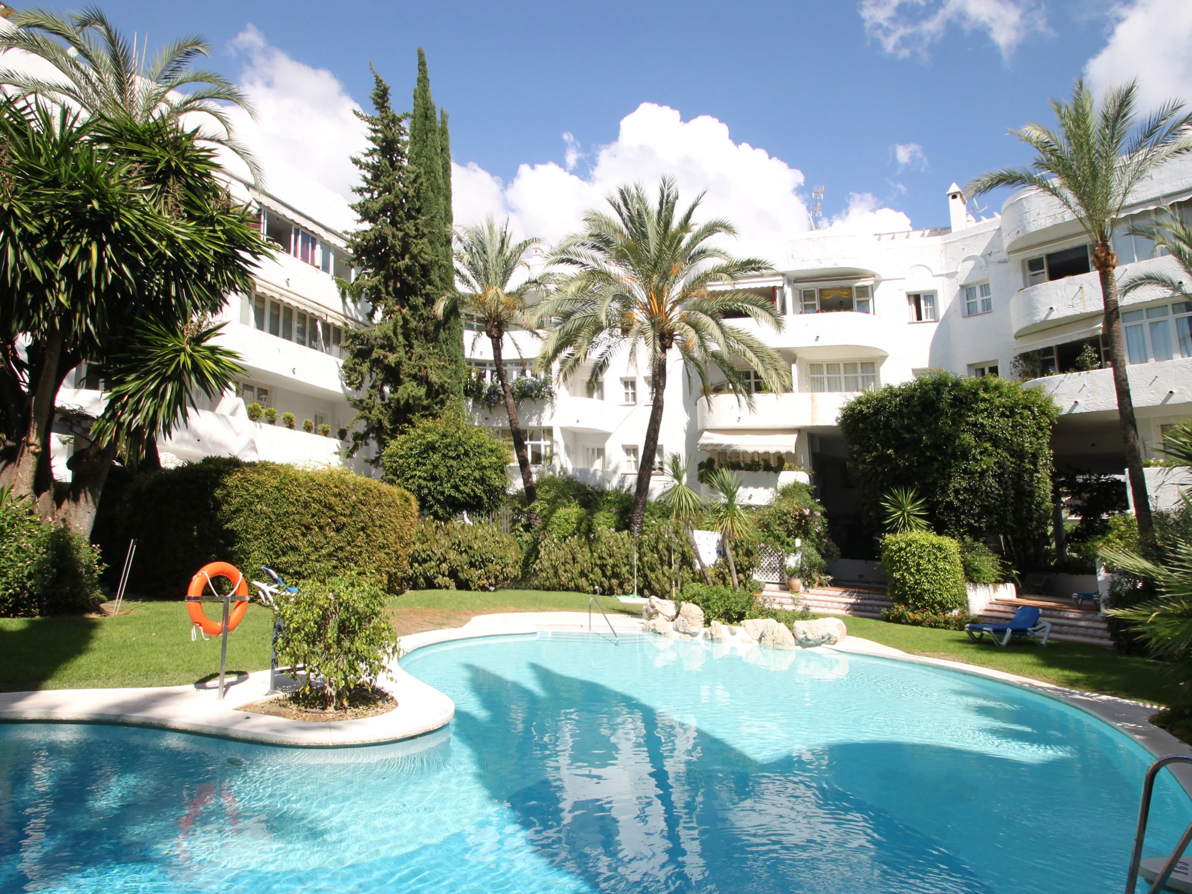 Gäste werden großzügige, landschaftlich gestaltete tropische Blumengärten, Wasserfälle, Brunnen und einen Swimmingpool innerhalb der Gemeinschaft genießen. Es gibt auch ein voll ausgestattetes Fitnessstudio, das im selben Gebäude kostenlos genutzt werden kann. Dieser 24-Stunden-sichere und bewachte Komplex, der im Herzen der Golden Mile liegt, ist nur zwei Minuten von Geschäften, ausgezeichneten Restaurants, Supermärkten, Golf und einer Vielzahl von Freizeiteinrichtungen entfernt; alles in sehr bequemer Reichweite.