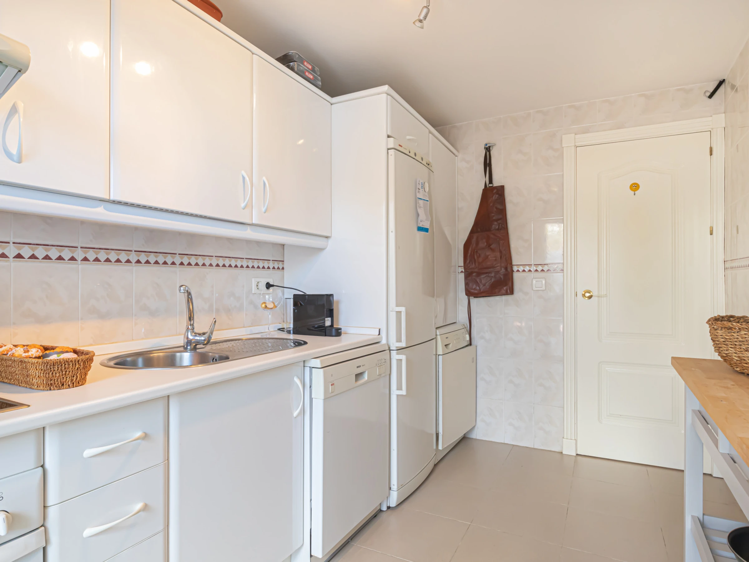 Dieses küche, ist ausgestattet in mikrowelle, gefrierschrank, spülmaschine, kaffeemaschine und toaster.