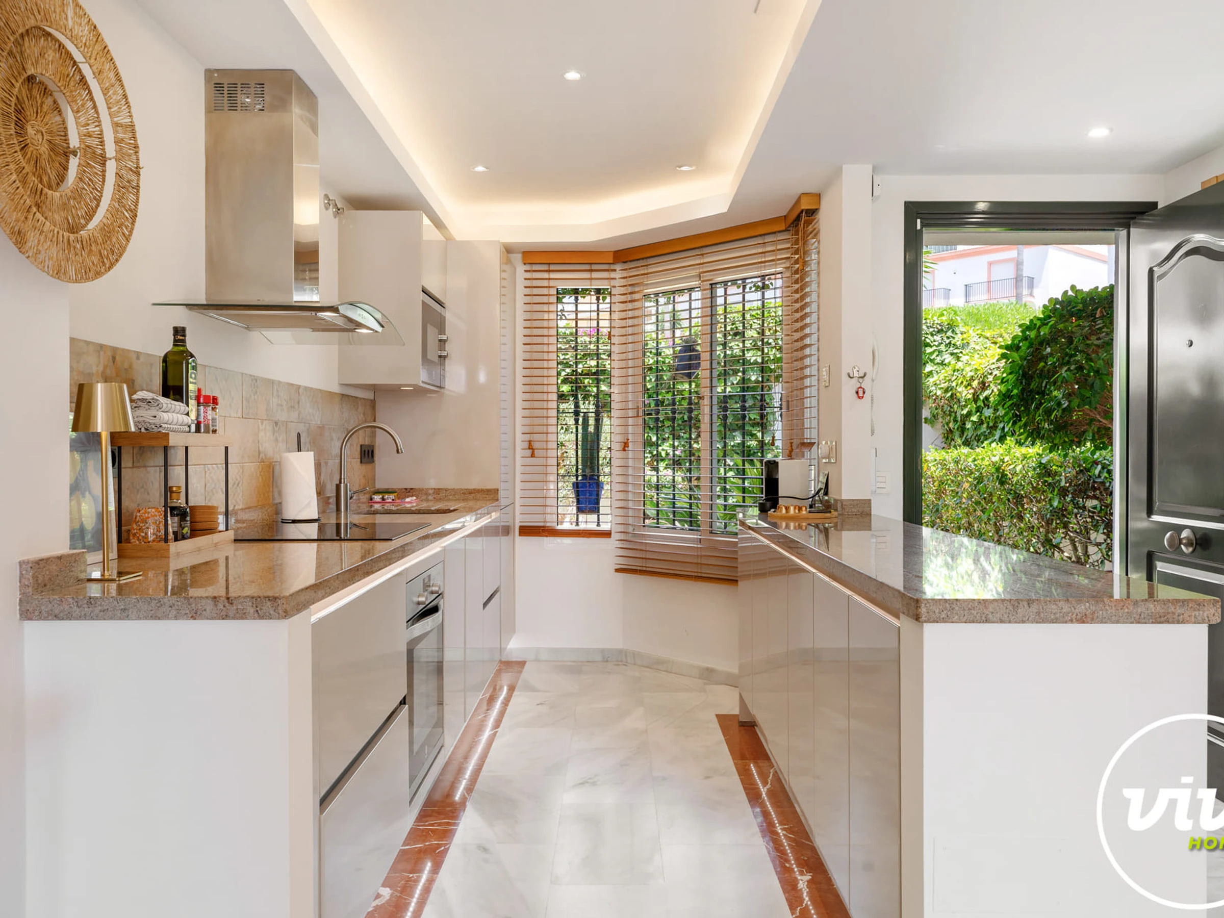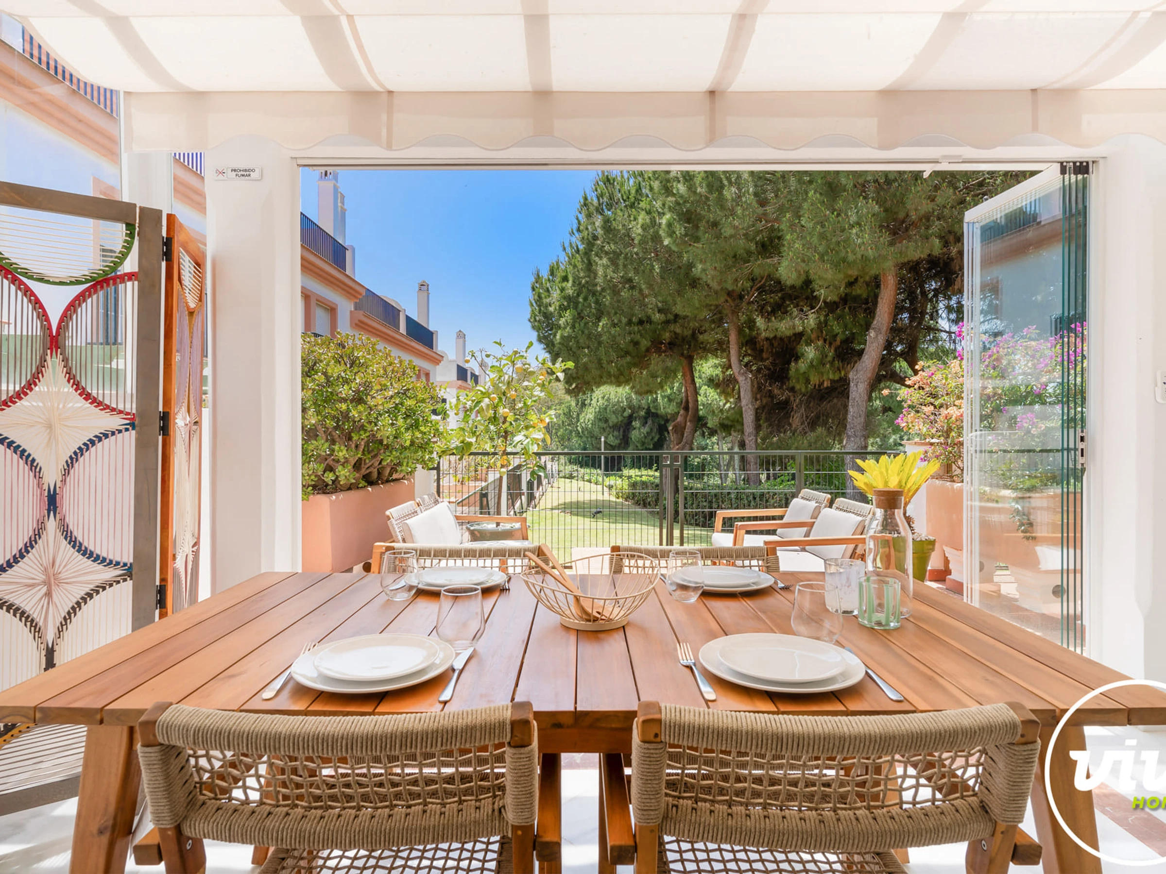 Die Unterkunft verfügt über garten, gartenmöbel, umzäuntes grundstück, 65 m² terrasse, waschmaschine, trockner, bügeleisen/-brett, safe, internet (WLAN), haartrockner, zentralheizung, klimaanlage, swimming-pool gemeinschaftlicher swimming-pool, parkplatz im freien in in grundstücksnähe, 1 Fernseher.