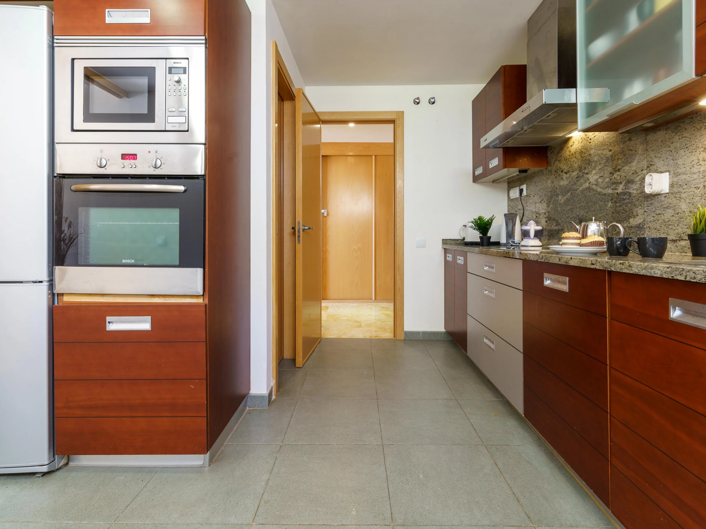 Dieses küche, ist ausgestattet in mikrowelle, gefrierschrank, spülmaschine, kaffeemaschine und toaster.