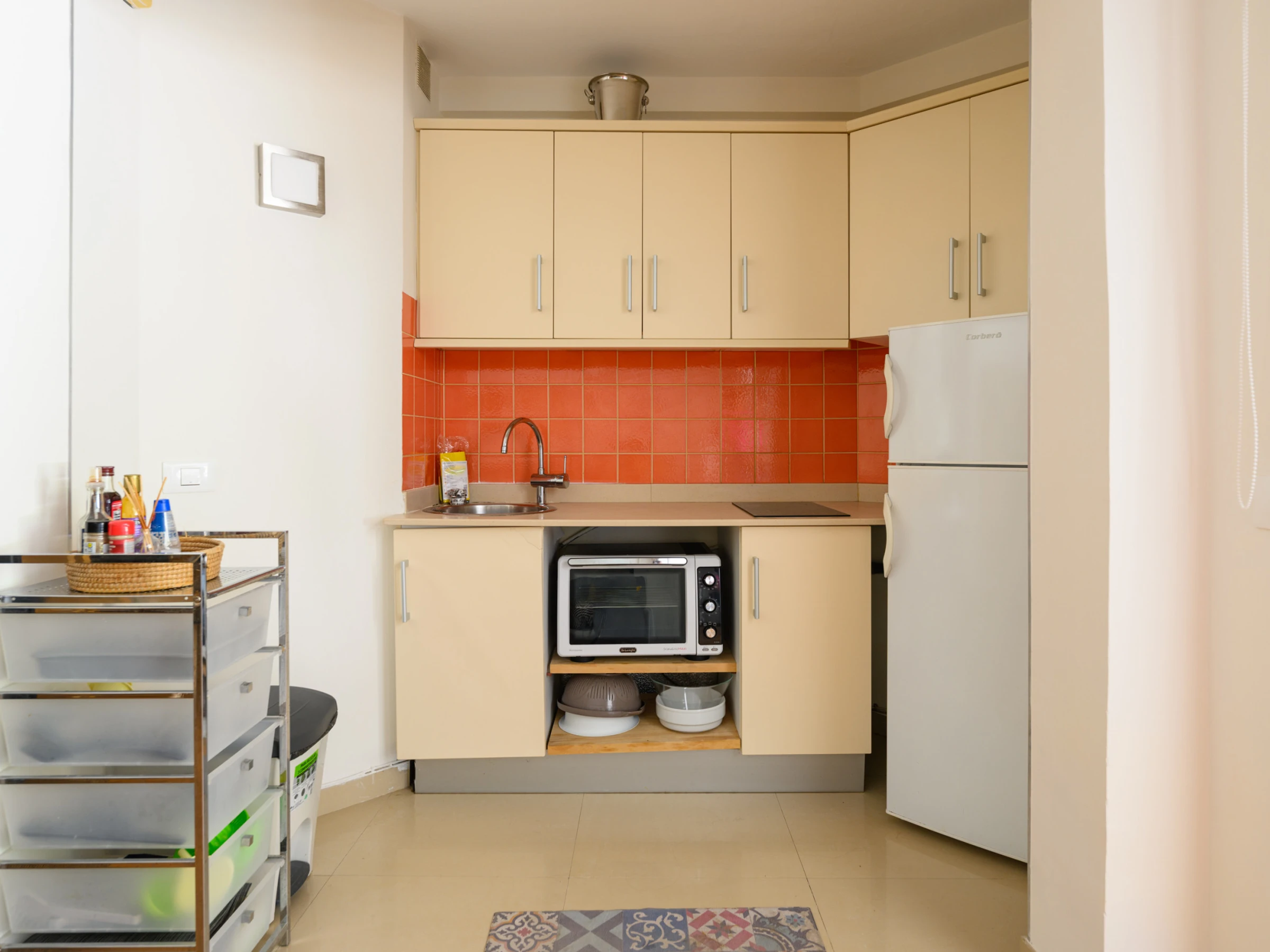 Die Wohnung ist vollständig ausgestattet und renoviert, verfügt über 1 Doppelzimmer und ein Schlafsofa mit Platz für 3 Personen, ein geräumiges Wohnzimmer, Badezimmer und Küche. Die separate Induktionsküche ist komplett ausgestattet mit Kühlschrank, Mikrowelle, Ofen, Gefrierschrank, Waschmaschine, Trockner, Geschirr/Besteck, Küchenutensilien, Kaffeemaschine, Toaster, Wasserkocher.