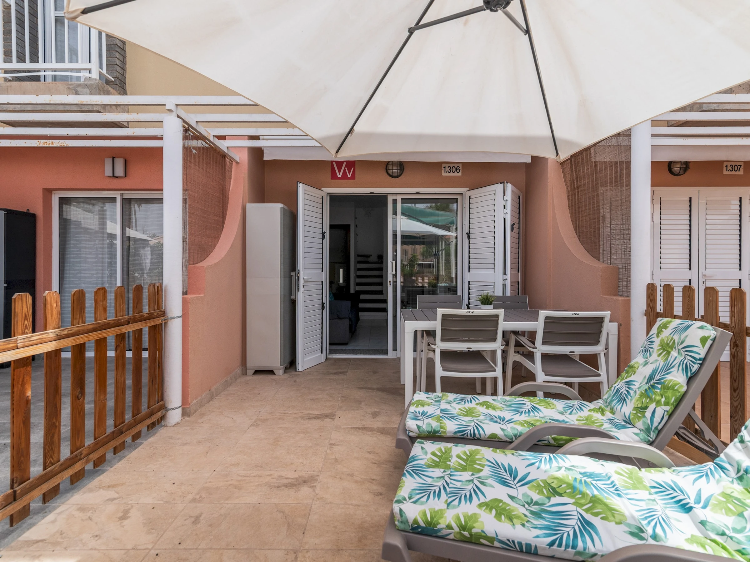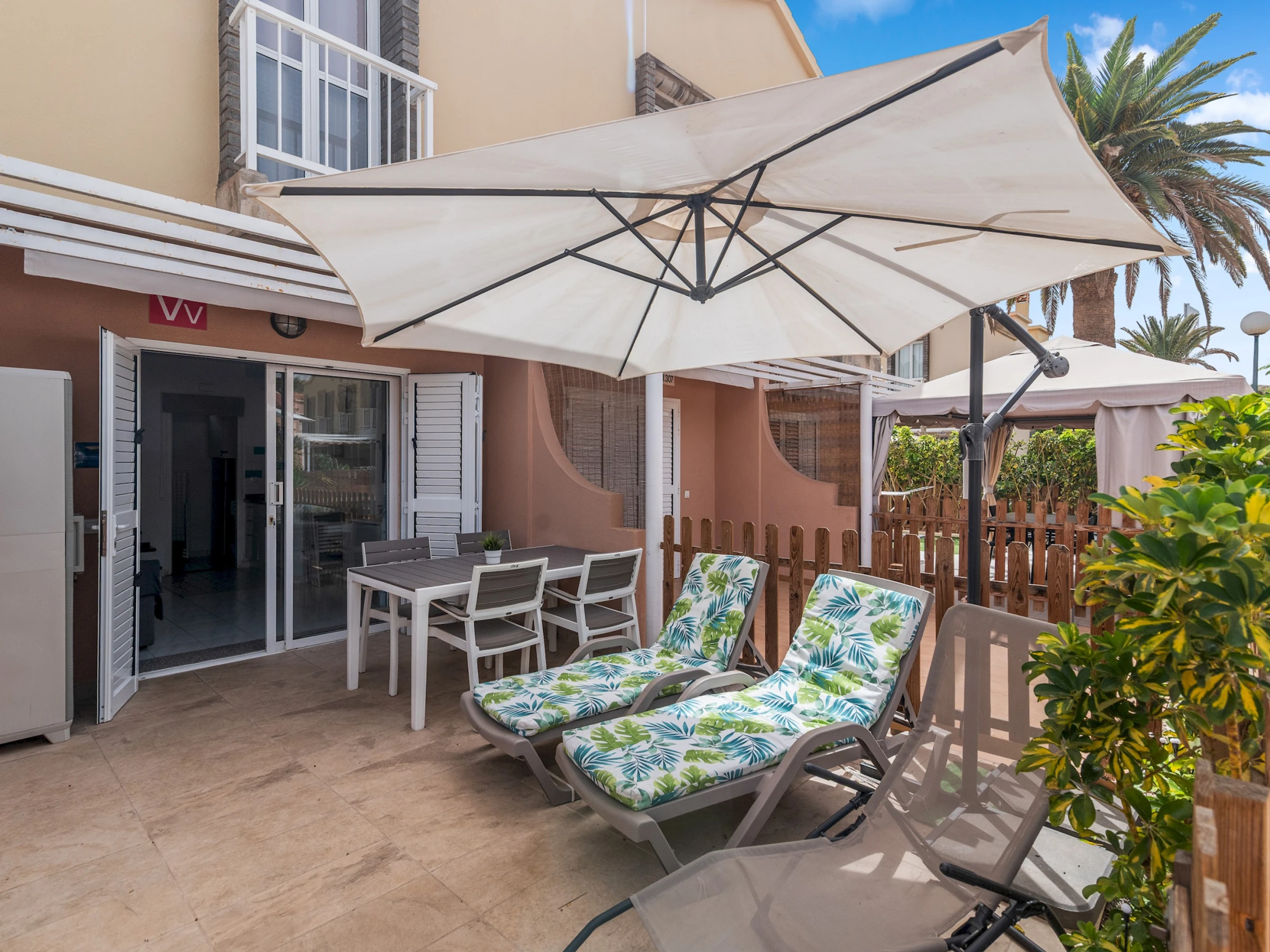 Die Unterkunft verfügt über terrasse, waschmaschine, bügeleisen/-brett, TV.