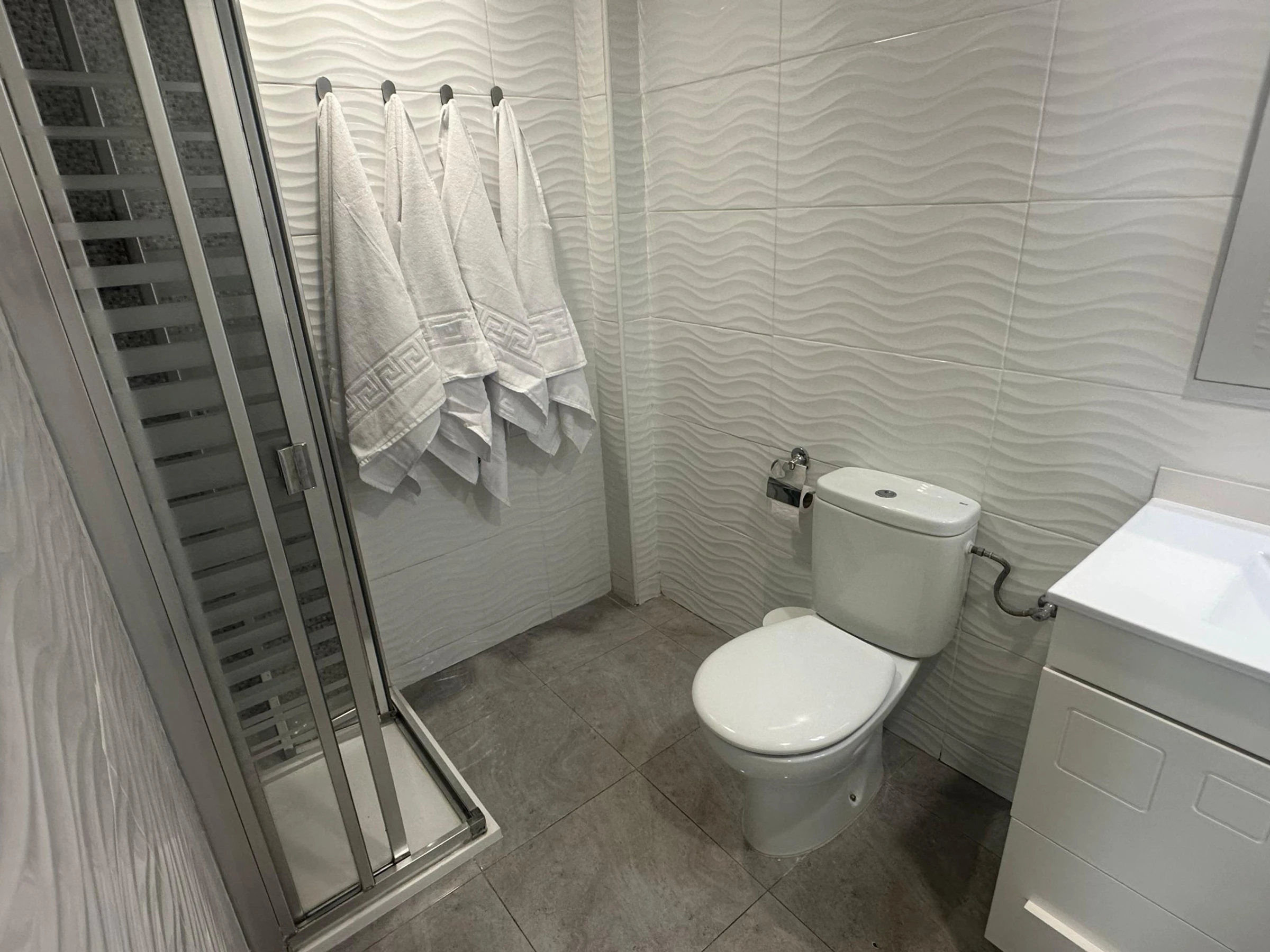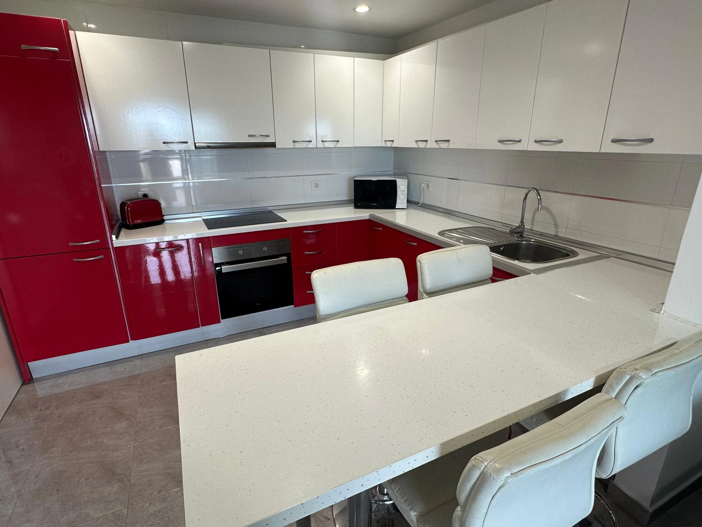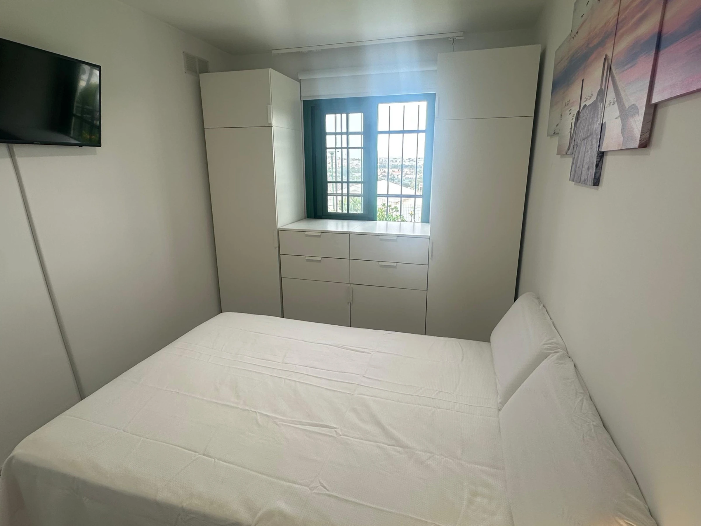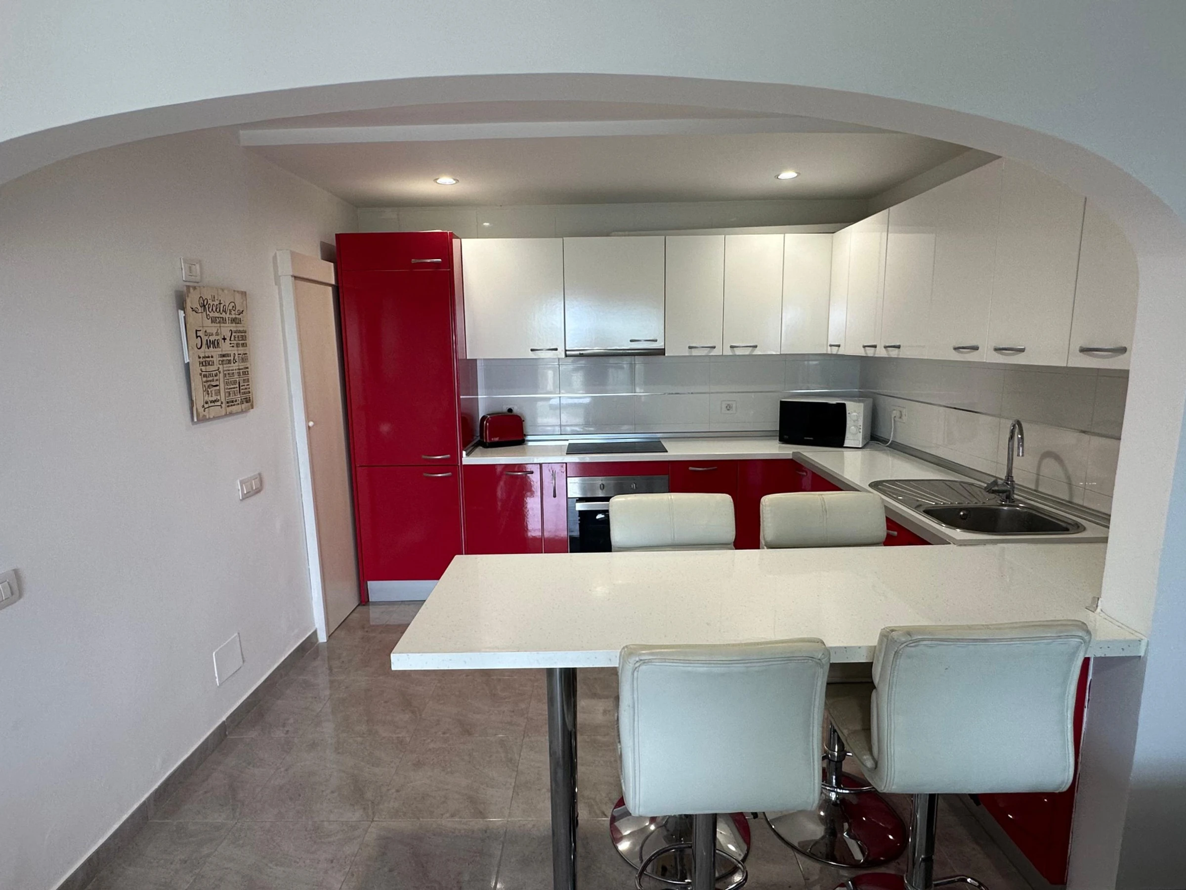 Im Inneren bietet die Wohnung ein Schlafzimmer mit einem Hauptdoppelbett und einem Schlafsofa im Wohnzimmer. Die Küche ist vollständig ausgestattet mit Kühlschrank, Geschirrspüler, Backofen, Mikrowelle, Kaffeemaschine, Toaster und allen notwendigen Utensilien zum Kochen.