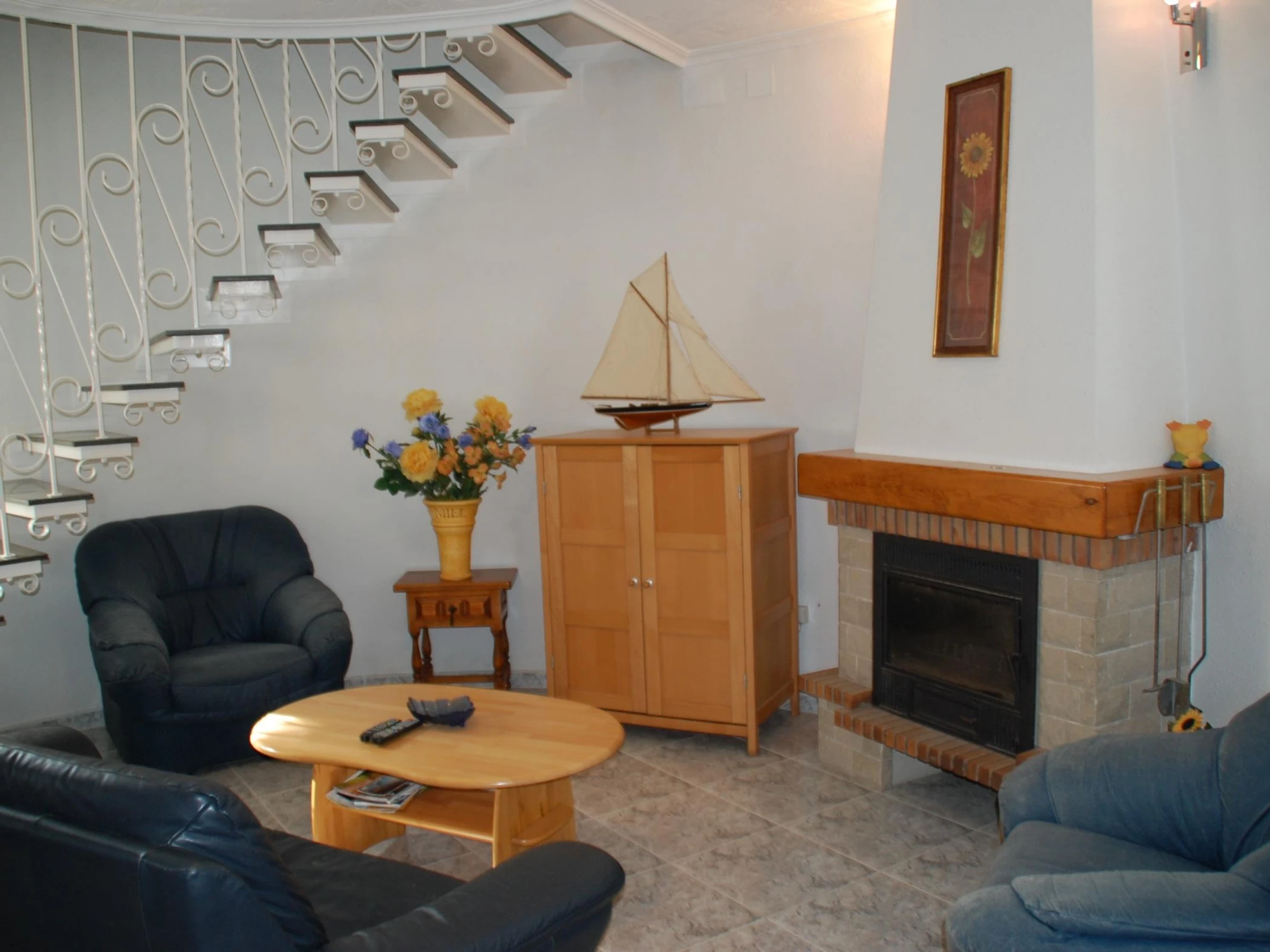 Im Erdgeschoss finden Sie eine ausgestattete amerikanische Küche, ein Wohnzimmer, ein Esszimmer mit, zwei Schlafzimmer, eines mit zwei Einzelbetten und eines mit Doppelbett (180cm) und zwei Badezimmer.