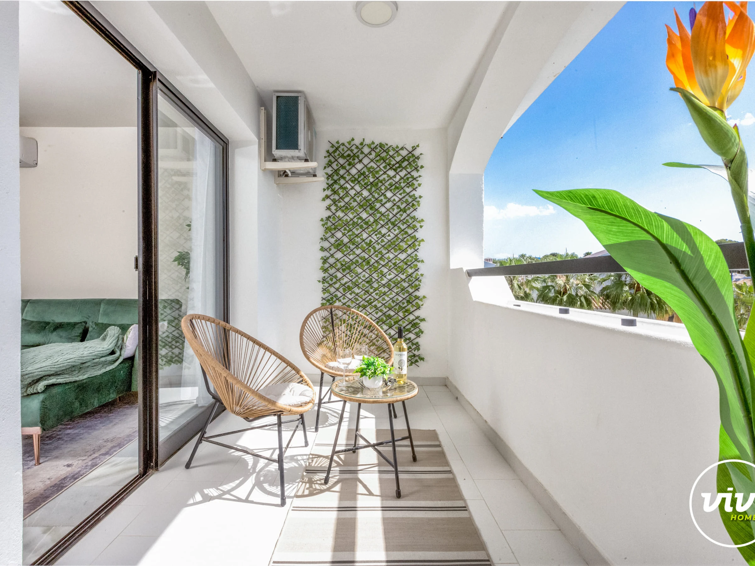 Die Unterkunft verfügt über gartenmöbel, 15 m² terrasse, waschmaschine, bügeleisen/-brett, safe, internet (WLAN), haartrockner, balkon, alarm, zentralheizung, klimaanlage, swimming-pool gemeinschaftlicher swimming-pool, parkplatz im freien in in grundstücksnähe, 1 Fernseher.