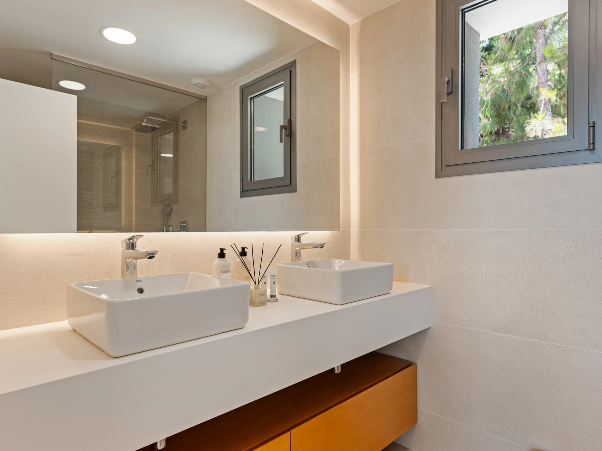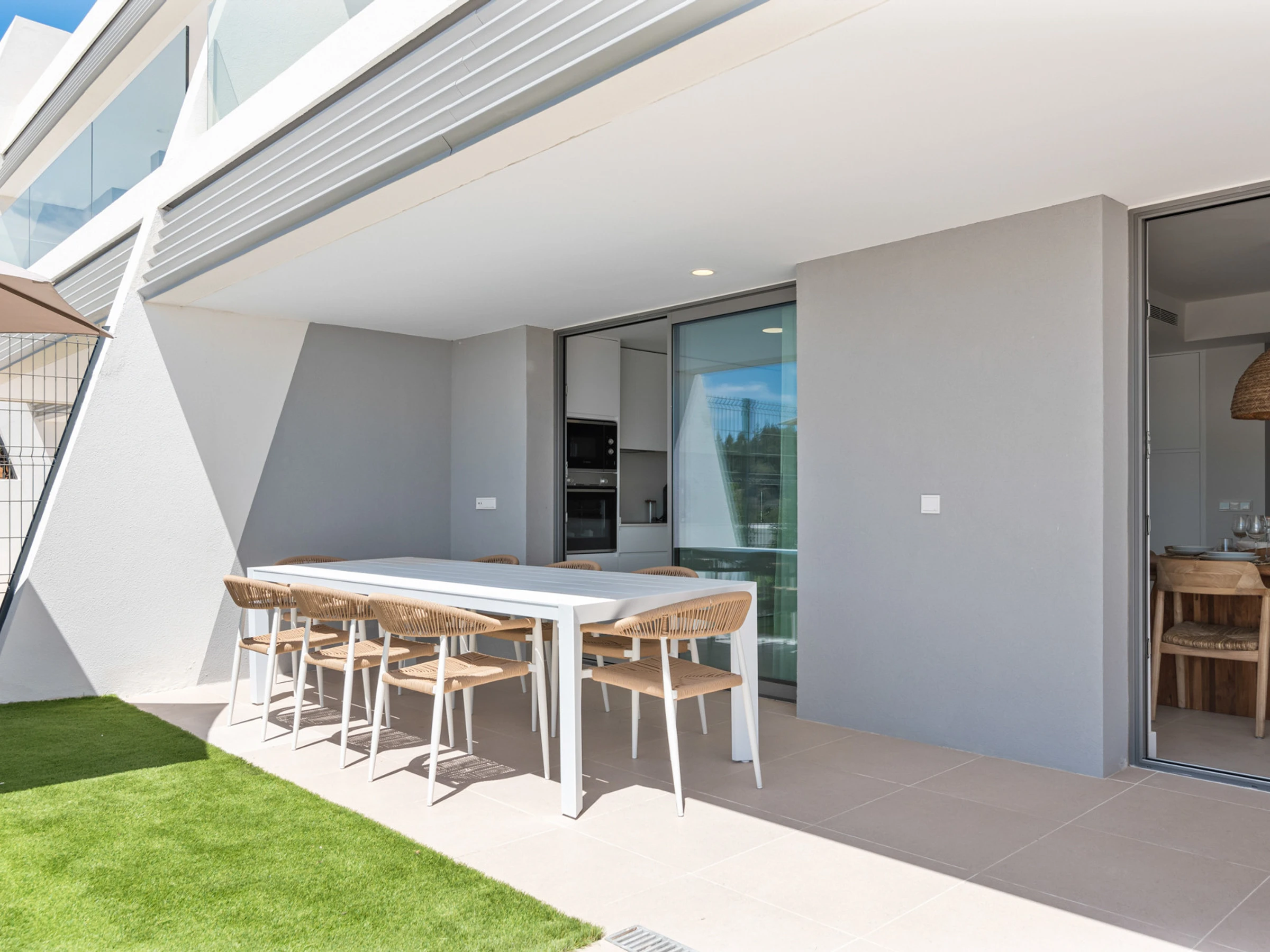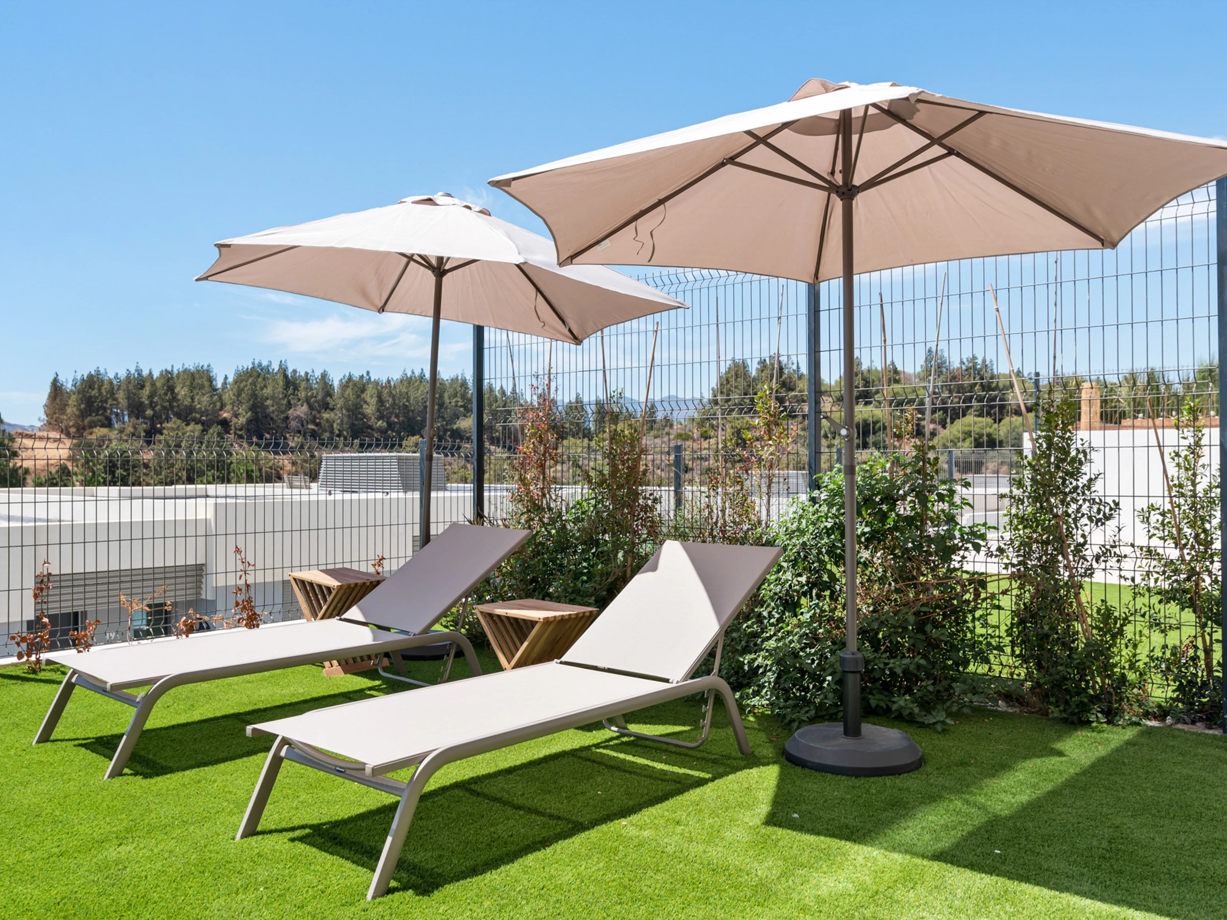 Die Unterkunft verfügt über garten, gartenmöbel, umzäuntes grundstück, 55 m² terrasse, waschmaschine, trockner, grill, bügeleisen/-brett, safe, internet (WLAN), haartrockner, fitnessraum, spa, zentralheizung, klimaanlage, swimming-pool gemeinschaftlicher swimming-pool, garage und parkplatz in auf dem grundstück, 2 Fernsehgeräte.