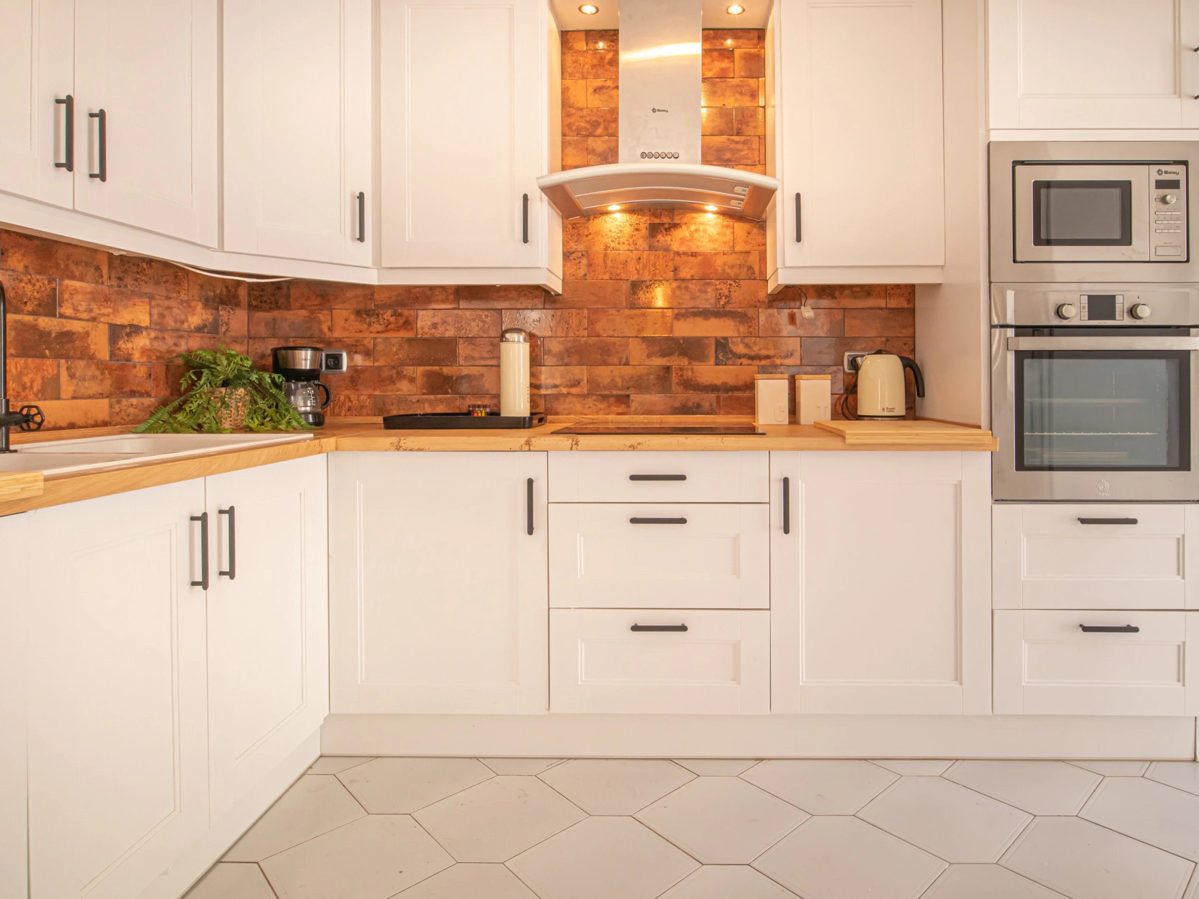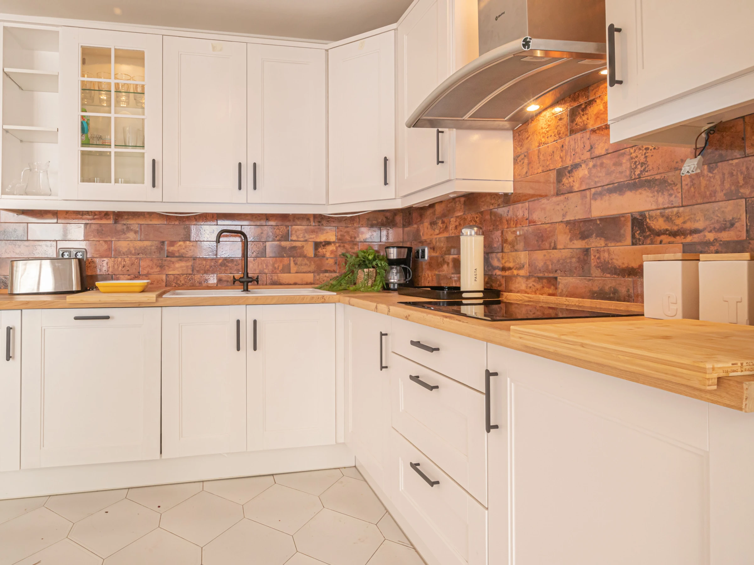 Dieses küche, ist ausgestattet in mikrowelle, gefrierschrank, spülmaschine, kaffeemaschine und toaster.