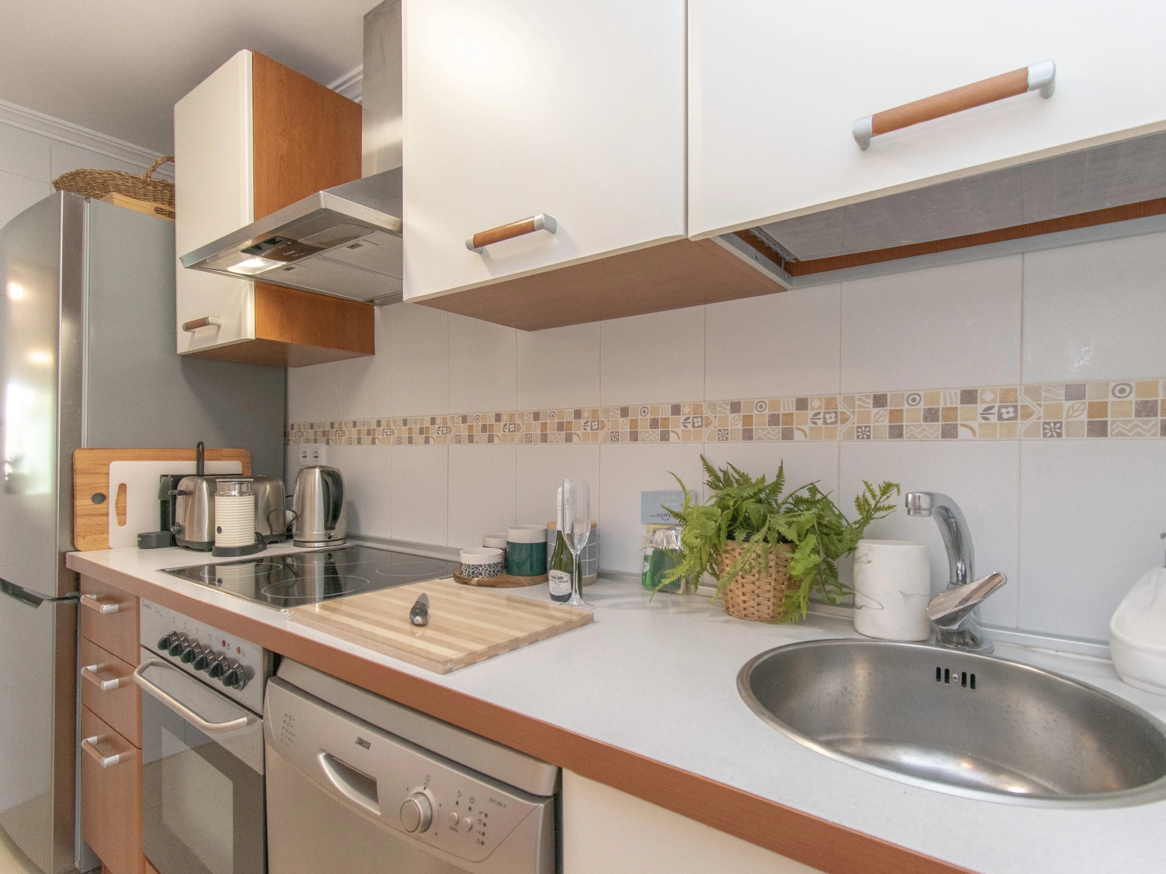 Dieses küche, ist ausgestattet in mikrowelle, gefrierschrank, spülmaschine und toaster.