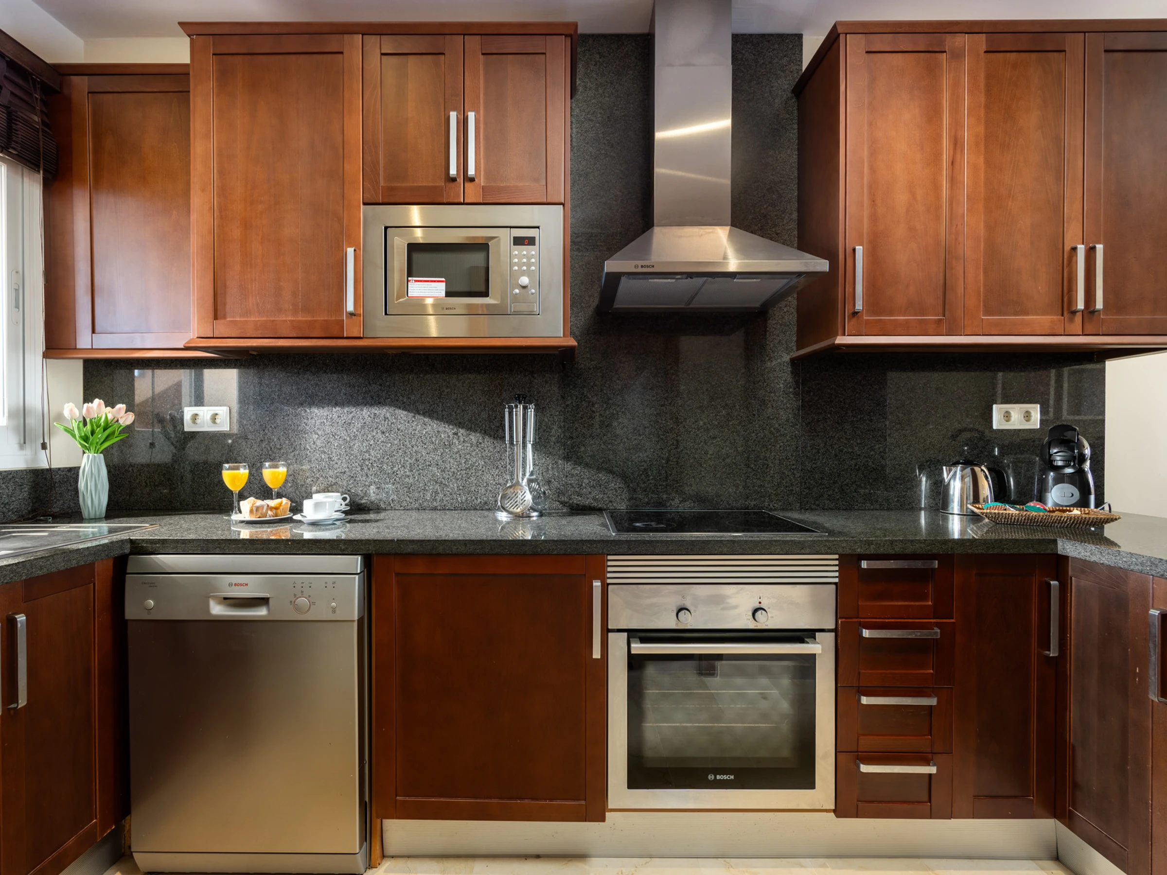 Dieses separate küche, mit ceranfeld, ist ausgestattet in kühlschrank, mikrowelle, backofen, gefrierschrank, spülmaschine, geschirr/besteck, kochutensilien, kaffeemaschine, toaster, wasserkocher und saftpresse.