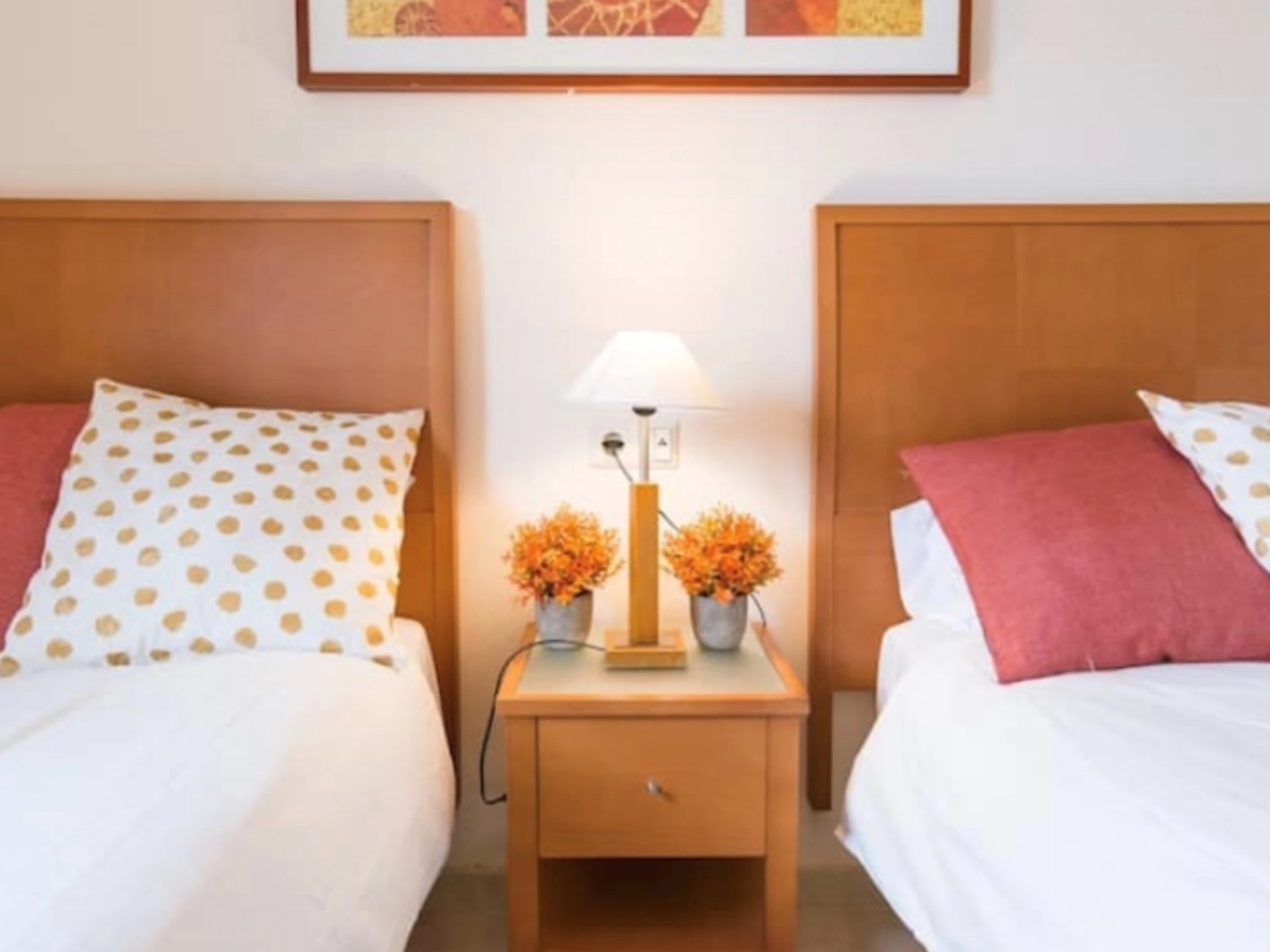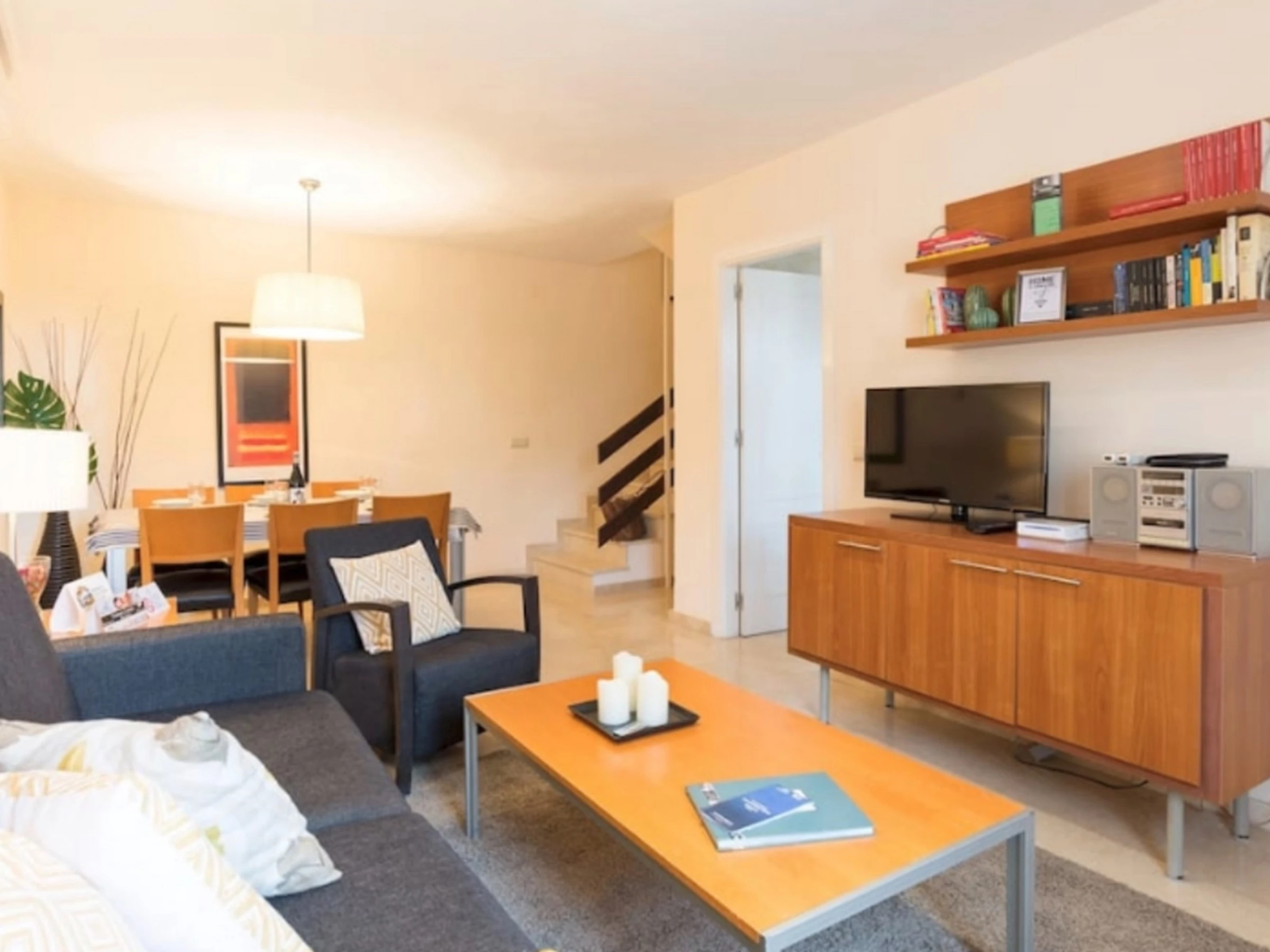 Die Unterkunft verfügt über gartenmöbel, 15 m² terrasse, waschmaschine, bügeleisen/-brett, safe, internet (WLAN), haartrockner, kinderbereich, tennisplatz, alarm, heizung, klimaanlage, swimming-pool gemeinschaftlicher swimming pool + kinderbecken, klimatisierter pool gemeinschaftlicher swimming-pool, parkplatz im freien in auf dem grundstück, 1 Fernseher, sat-tv (Sprachen: Spanisch), radio.