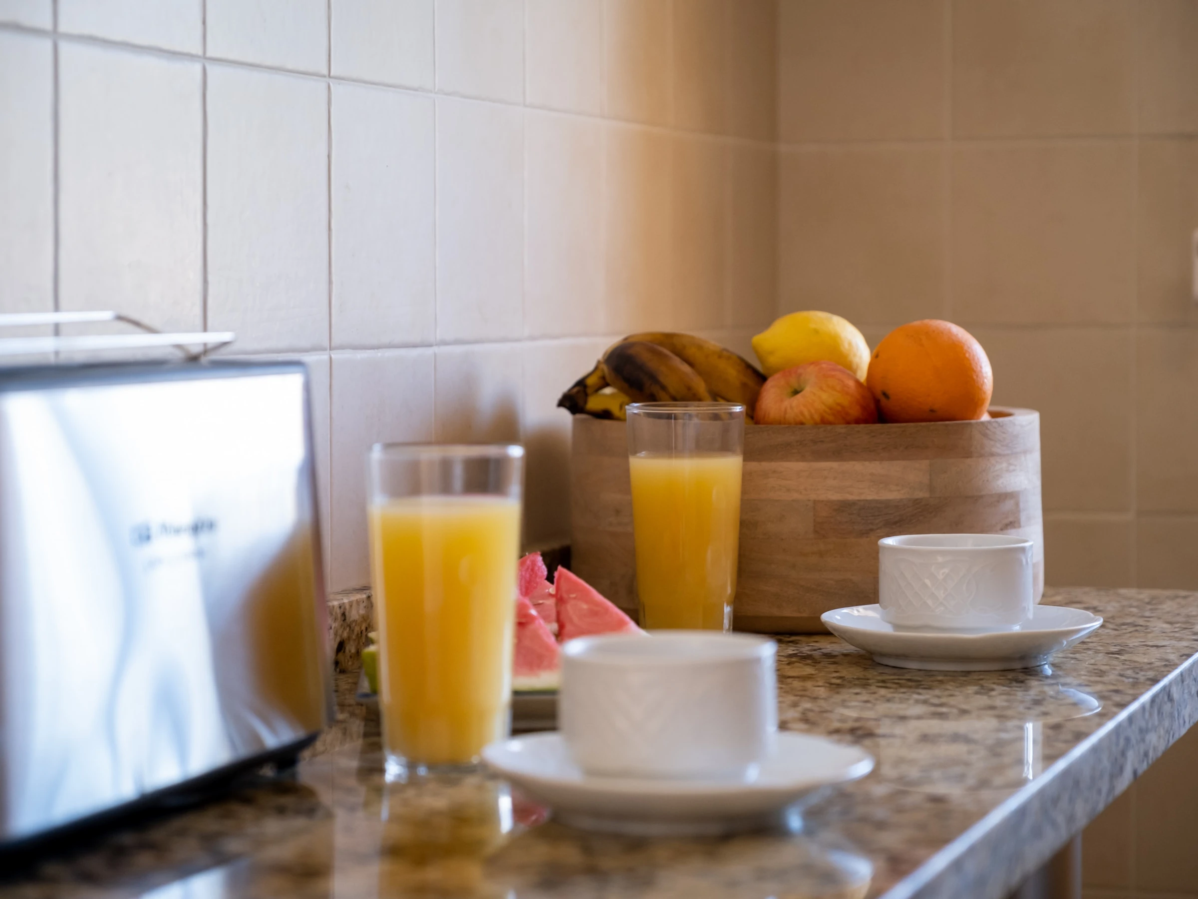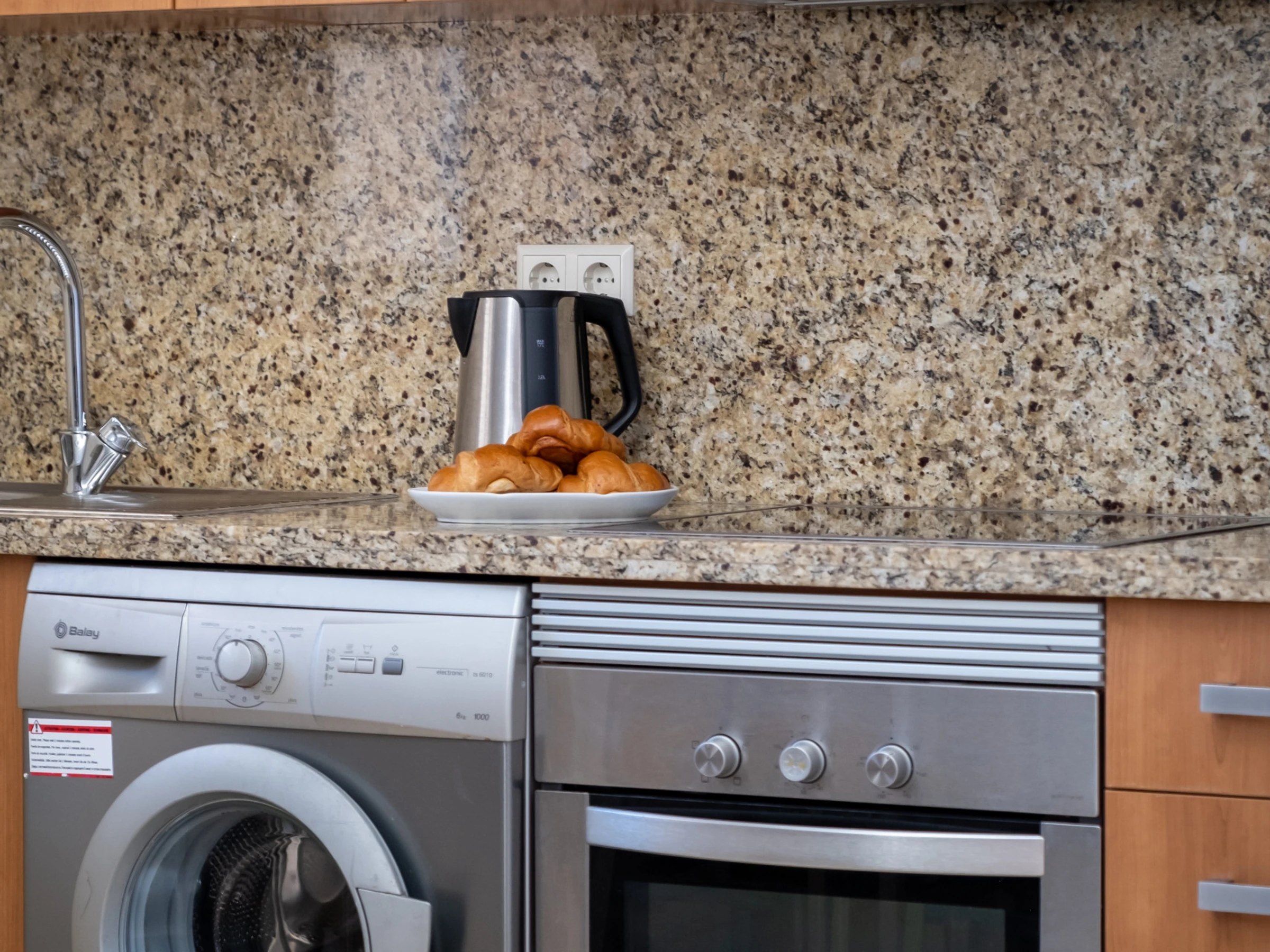 Dieses separate küche, mit ceranfeld, ist ausgestattet in kühlschrank, mikrowelle, backofen, gefrierschrank, geschirr/besteck, kochutensilien, kaffeemaschine, toaster, wasserkocher und saftpresse.