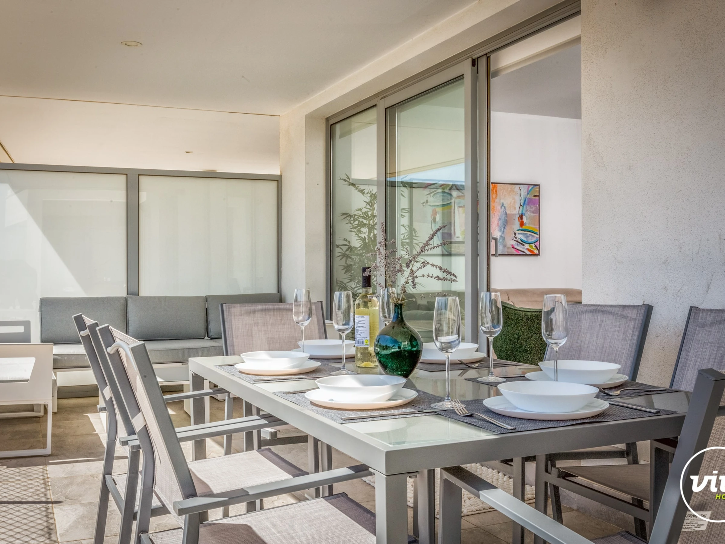 Die Unterkunft verfügt über aufzug, gartenmöbel, umzäuntes grundstück, 25 m² terrasse, waschmaschine, trockner, bügeleisen/-brett, safe, internet (WLAN), haartrockner, fitnessraum, spa, zentralheizung, klimaanlage, swimming-pool gemeinschaftlicher swimming pool + kinderbecken, klimatisierter pool gemeinschaftlicher swimming-pool, garage in auf dem grundstück, 1 Fernseher.
