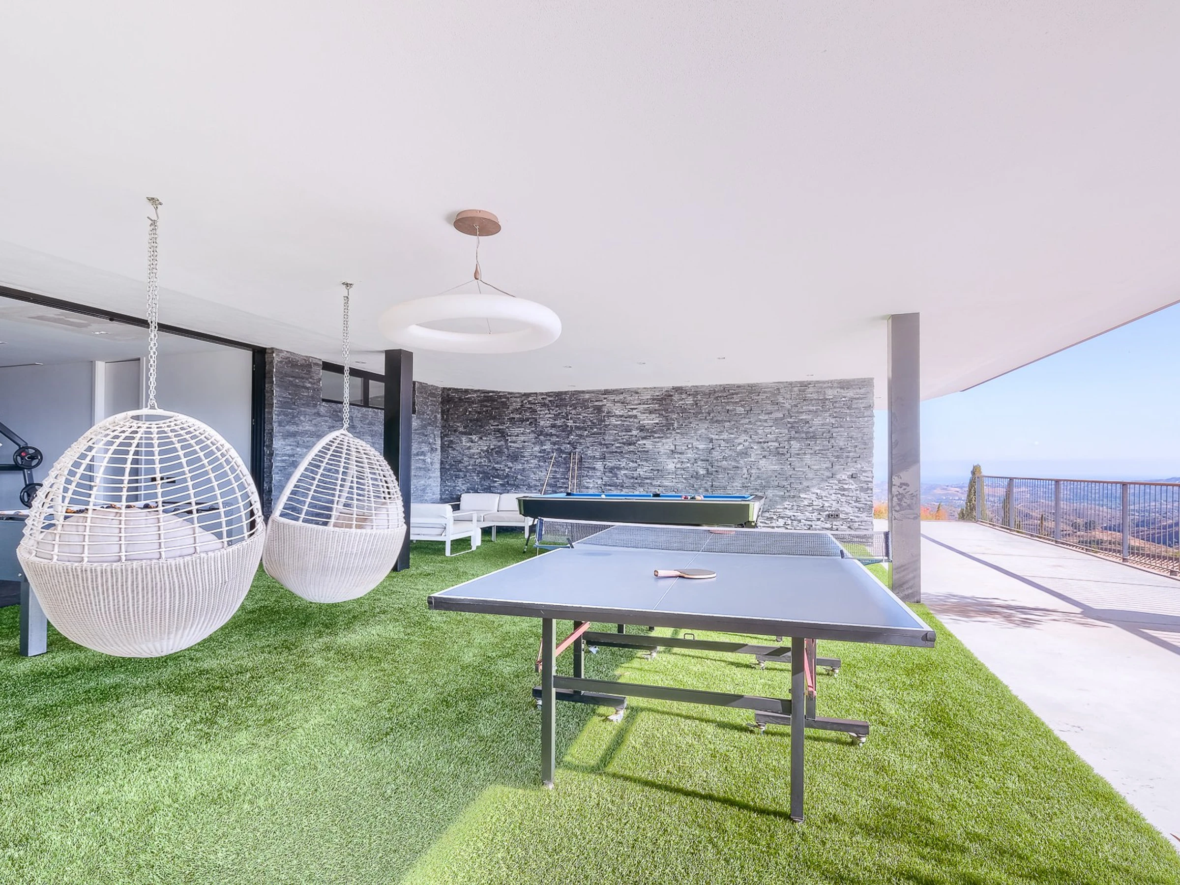 Die Unterkunft verfügt über terrasse, waschmaschine, trockner, grill, kamin, bügeleisen/-brett, internet, balkon, fitnessraum, alarm, zentralheizung, klimaanlage, swimming-pool gemeinschaftlicher swimming-pool, klimatisierter pool privater pool, 1 ventilator, 1 Fernseher.