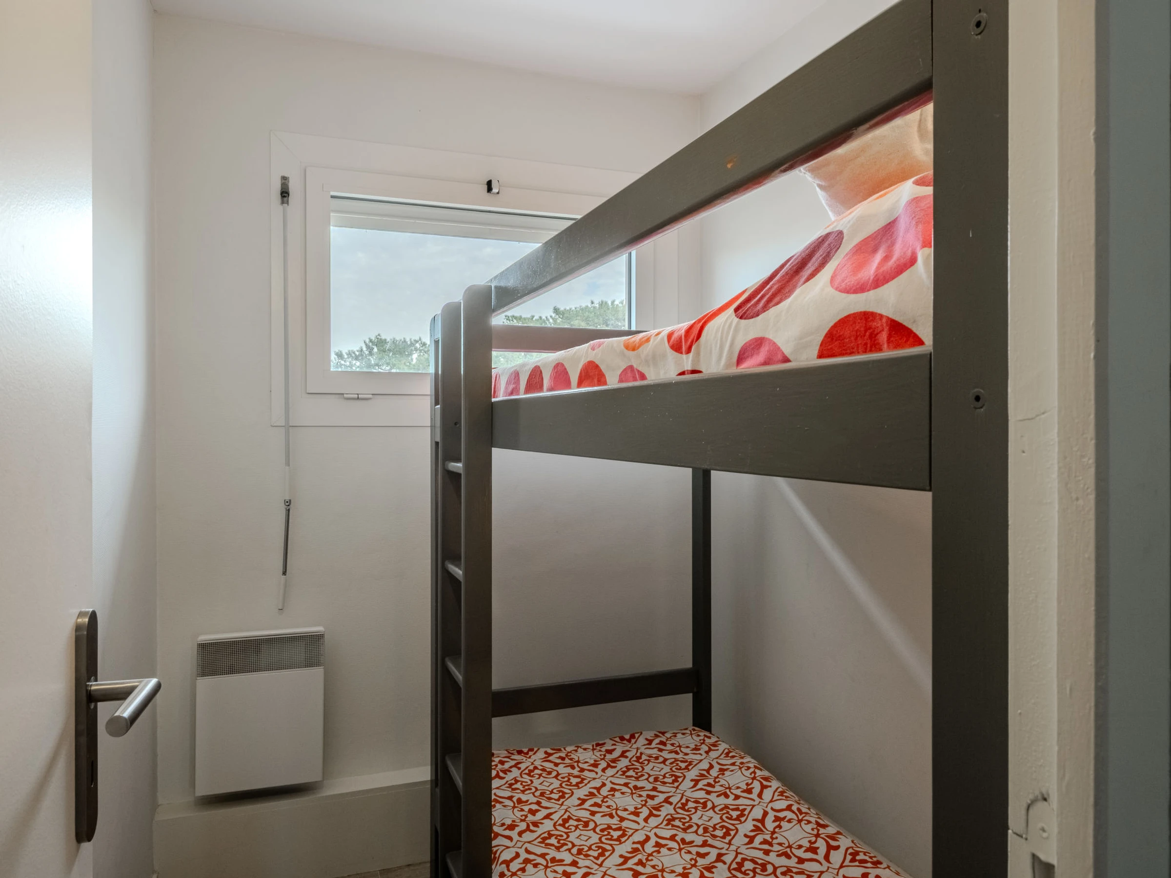 3-Zimmer-Wohnung 35 m2 im 2. Stock. Wohn-/Esszimmer mit TV (Flachbildschirm). 1 Zimmer mit 1 franz. Bett (1 x 160 cm, Länge 190 cm). Kabine mit 1 x 2 Etagenbetten (90 cm, Länge 200 cm). Offene Küche (Backofen, Geschirrspüler, 1 Induktionskochplatten, 2 Flammen, Toaster, Wasserkocher, Mikrowelle, Tiefkühler, elektrische Kaffeemaschine). Dusche, sep. WC. E-Heizung. Kleiner Balkon 3 m2. Zur Verfügung: Waschmaschine, Bügeleisen, Haartrockner. Internet (WLAN, gratis). Bitte beachten: Nichtraucher-Unterkunft. 1 kleines Haustier/Hund erlaubt. Rauchmelder. Inserat einer Privatperson nach Artikel 155, IV, CGI.