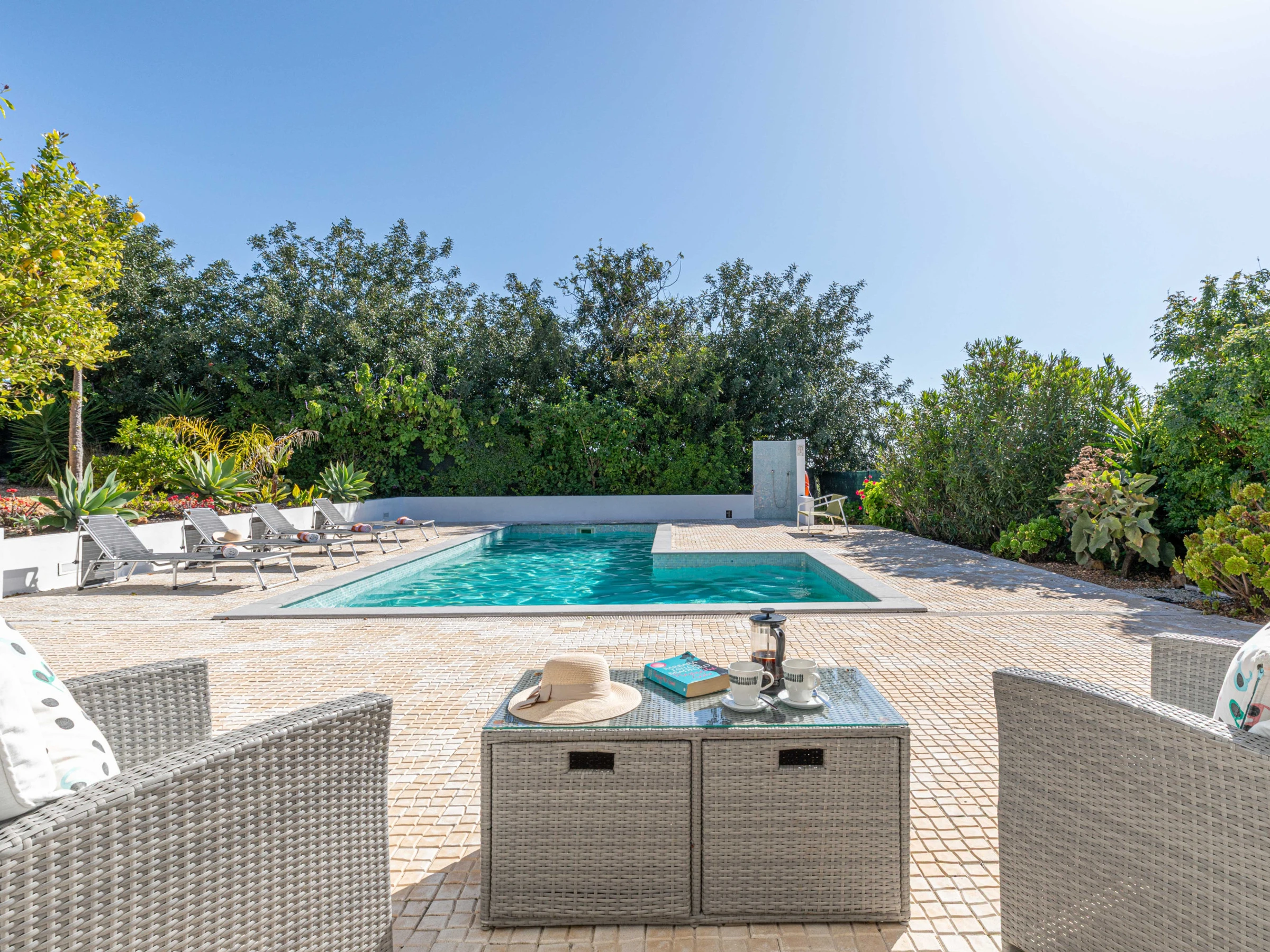 Die Unterkunft verfügt über garten, gartenmöbel, umzäuntes grundstück, waschmaschine, grill, bügeleisen/-brett, internet (WLAN), haartrockner, heizung, klimaanlage in der ganzen unterkunft, swimming-pool privater pool, parkplatz im freien in auf dem grundstück, 1 Fernseher, sat-tv (Sprachen: Englisch).