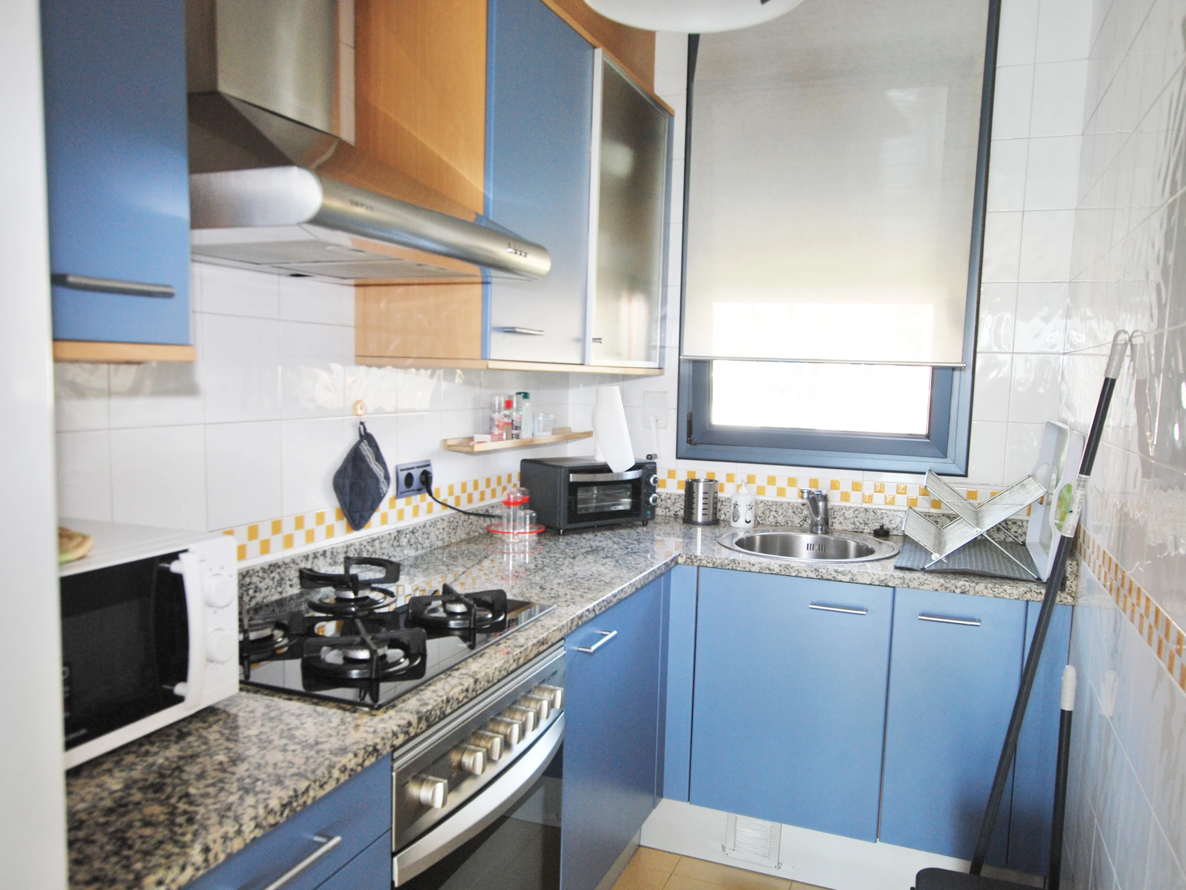 Dieses separate küche, mit gas-kochfeld, ist ausgestattet in kühlschrank, mikrowelle, backofen, gefrierschrank, geschirr/besteck, kochutensilien, kaffeemaschine und toaster.