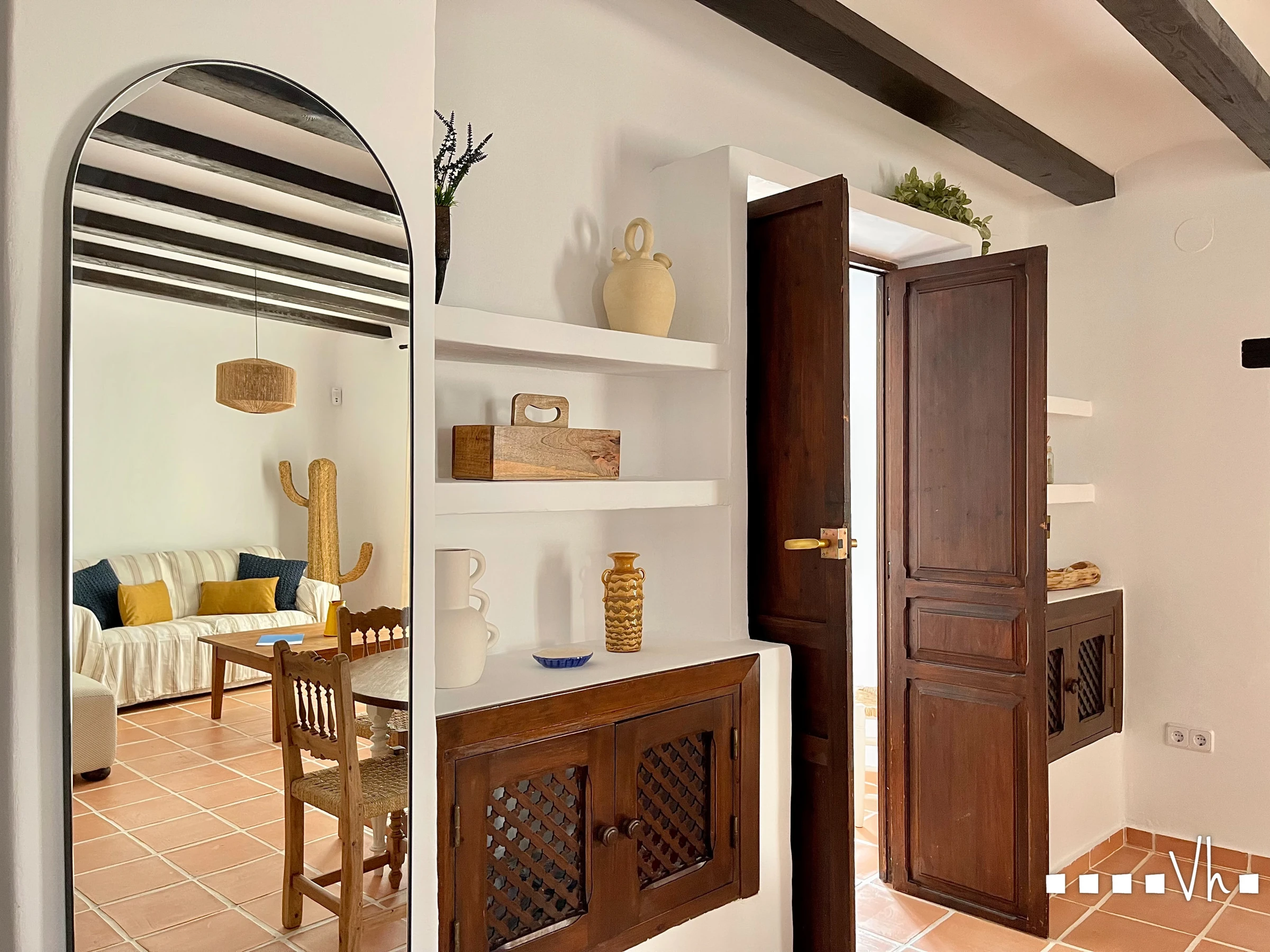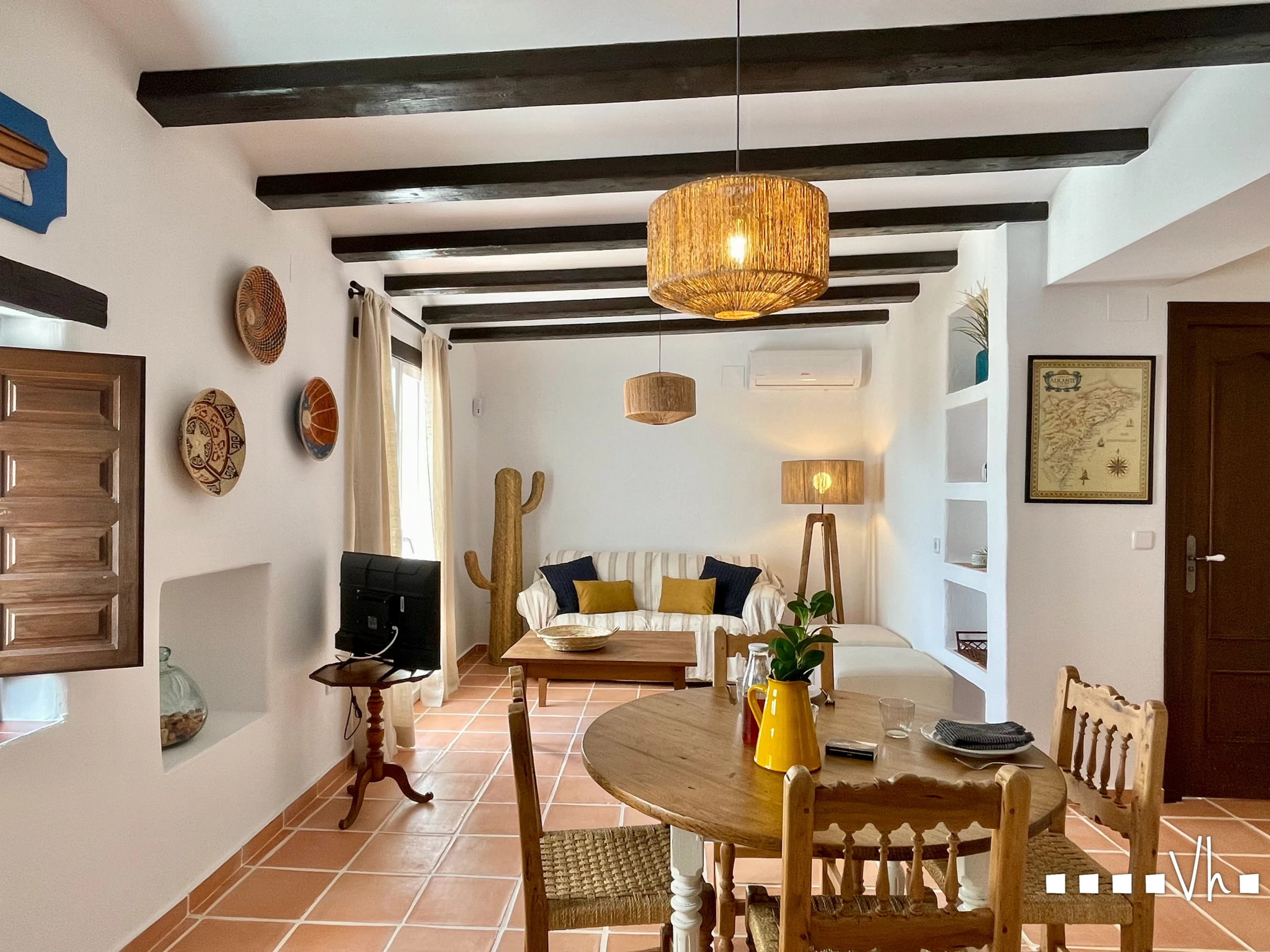 Diese charmante, kürzlich renovierte Wohnung befindet sich im Herzen von Moraira, nur wenige Meter vom Hafen und Strand entfernt. Es ist ein typisches mediterranes Haus, weiß gestrichen, mit Terrakottaböden, Holzbalken und -fenstern, liebevoll in hellen Farben und natürlichen Materialien dekoriert.