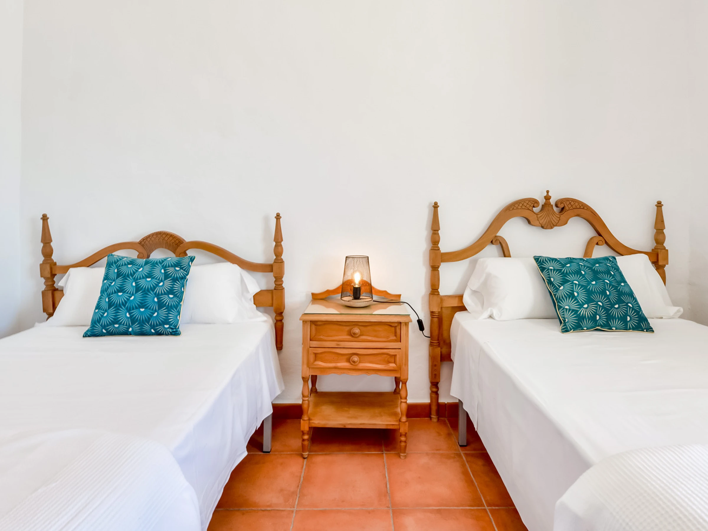 Wenn man vom Wohnzimmer aus die Treppe hinaufgeht, findet man ein komplettes Badezimmer mit Dusche, das dritte Schlafzimmer mit zwei Einzelbetten und Meerblick und ein viertes Schlafzimmer mit Doppelbett und einer schönen Terrasse mit freiem Blick auf das Meer.