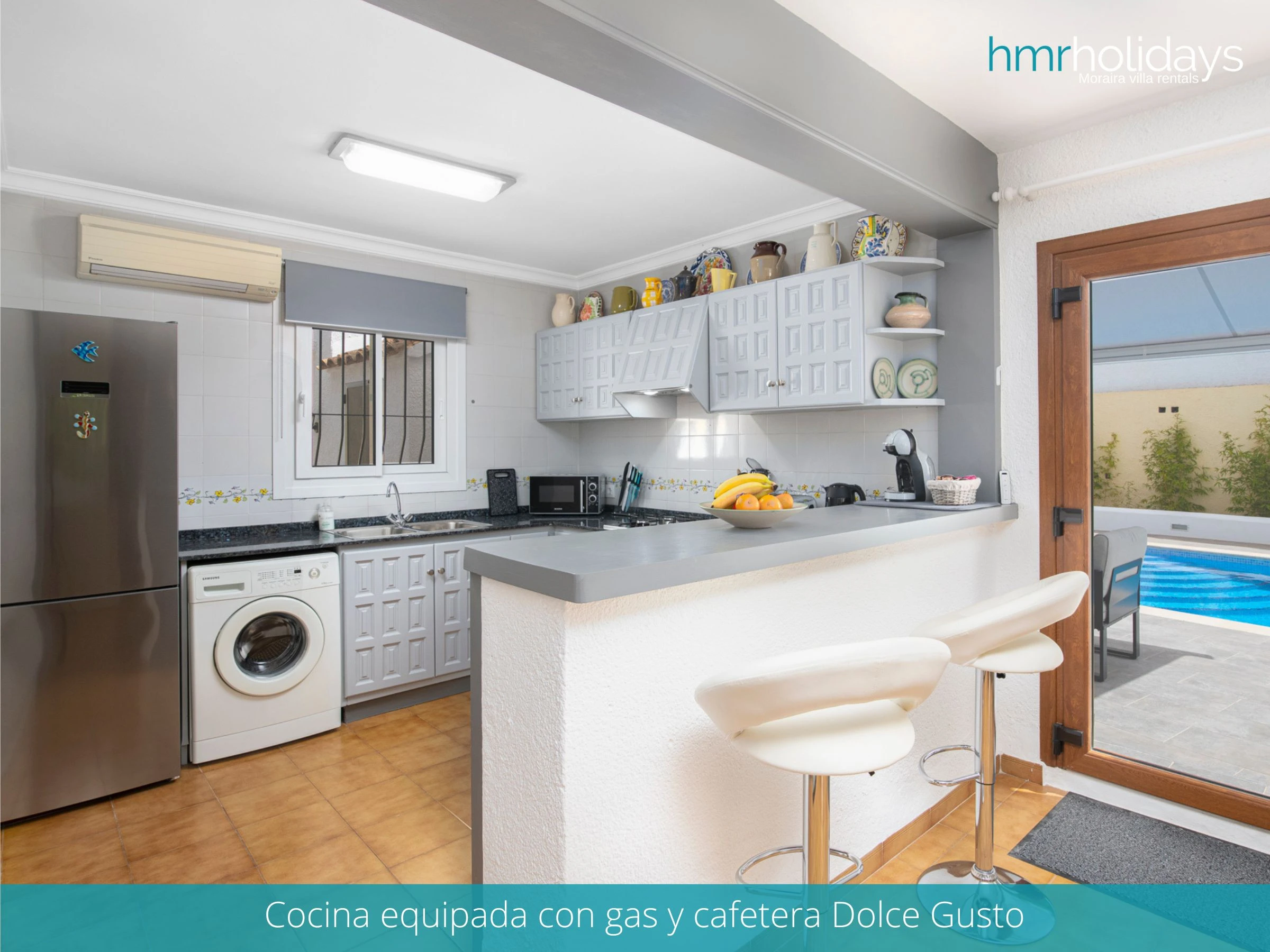 Die Unterkunft verfügt über garten, gartenmöbel, umzäuntes grundstück, terrasse, waschmaschine, grill, bügeleisen/-brett, internet (WLAN), haartrockner, zentralheizung, klimaanlage, swimming-pool privater pool, überdachter parkplatz in auf dem grundstück, 1 Fernseher, sat-tv (Sprachen: Spanisch, Englisch).