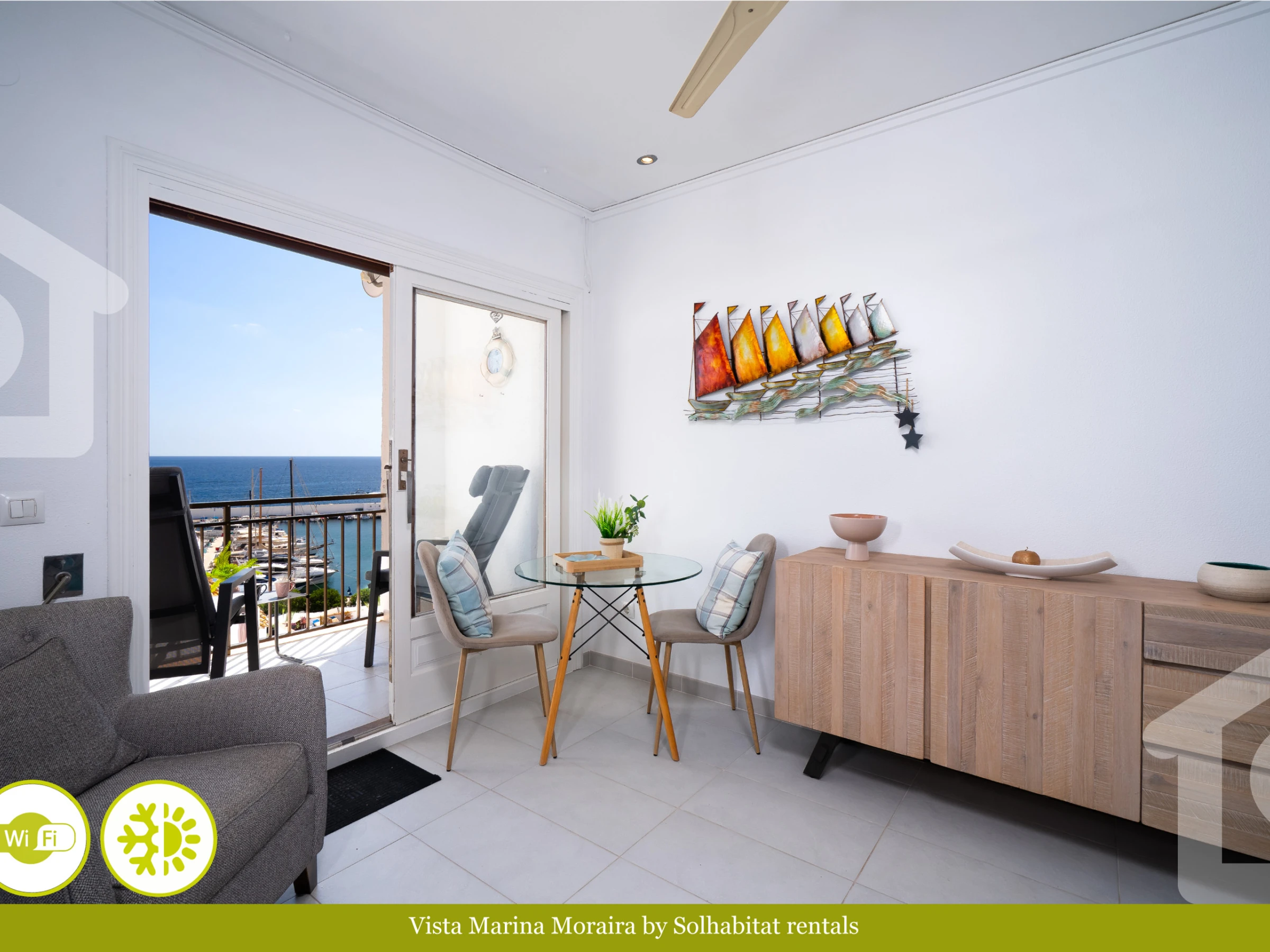 Zu den Annehmlichkeiten gehört die Klimaanlage, die an den heißesten Tagen für eine angenehme Kühle sorgt, sowie eine charmante private Terrasse, auf der man Momente der Entspannung mit atemberaubenden Blicken auf das Meer und den Hafen von Moraira genießen kann. Die Wohnung bietet außerdem schnelles WLAN, Smart-TV und praktische Annehmlichkeiten wie ein Bügeleisen.