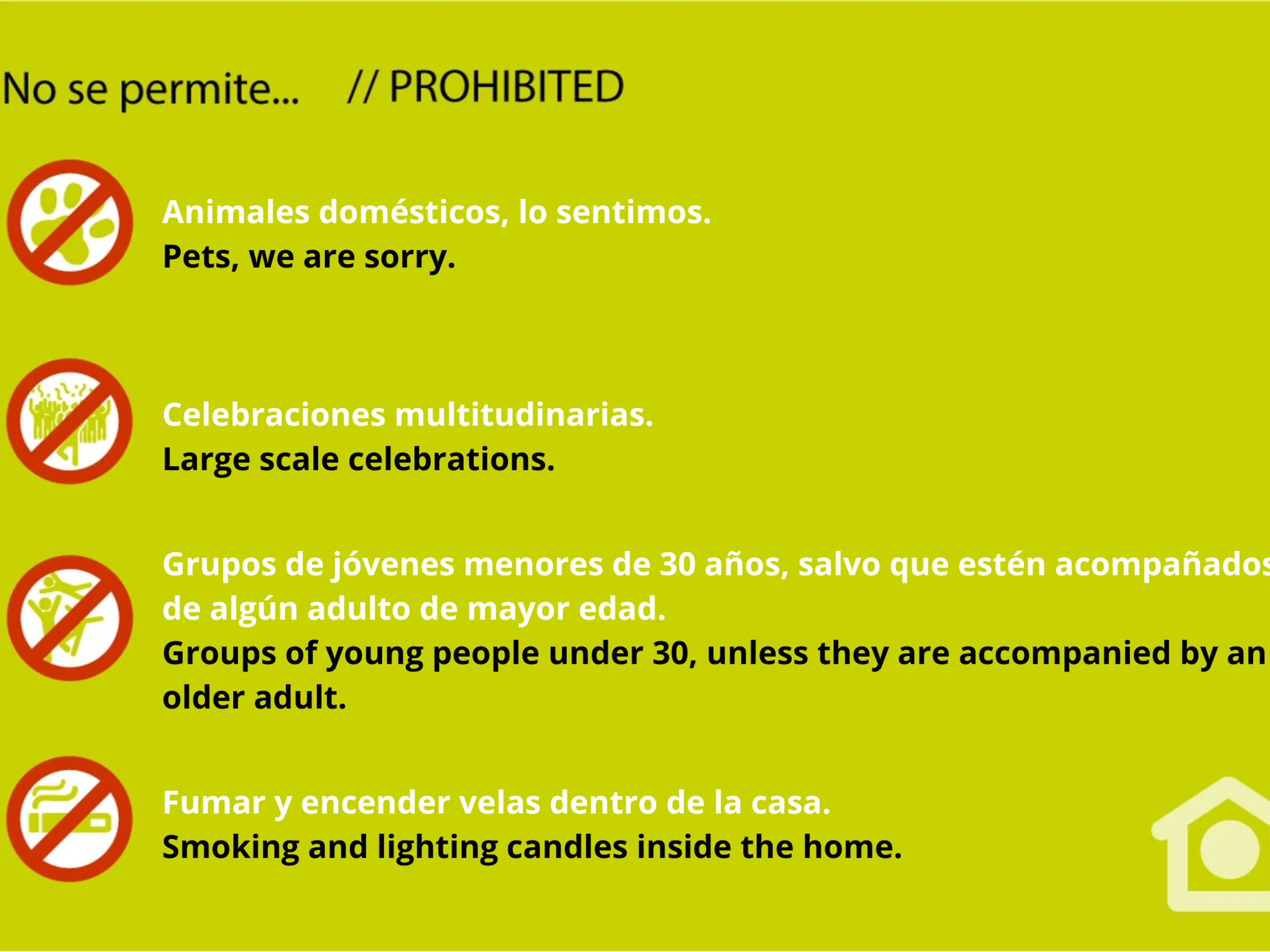 Massenveranstaltungen sind nicht erlaubt. Nur Besuche von Freunden und Familienmitgliedern sind gestattet. Es dürfen nicht mehr Personen in der Unterkunft übernachten als ihre Kapazität.