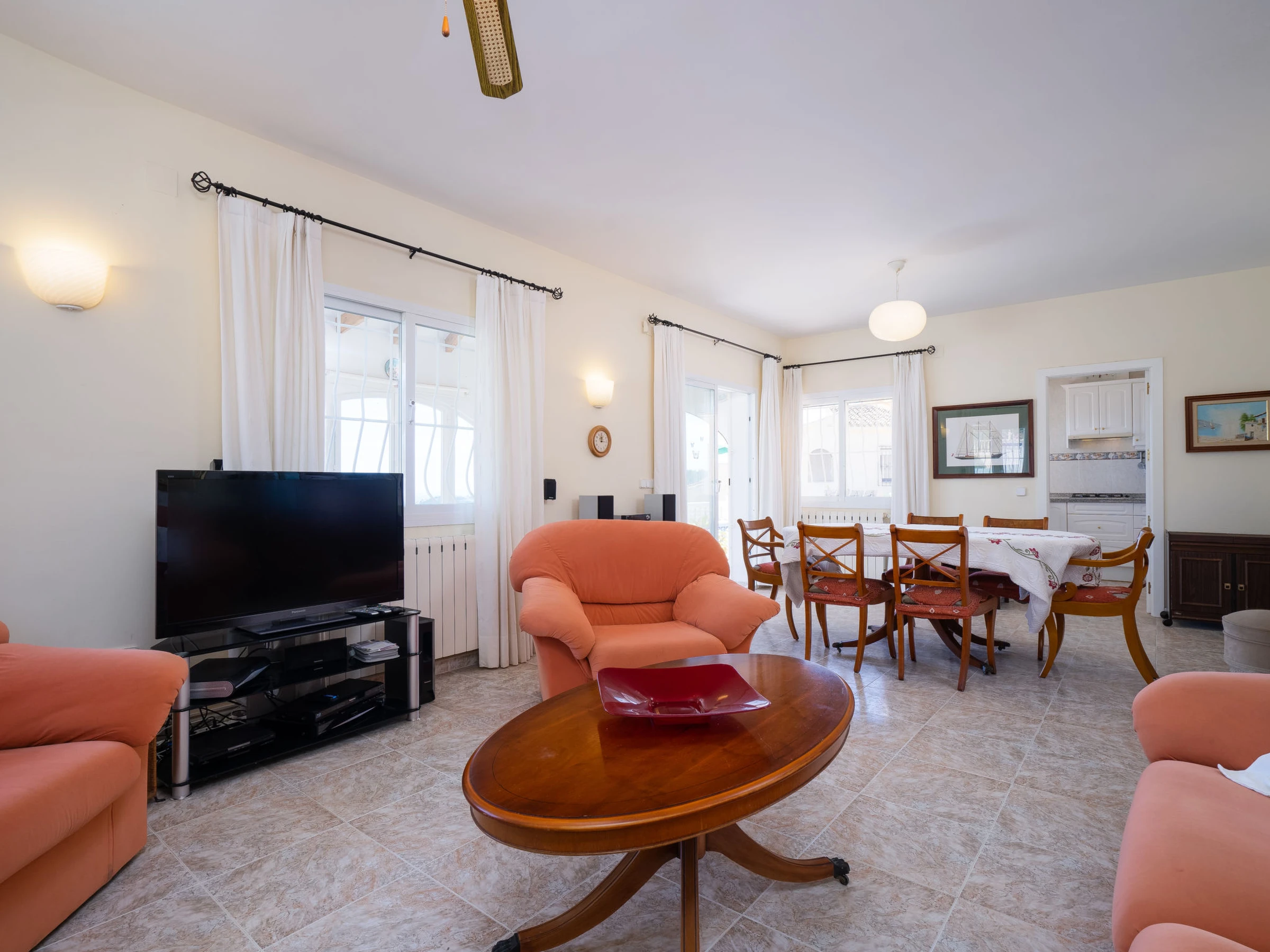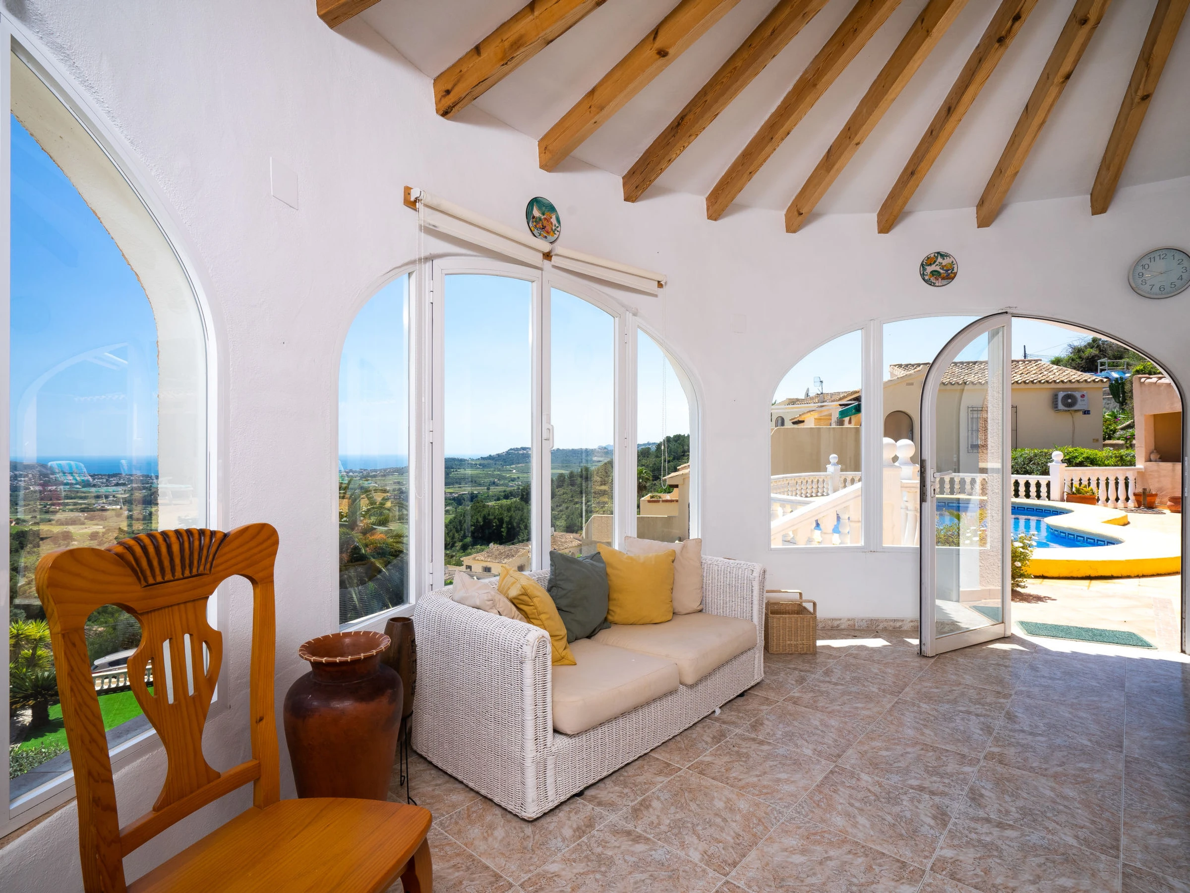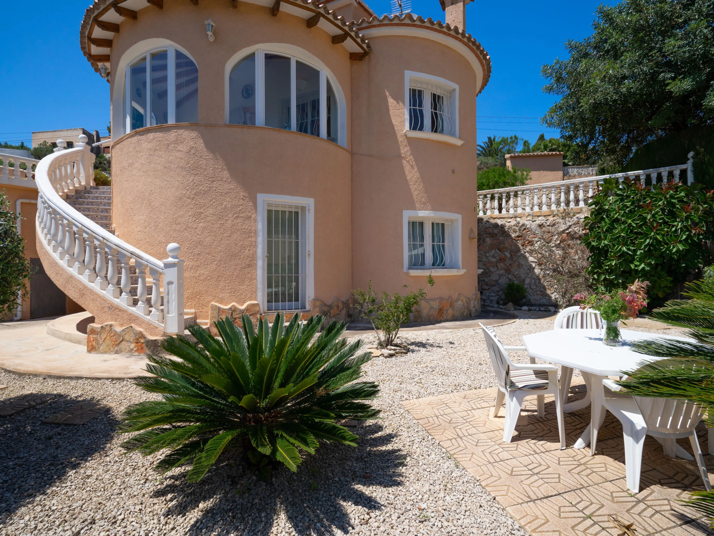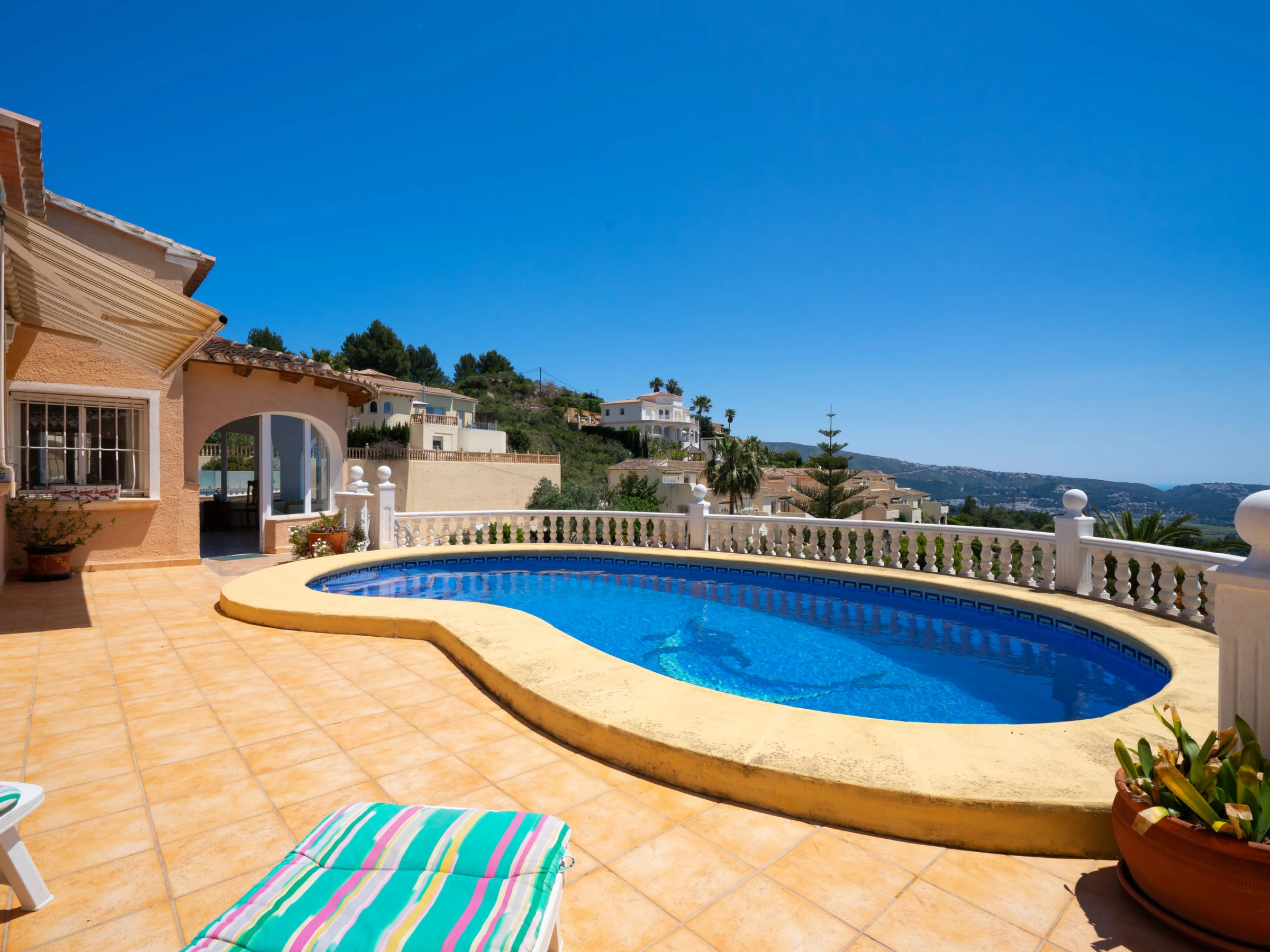 Castellons Vida: Schönes, gemütliches Haus "Castellons Vida". Im Ort Moraira, ruhige, sonnige, erhöhte Lage im Villenviertel, verkehrsberuhigte Zone, 8 km vom Meer, 8 km vom Strand. Zur Alleinbenutzung: Grundstück 312 m2 (eingezäunt), Schwimmbad (7 x 4 m, 120 - 200 cm tief, saisonale Verfügbarkeit: [hidden] - [hidden] Supermarkt 5 km, Bushaltestelle "Teulada" 2.1 km, Bahnstation "Teulada" 1.8 km, Fähre "Denia" 21.5 km, Sandstrand "Playa de la Ampolla" 9 km. Sporthafen 7 km, Golfplatz (18 Loch) 10 km. Nahe gelegene Sehenswürdigkeiten: Aqualandia, Mundomar, Terra Mítica, Terra Natura, Benidorm Palace (Benidorm), Les Fonts de l'Algar, Castillo de Guadalest. Der Besitzer akzeptiert keine Jugendgruppen.