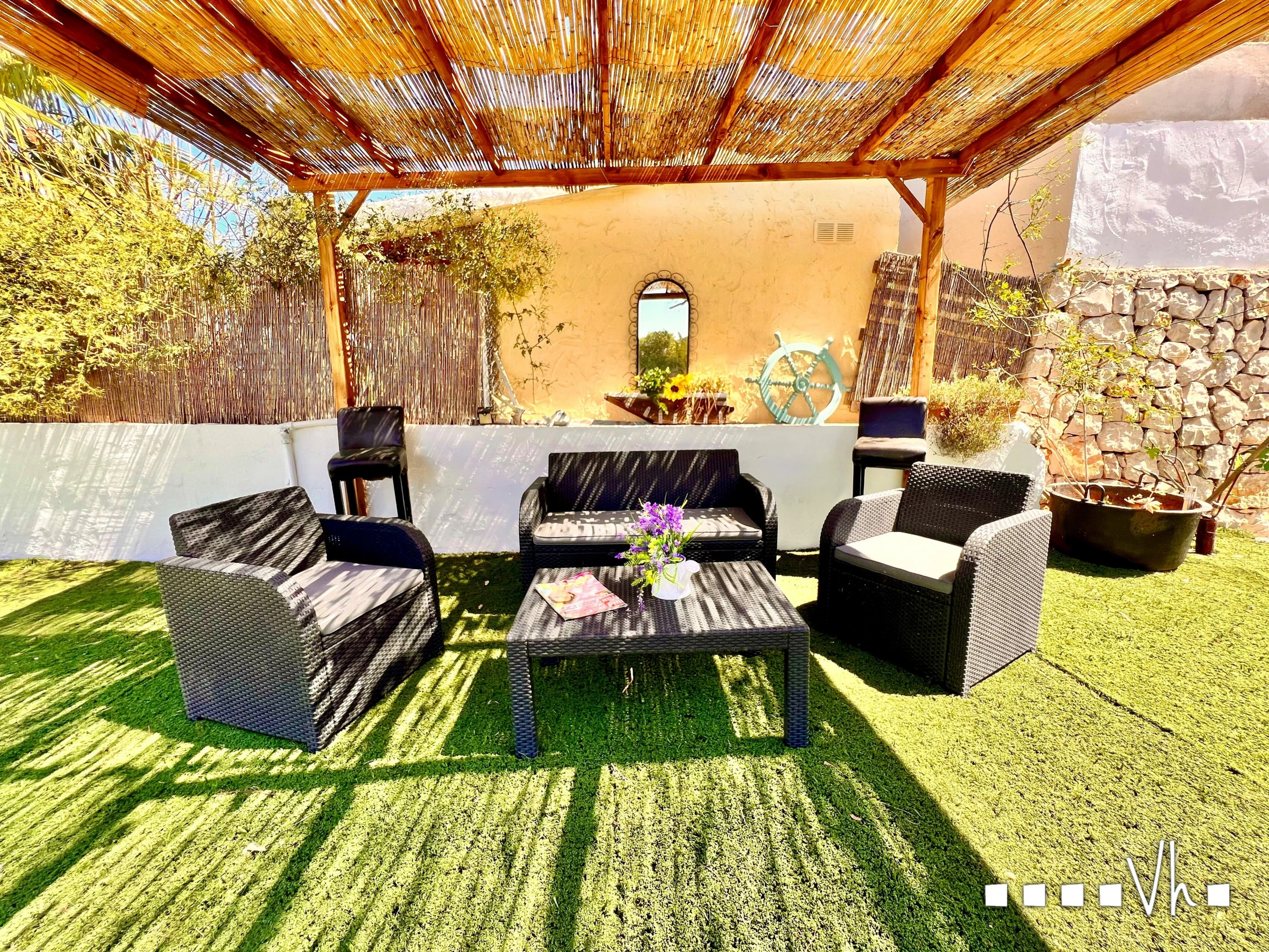 Die Villa verfügt über einen wunderbaren Salon-Speisesaal, eine vollständig ausgestattete Küche, drei Schlafzimmer und ein Badezimmer mit Dusche. Das gesamte Haus ist von einer Gartenzone umgeben, die Bäume, Pflanzen, Kakteen und Blumen enthält.