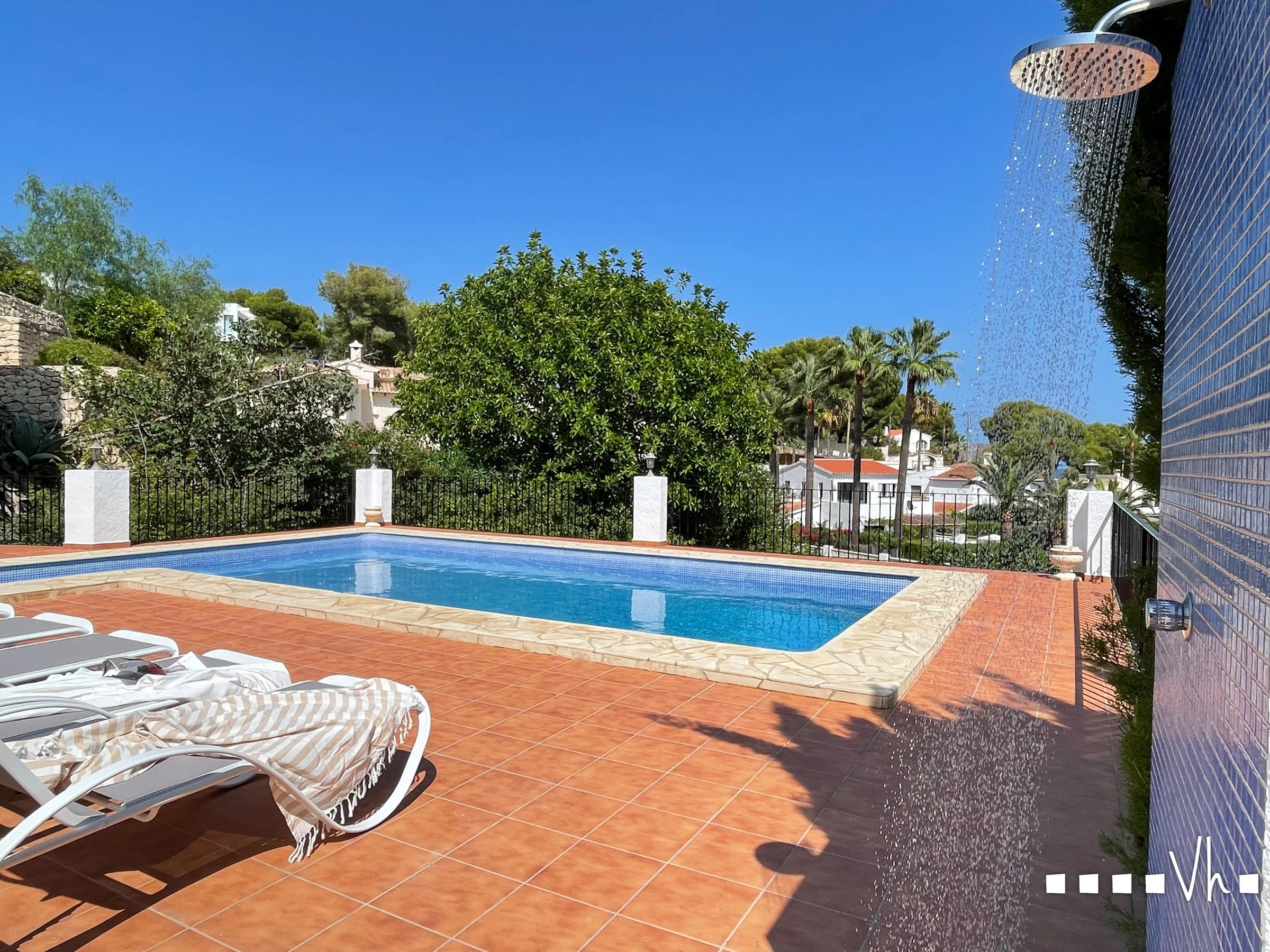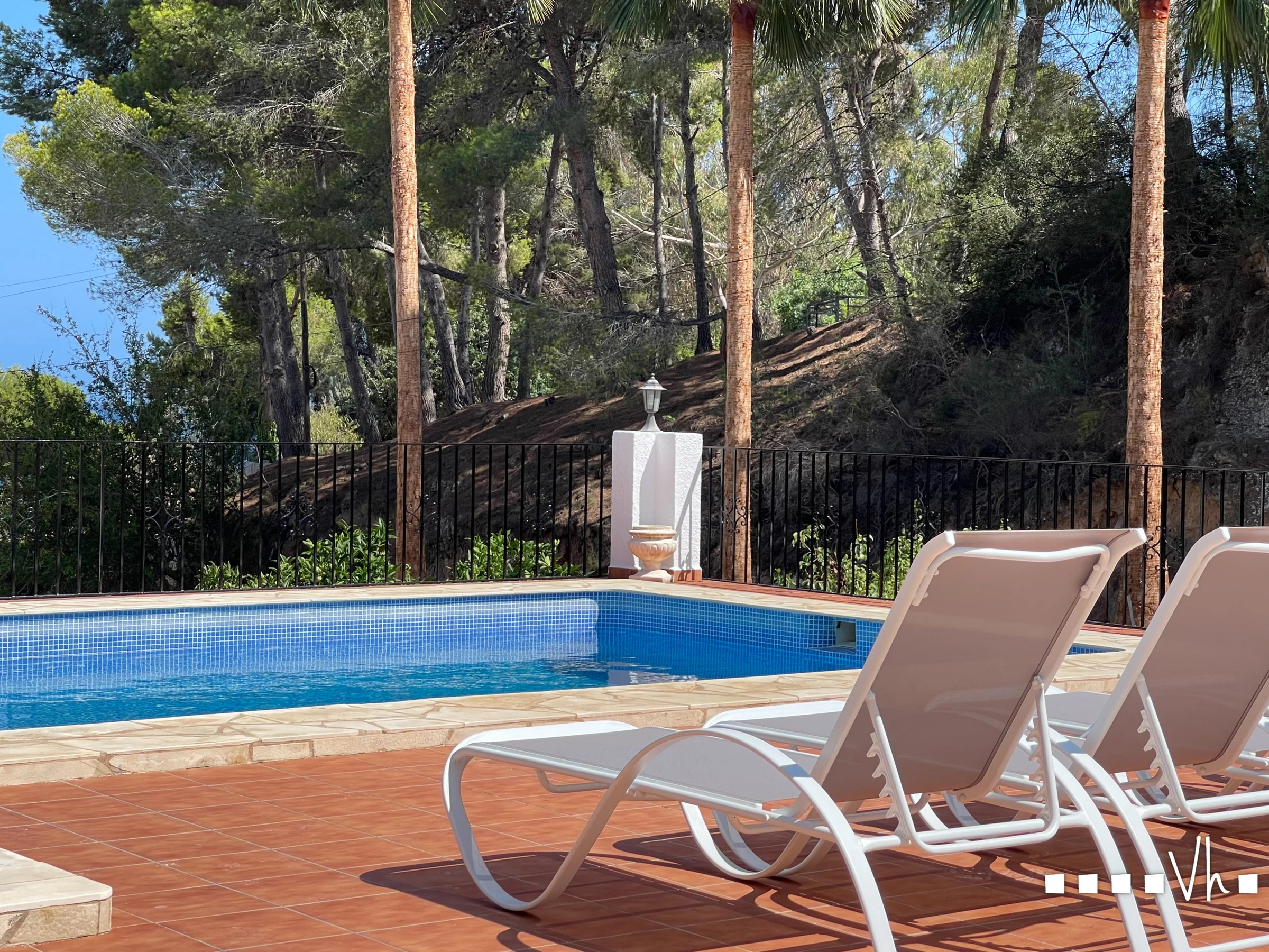 Im weitläufigen Außenbereich des Hauses gibt es mehrere gemütliche Ecken, die ideal sind, um unvergessliche Abende den ganzen Tag über zu genießen, mit Plätzen im Schatten und in der Sonne: vom oberen oder unteren Veranda bis zur Terrasse im Freien, die perfekt ist, um sich bei Sonnenuntergang zu entspannen. Alles begleitet von einem herrlichen Pool mit Liegezonenbereichen und spektakulären Ausblicken sowie einer charmanten, separaten Küche-Grillbereich mit Pizzaofen, die zu langen Mahlzeiten im Freien einlädt.